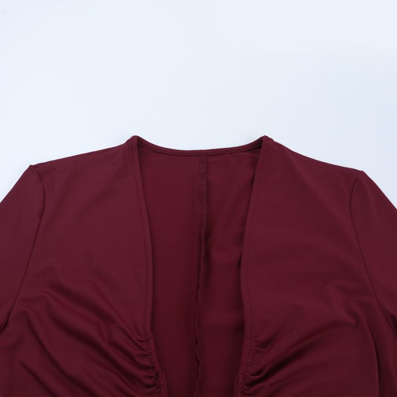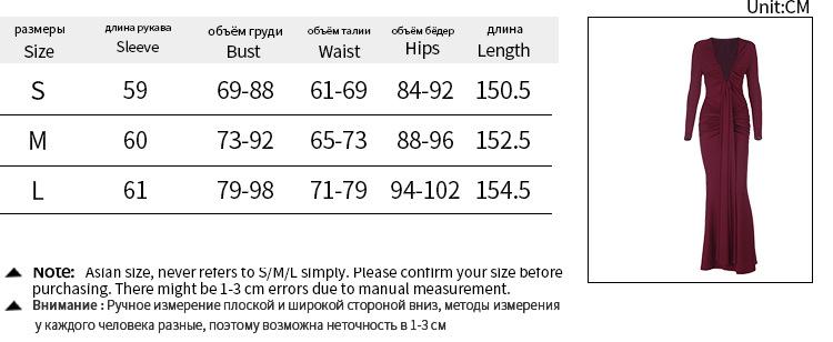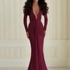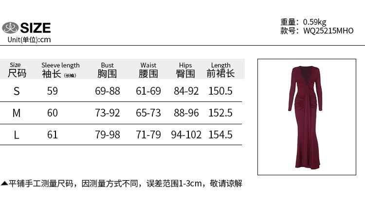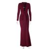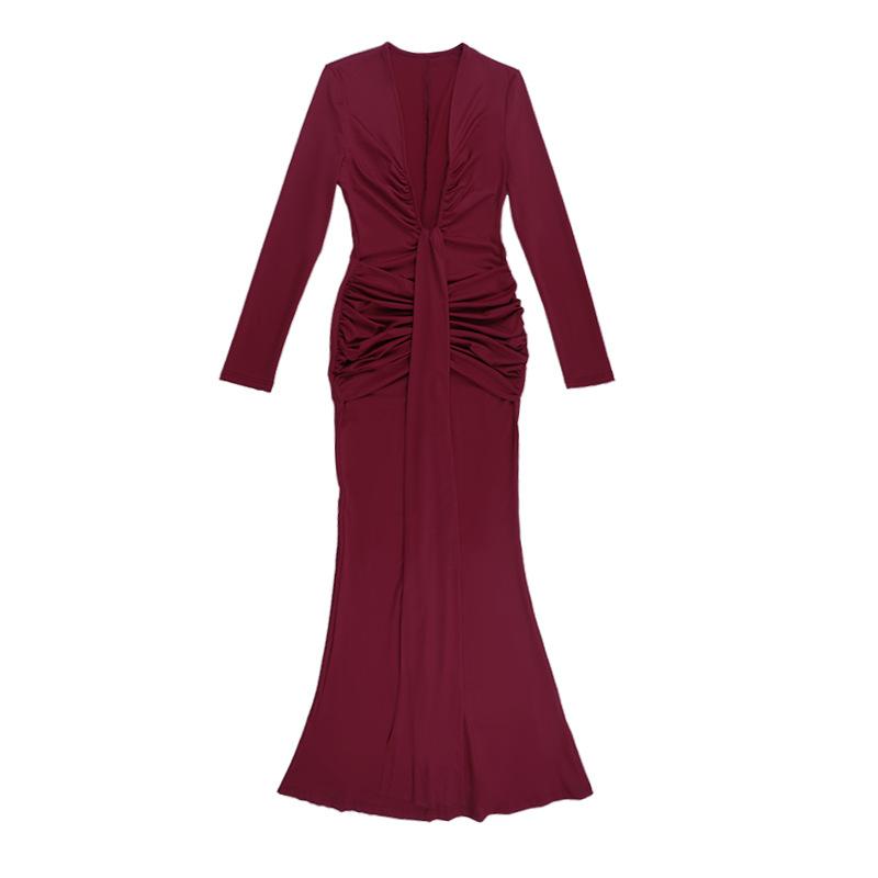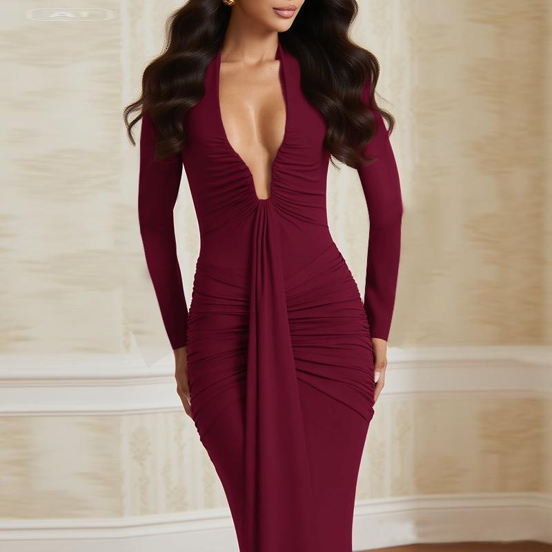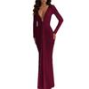 Amazon Transfronterizo Europeo y Americano Nuevo Estilo Vestido de Noche Profundo Sexy Cuello en U Adelgazante Sexy Vestido de Manga Larga Mujer