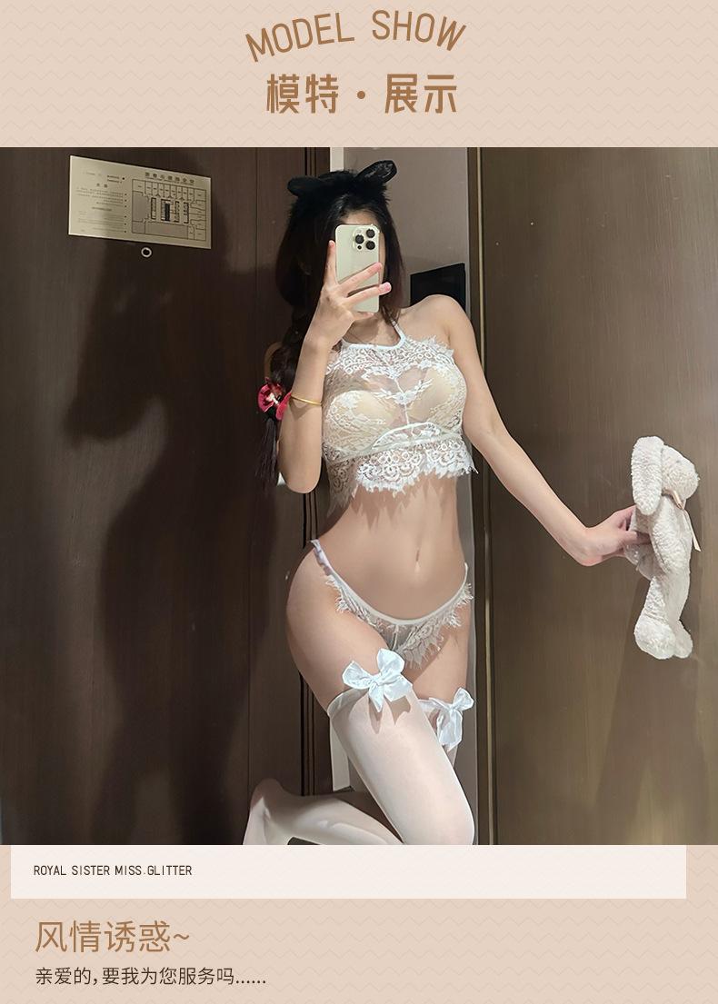Nuevo Conjunto de Lencería Sexy de Encaje de Pestañas para Mujer Transparente de Tres Puntos Tentación Venta al por Mayor