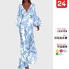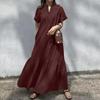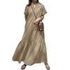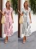 Moda Transfronteriza Europea y Americana Primavera/Verano 2025 Nuevo Vestido Largo de Mujer con Cuello Alto, Manga Corta, Solapa con Cuello en V, Corte Holgado, Cola de Pez, Línea A