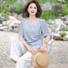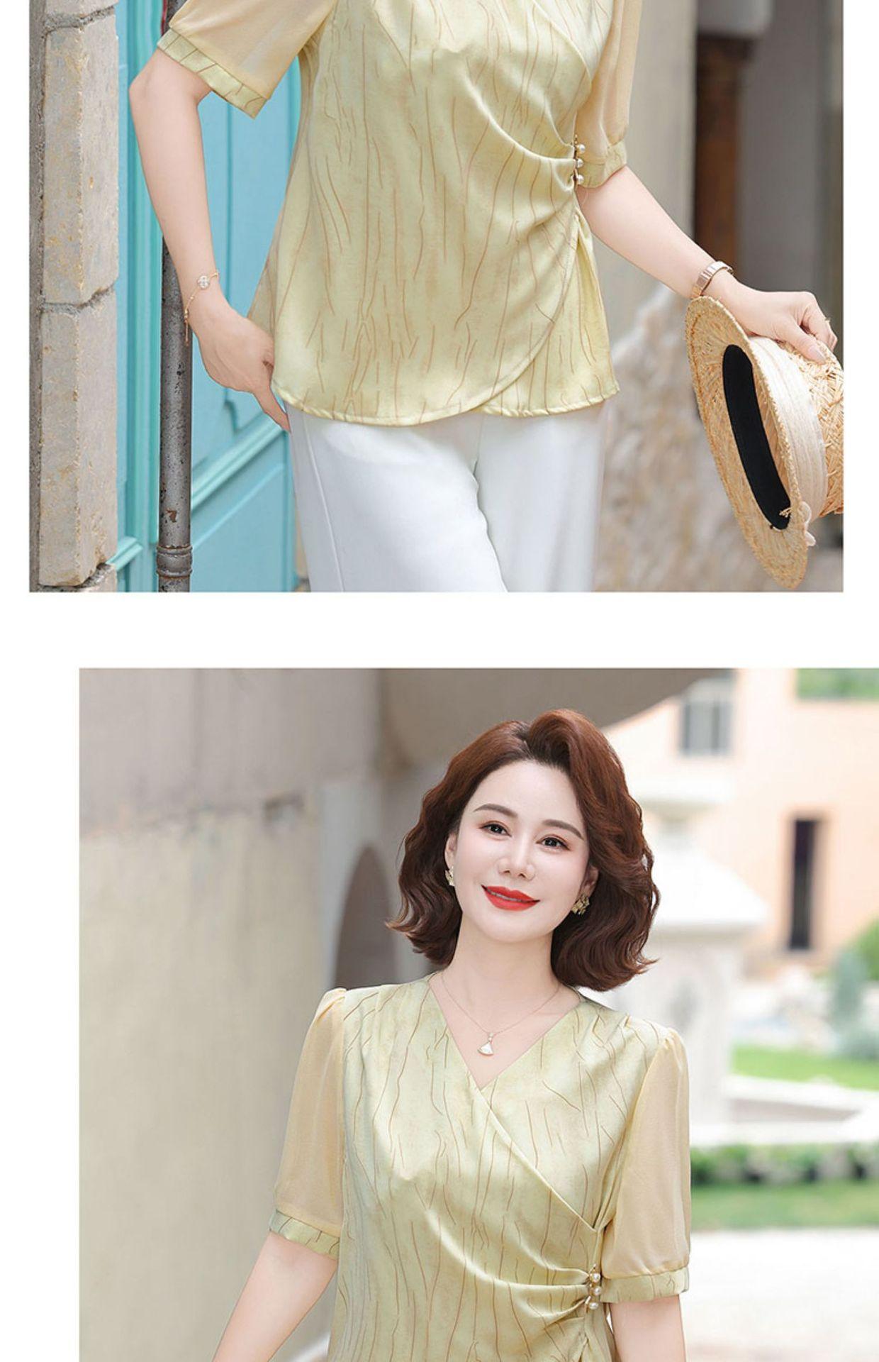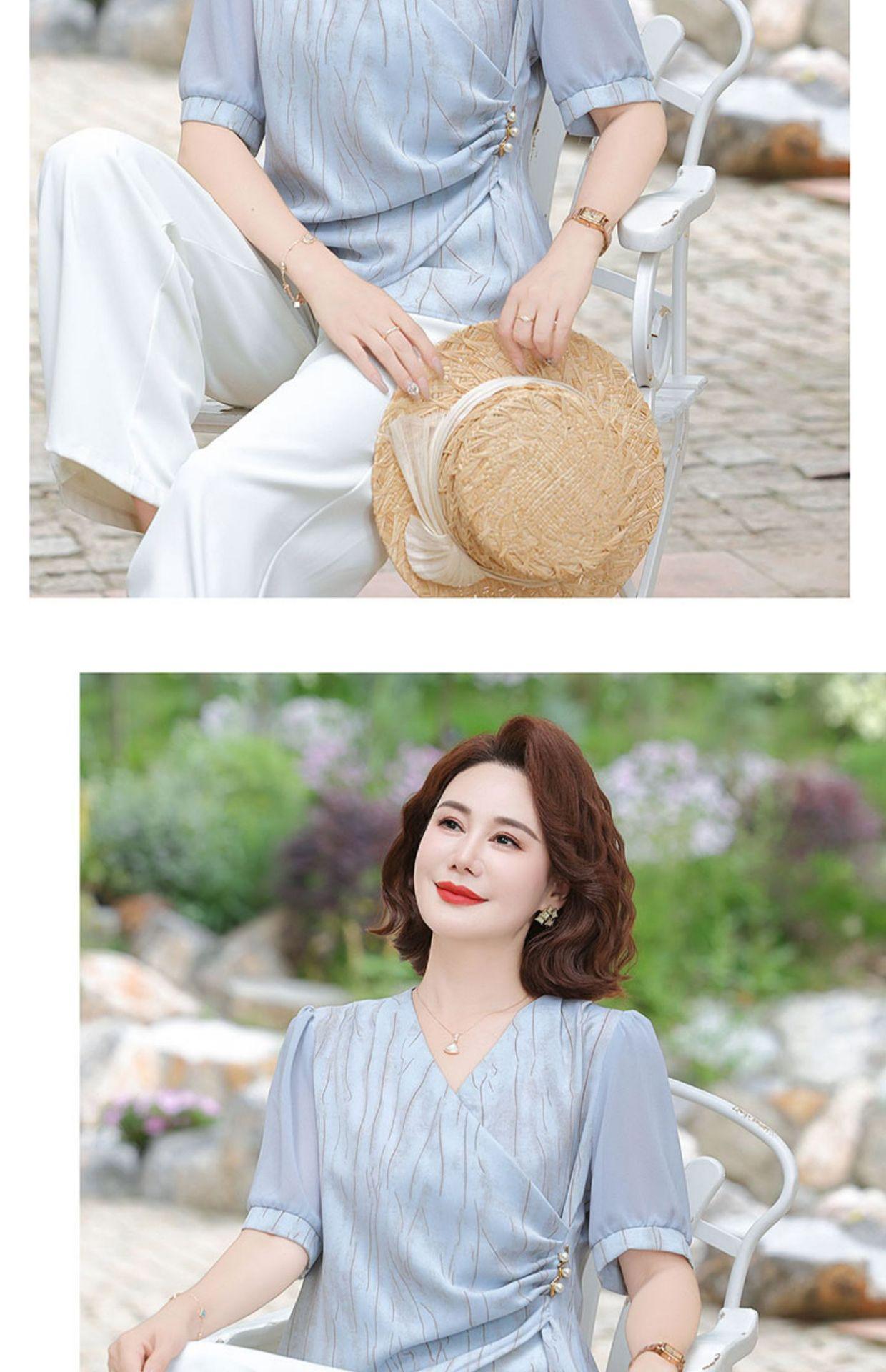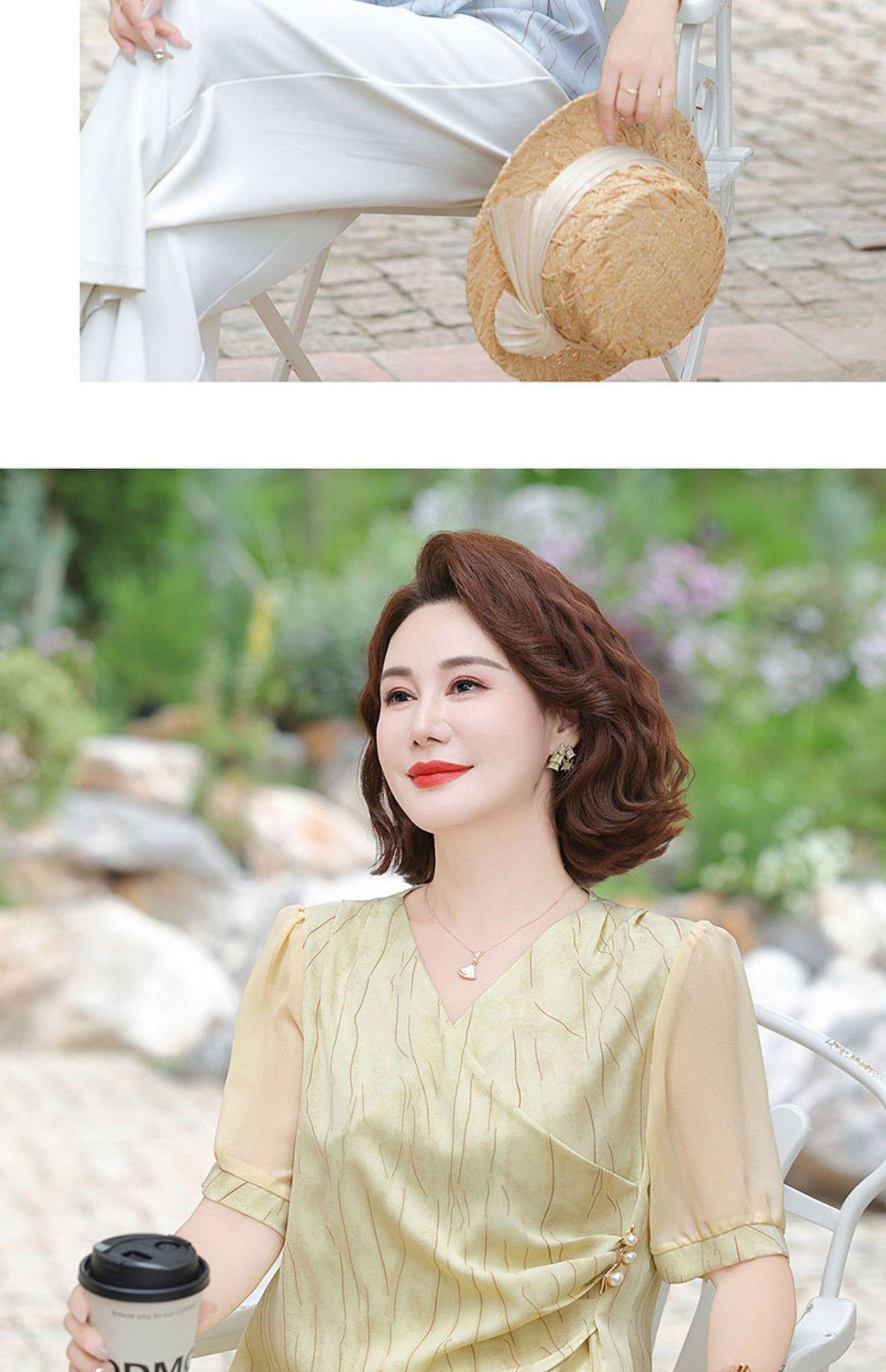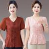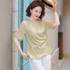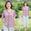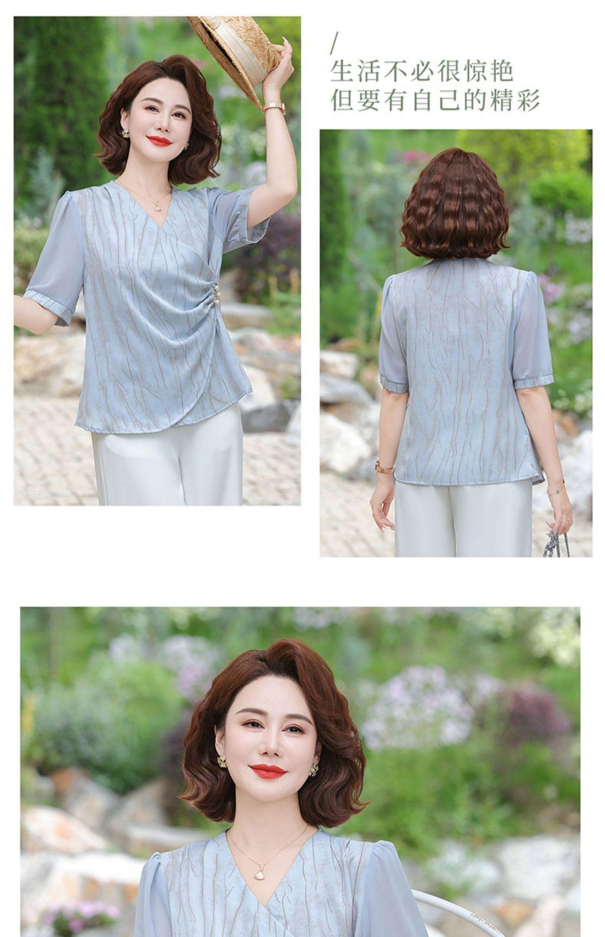 Camisa de Verano de Chifón de Manga Corta para Mamá 2025 Nueva para Mujeres de Mediana Edad y Mayores, Top de Cuello en V, Ropa de Moda para Dama