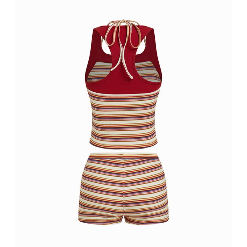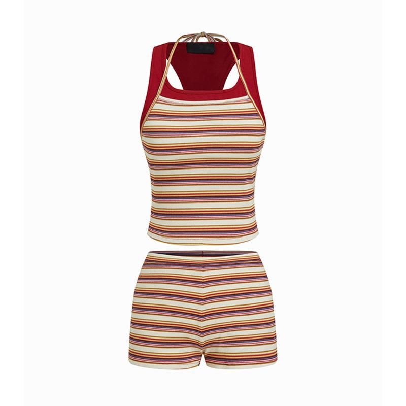 Conjunto de Camisola y Shorts de Moda Retro Nueva Europea y Americana 2025 Sexy Adelgazante Casual Individual Versátil Bloque de Color Raya
