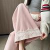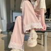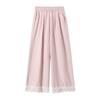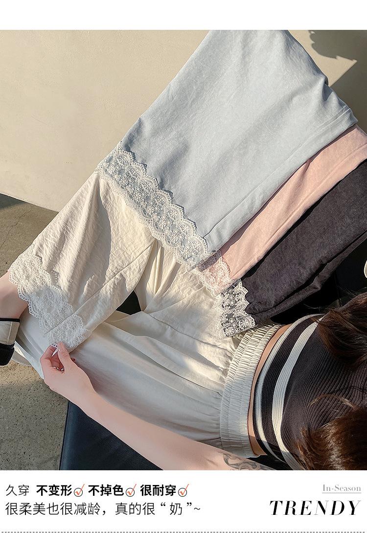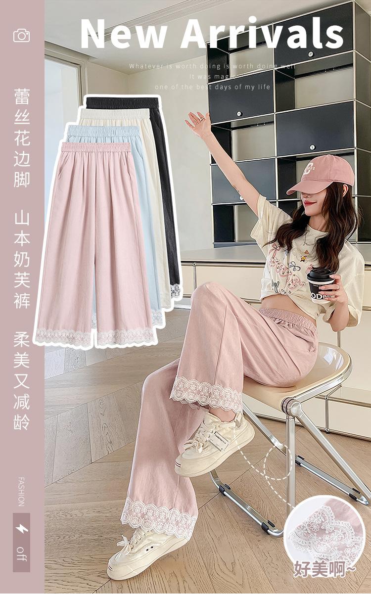 2025 Pantalones Petite de Encaje con Empalme de Pierna Ancha para Mujer Verano Nuevo Sueltos Adelgazantes Casuales Rectos
