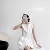 Verano 2025 Nuevo Vestido Chaleco Francés Simple Adelgazante de Cintura Blanco Francés Sin Mangas Vestido Blanco Pequeño para Mujeres