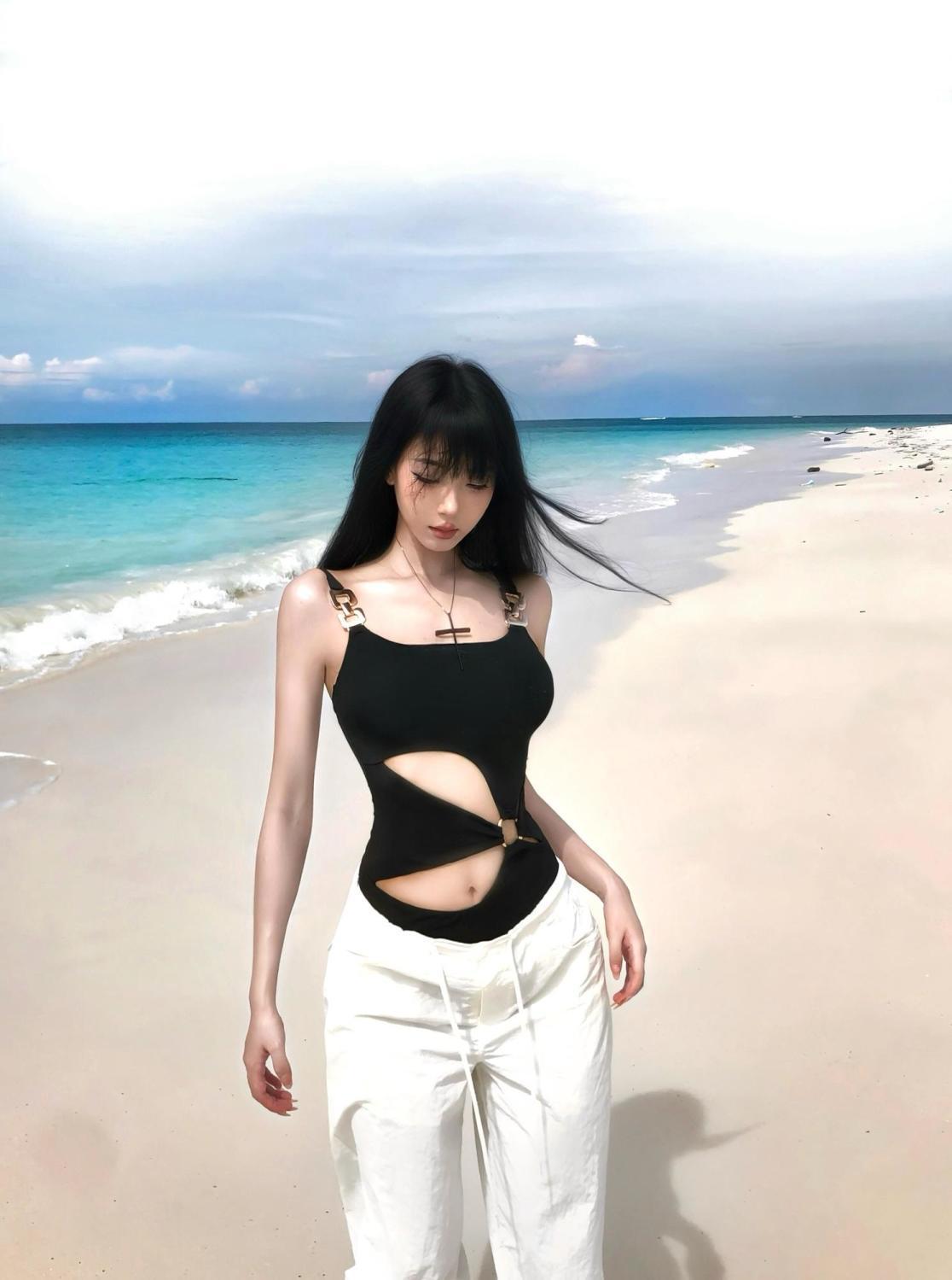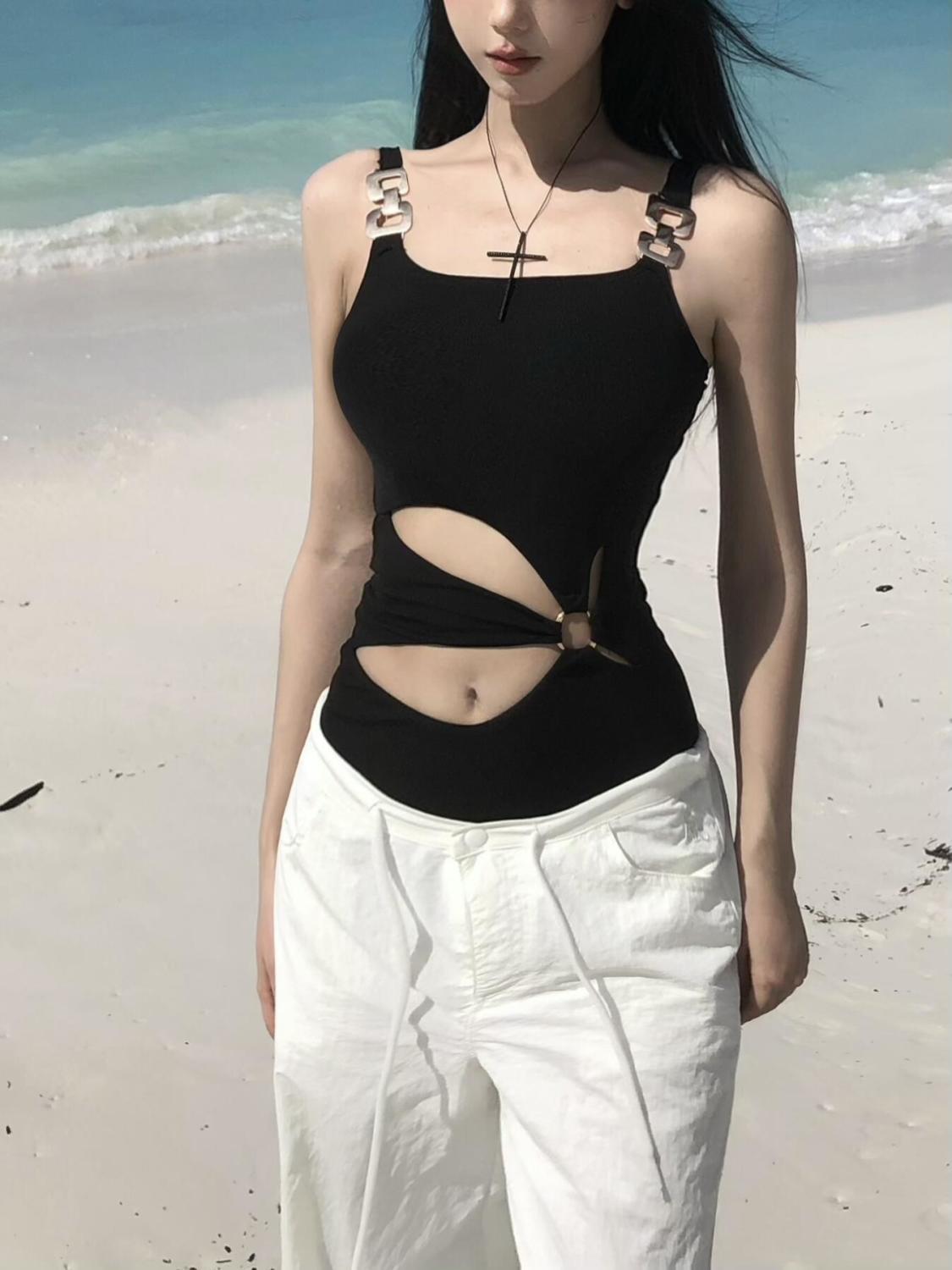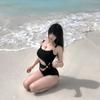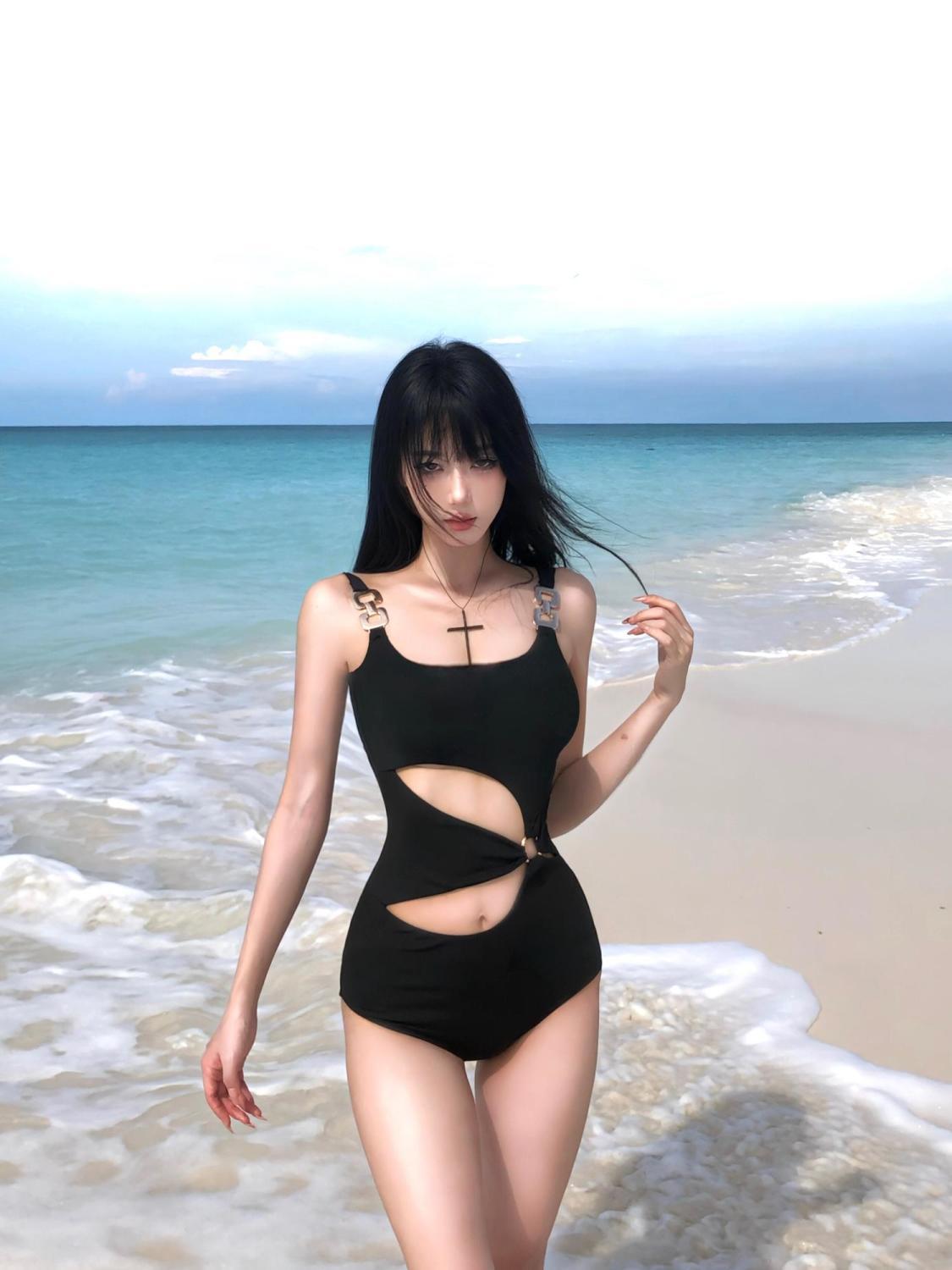 Traje de Baño Sexy de Una Pieza con Aberturas para Chica Caliente para Mujer ins Adelgazante y Favorecedor de la Figura Busto Pequeño Push-Up Primavera Caliente Verano