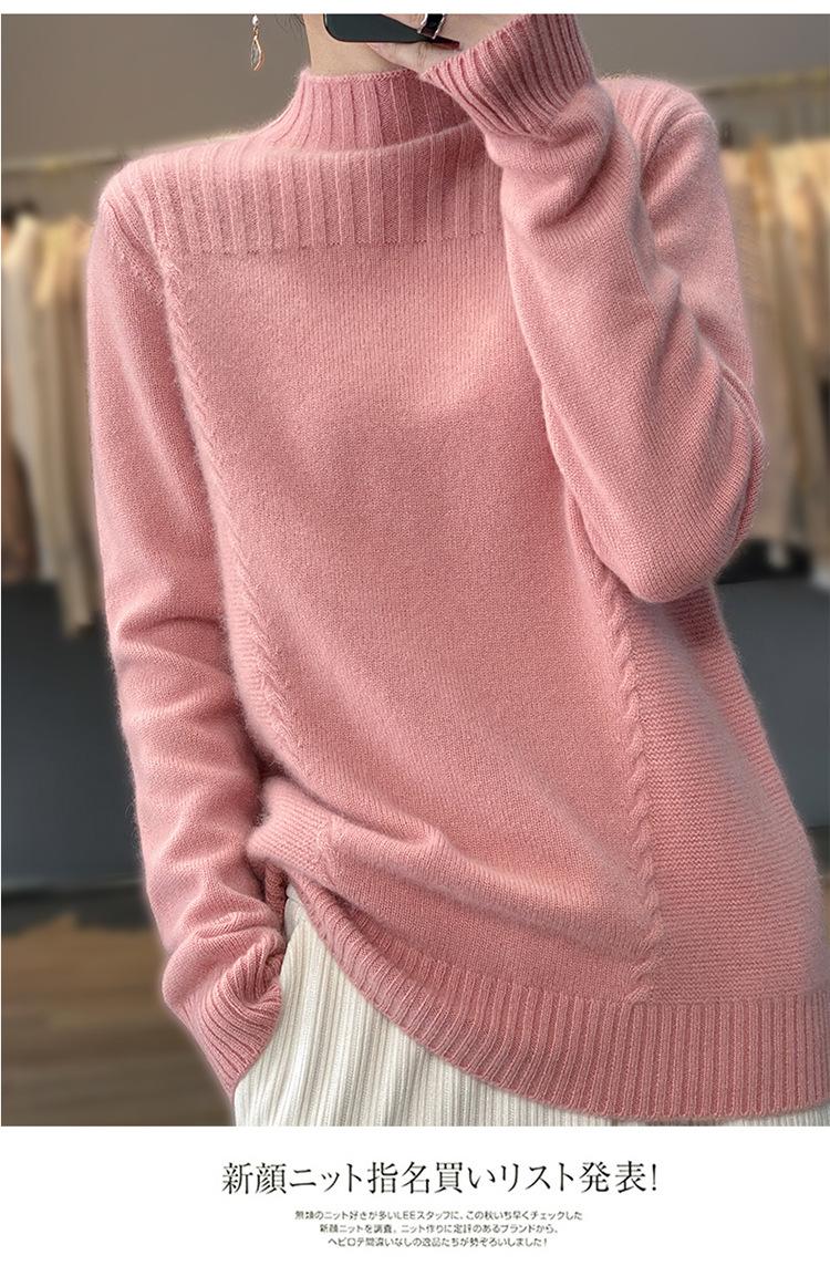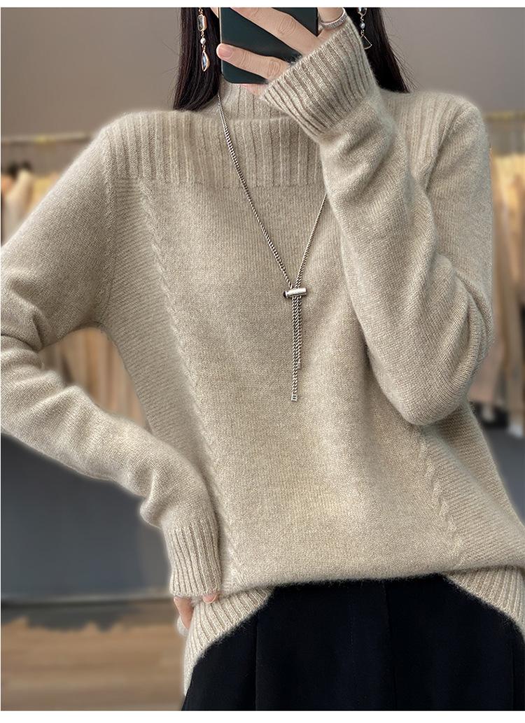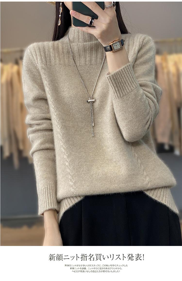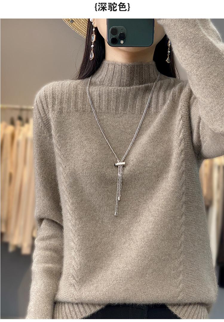 Suéter de punto de manga larga casual suelto de lana entera nuevo para mujer otoño e invierno 2022 con cuello alto medio trenzado