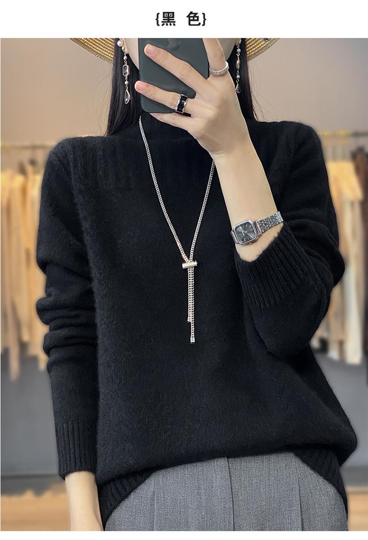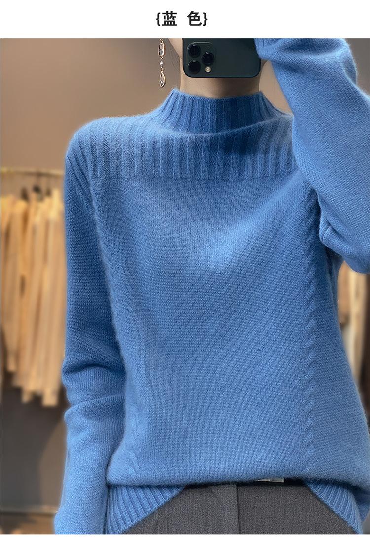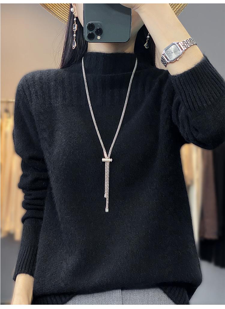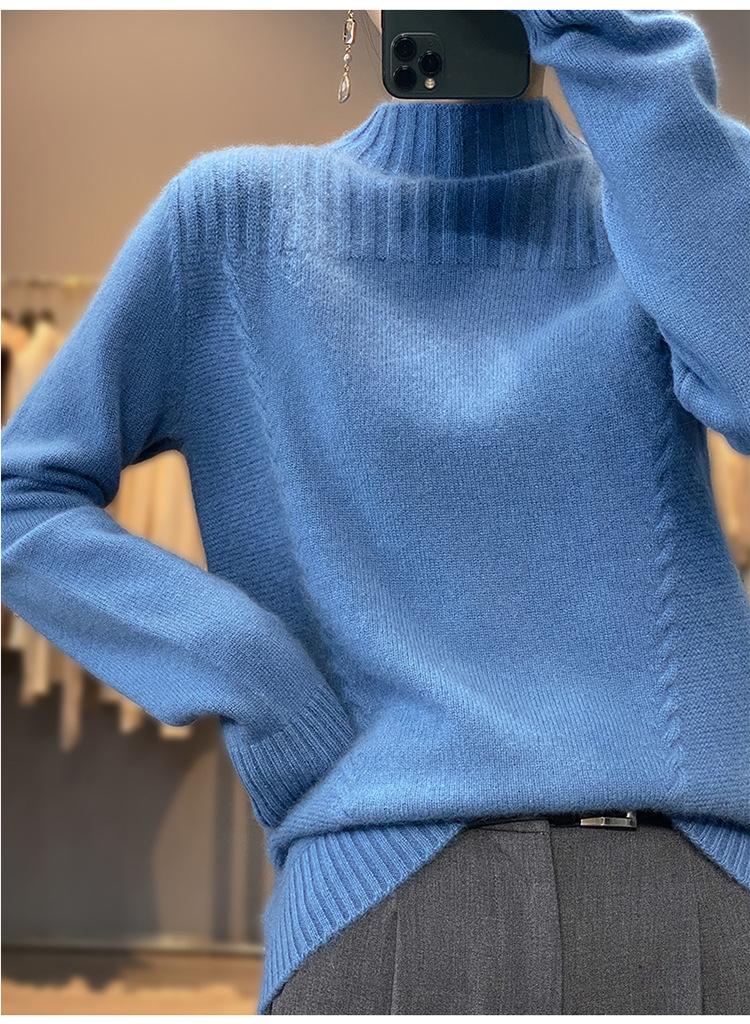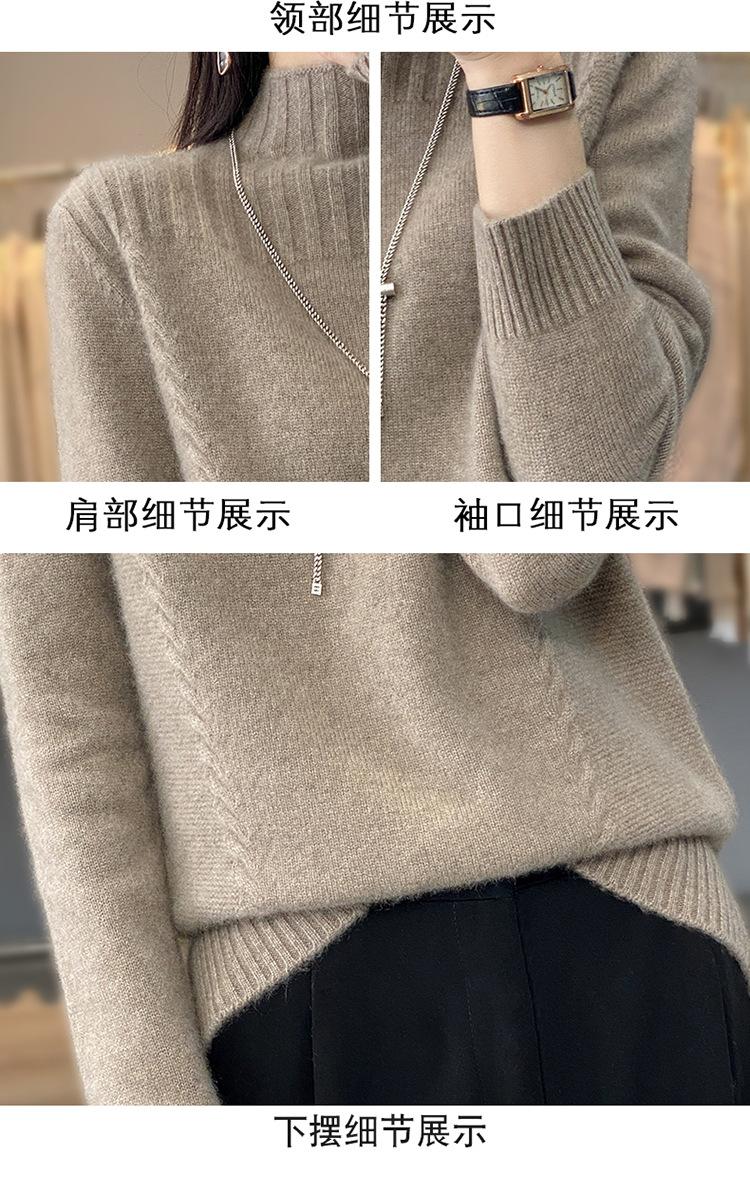 Suéter de punto de manga larga casual suelto de lana entera nuevo para mujer otoño e invierno 2022 con cuello alto medio trenzado
