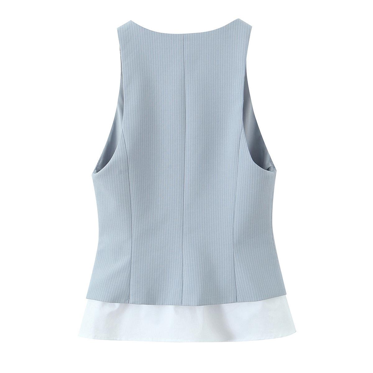 Primavera Nuevo Diario Versátil Rayas Empalme Chaleco Delgado para Mujer 2025 Top Cárdigan de Un Solo Botón Venta al por Mayor