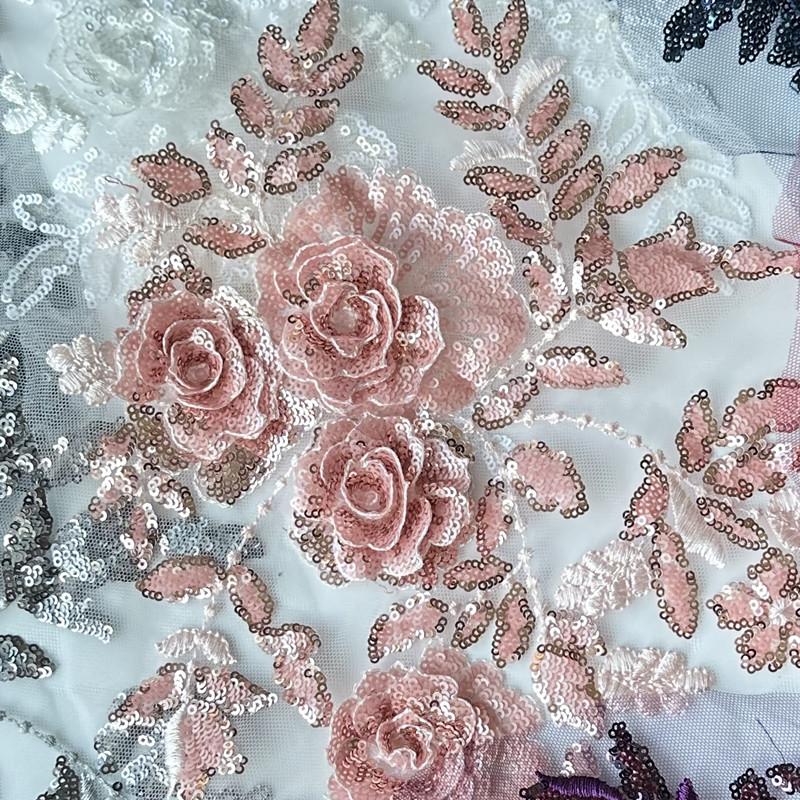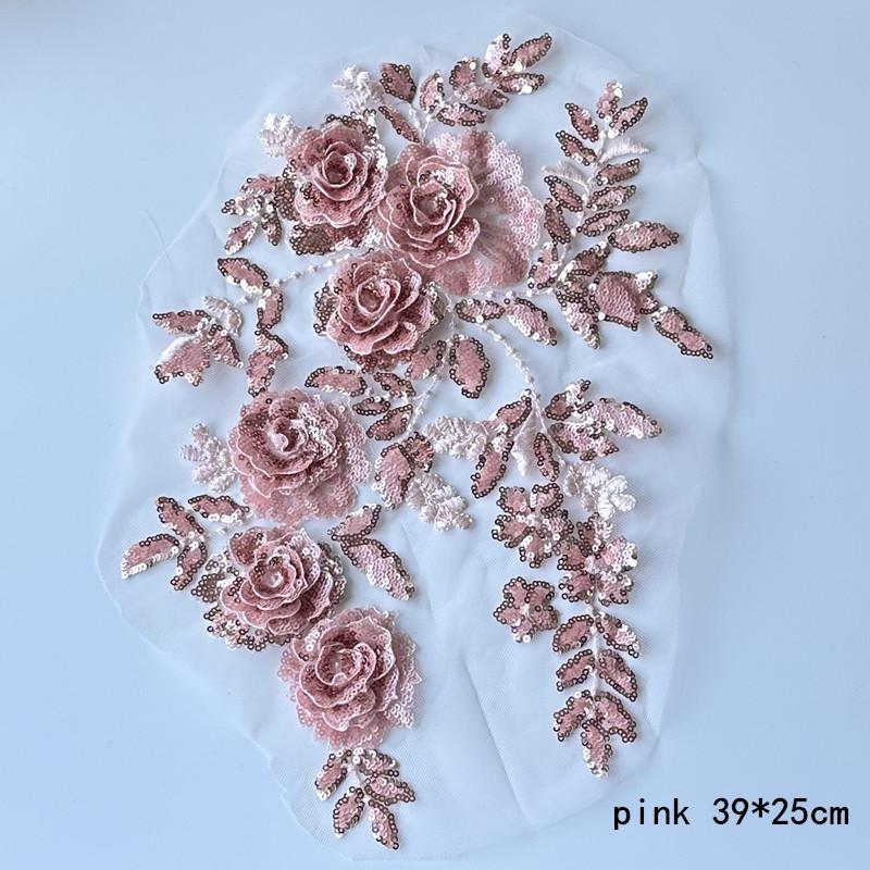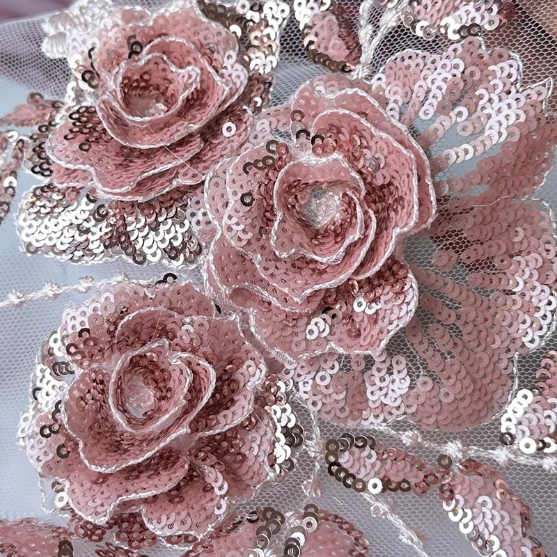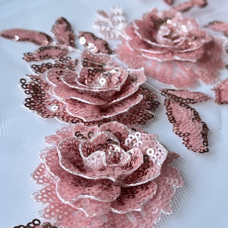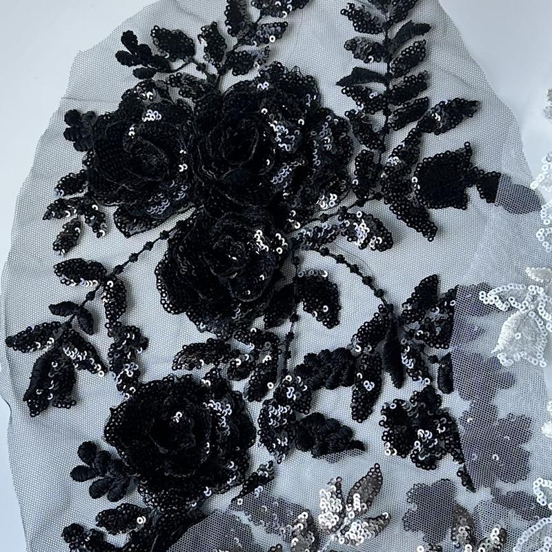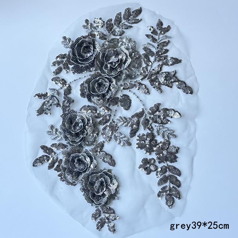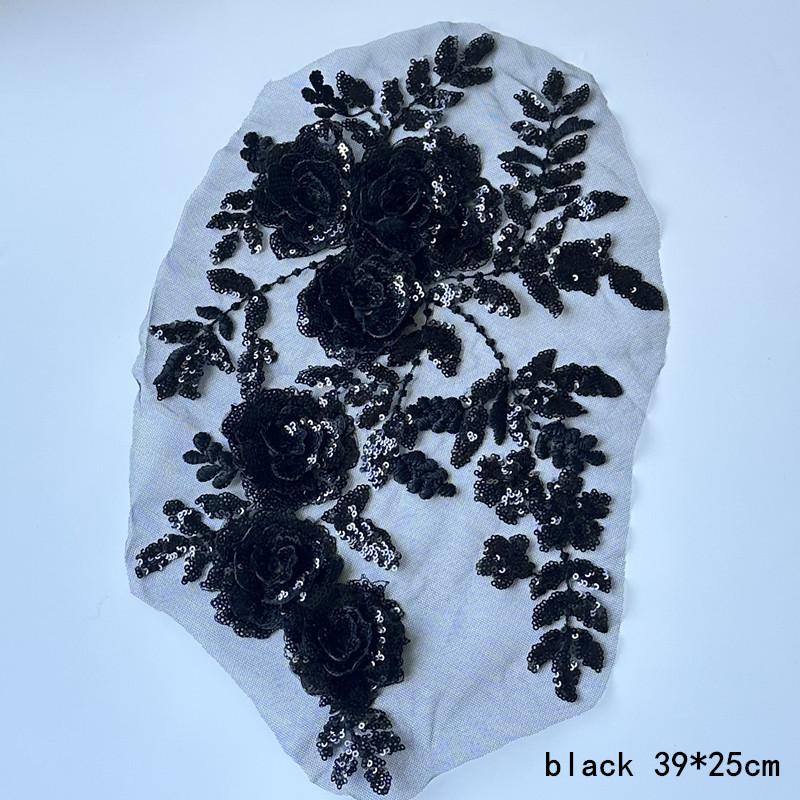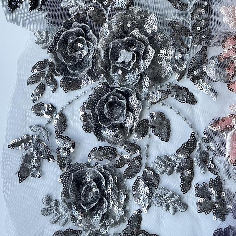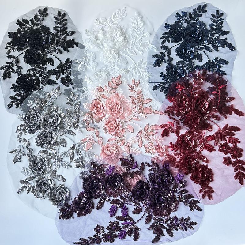 Parche de Tela Bordado de Flor Estéreo de Lentejuelas Parche de Encaje de Malla Vestido de Boda Cheongsam Ropa Falda Accesorios Decorativos DIY