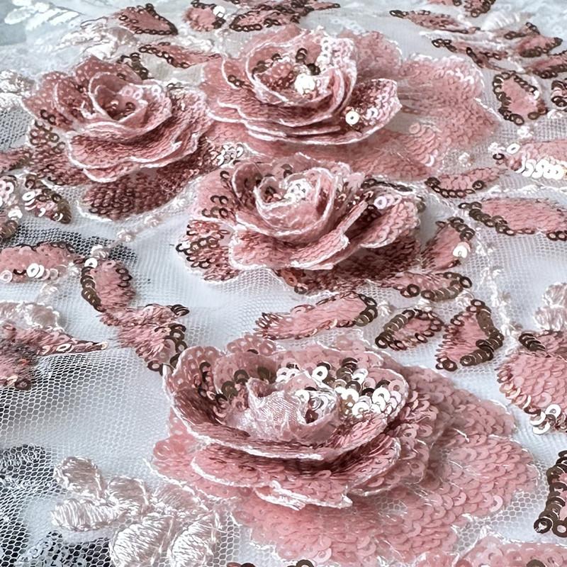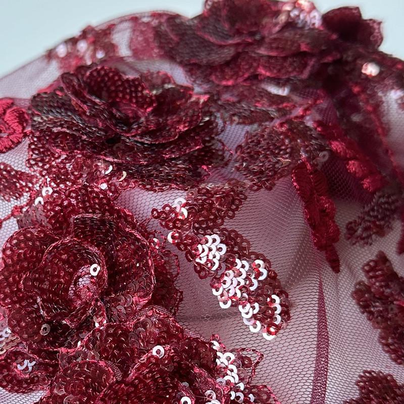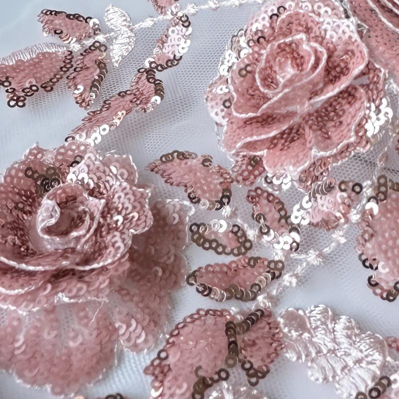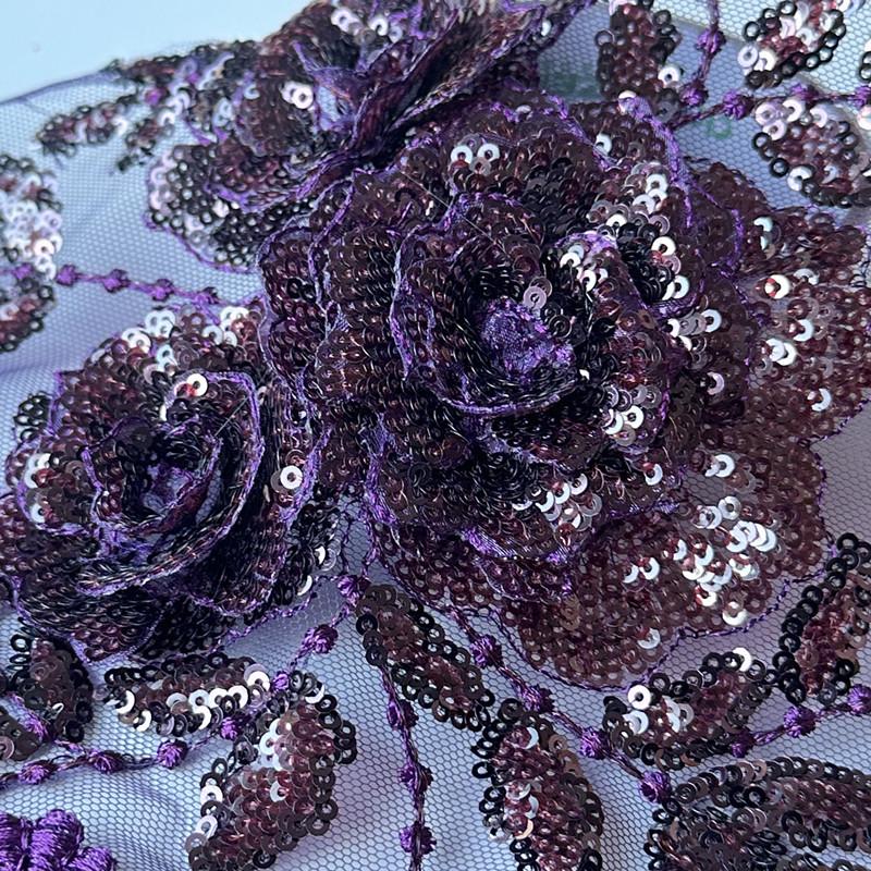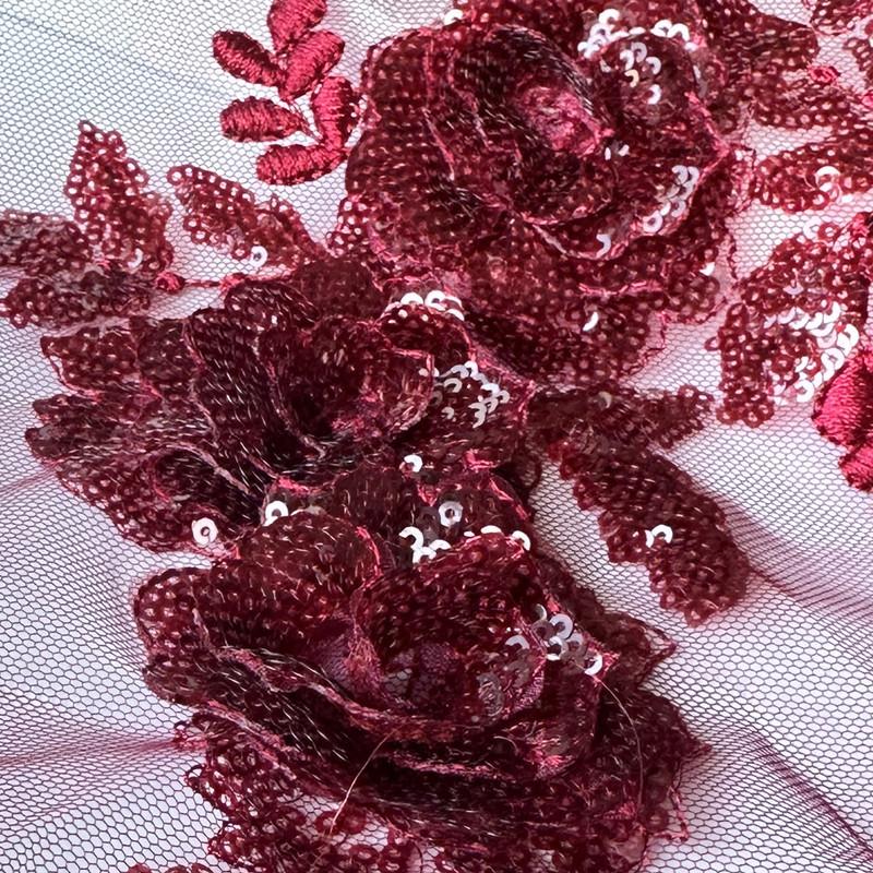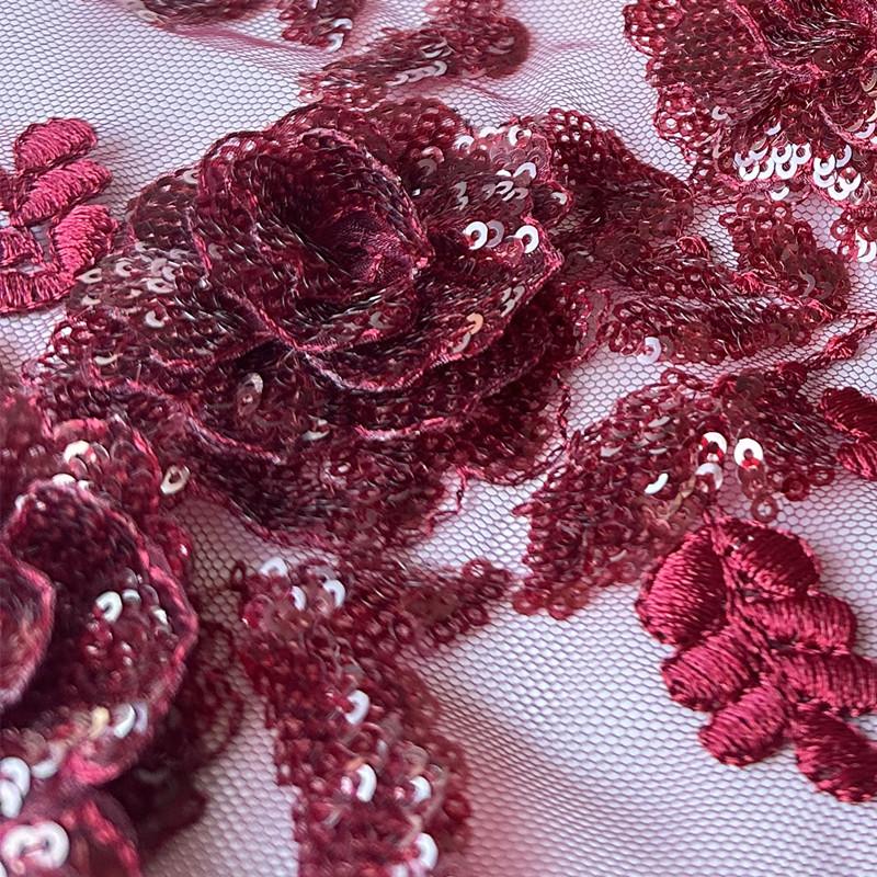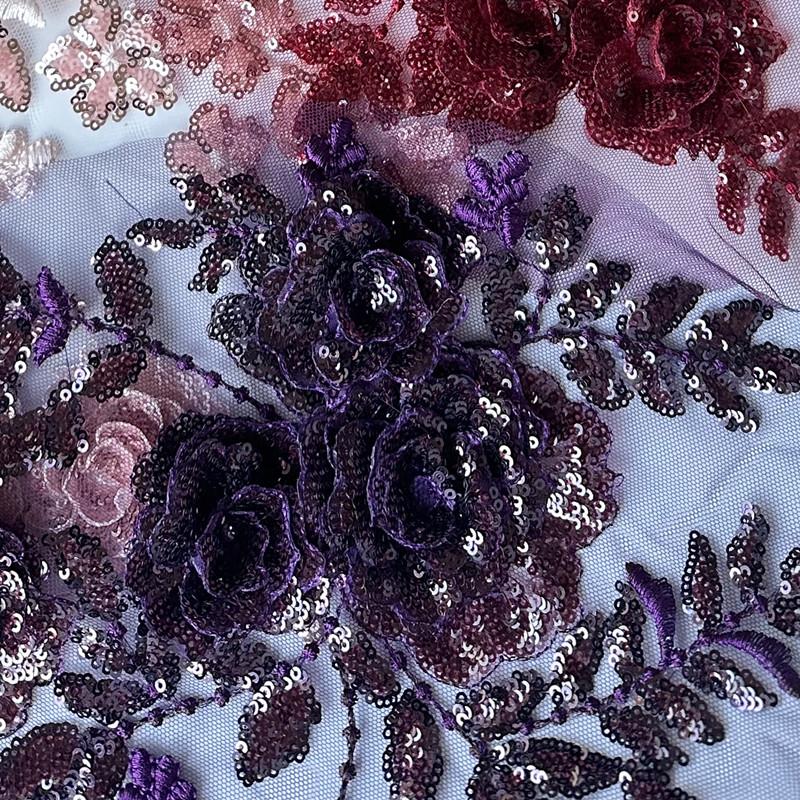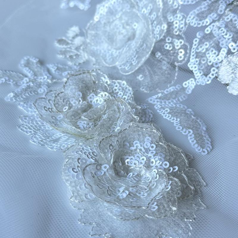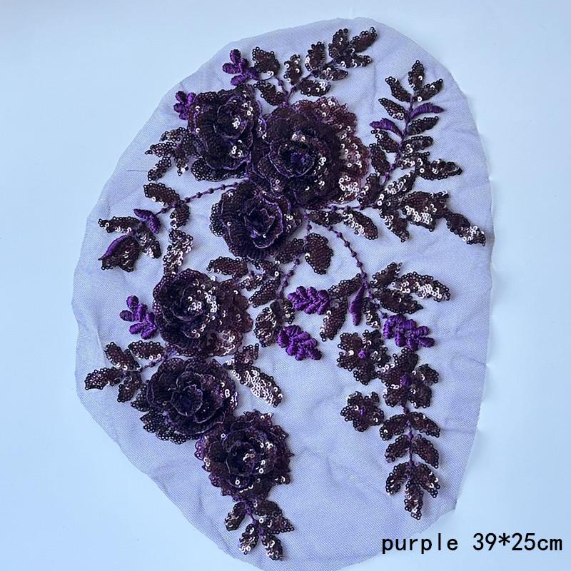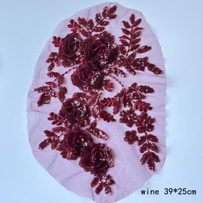 Parche de Tela Bordado de Flor Estéreo de Lentejuelas Parche de Encaje de Malla Vestido de Boda Cheongsam Ropa Falda Accesorios Decorativos DIY