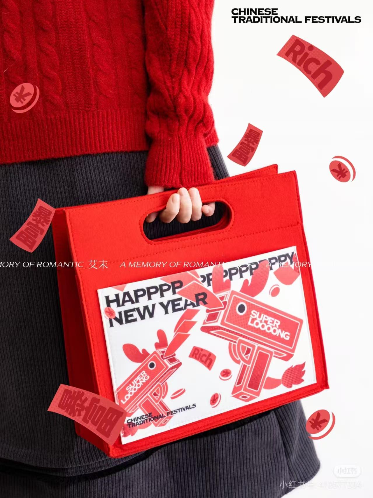 Coin will make you rich, Red handbag, Fulu bag, Color matching gift bag (excluding accessories), Lion awakenin...