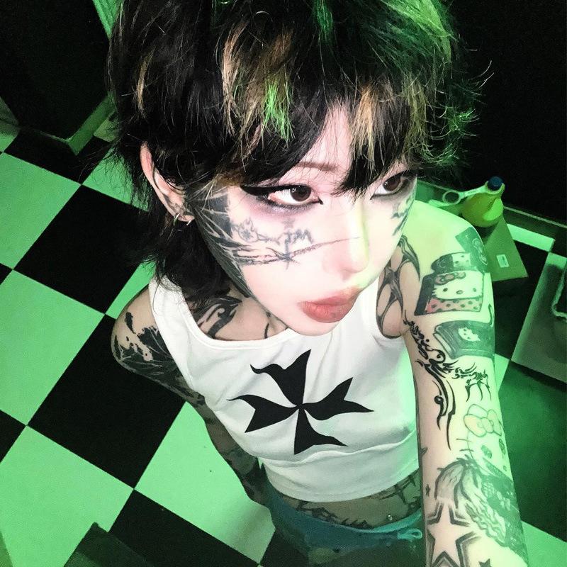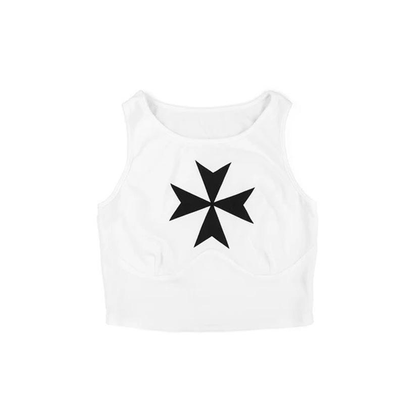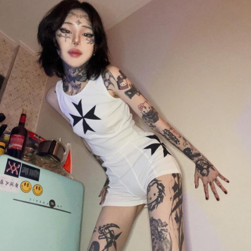 2025 Conjunto Sexy para Mujer de Chica Caliente Camiseta sin Mangas Shorts Estampado de Letras Blancas Europeo y Americano Transfronterizo Camiseta sin Mangas INS