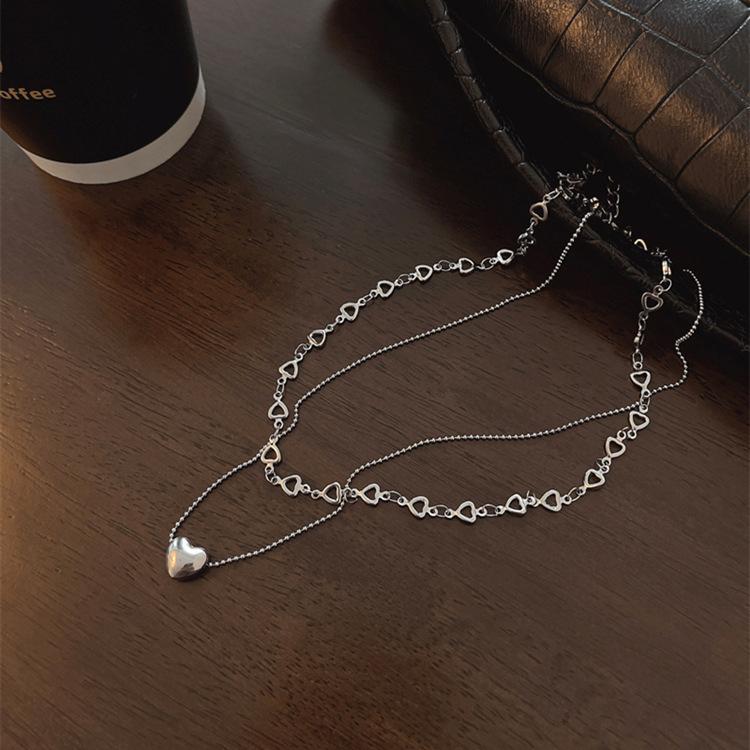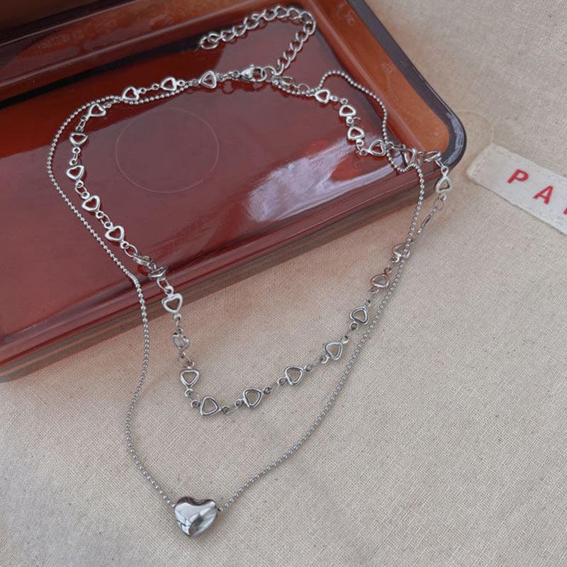 Collar de doble capa estilo hip-hop europeo y americano, estilo romántico, cadena de clavícula de moda para mujer, estilo simple y nuevo, collar multicapa estilo frío.