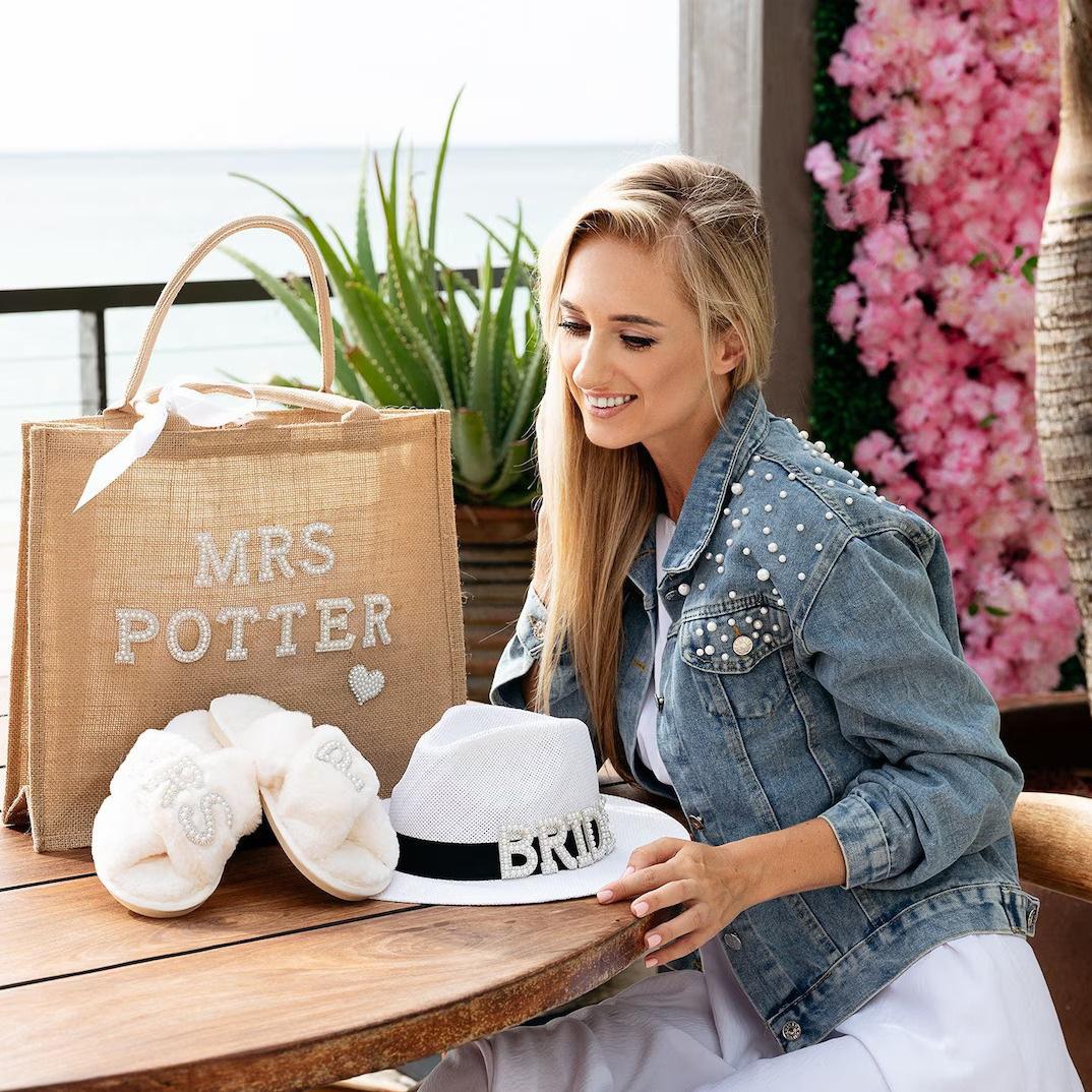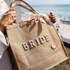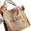 2024 nueva bolsa tote de lino con diamantes de letras para novia europea y americana, decoración para fiesta de boda, bolsa de regalo para novia
