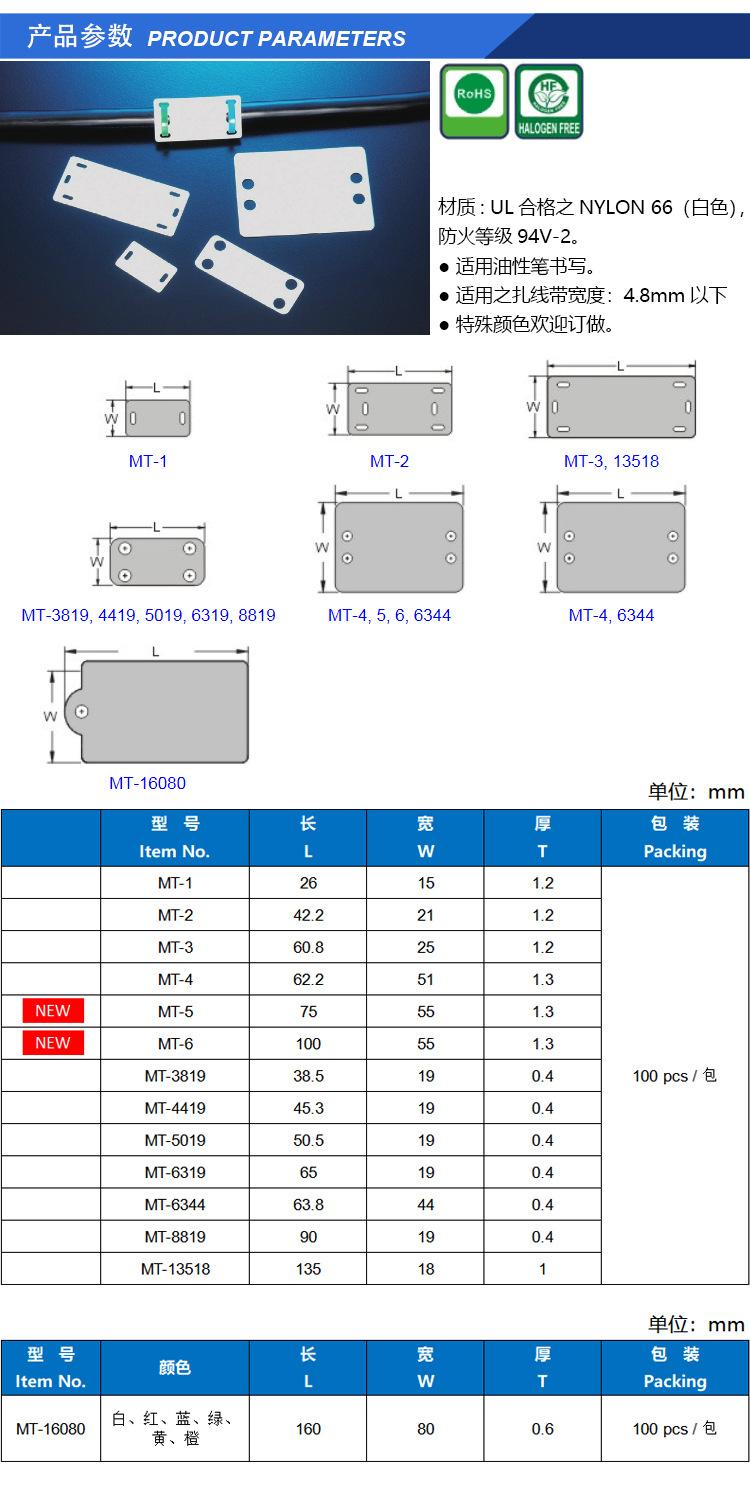 Bridas para cables de marcaje MCV-***, serie blanca, Taiwán KSS, 100 unidades/paquete
