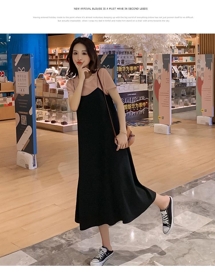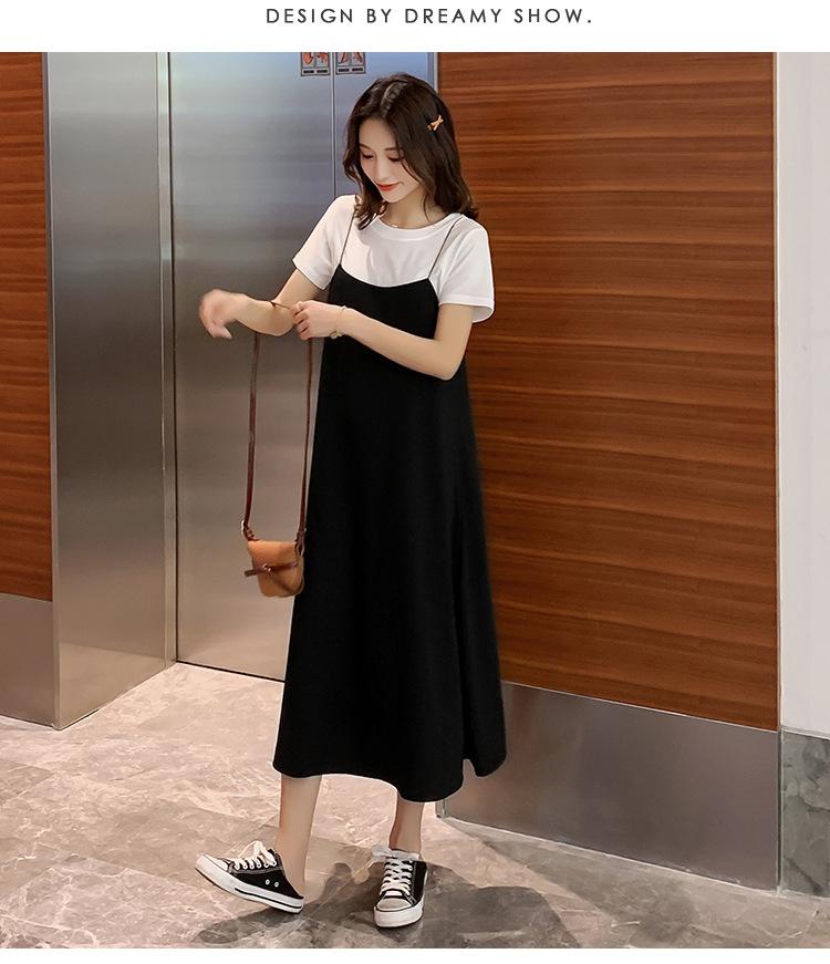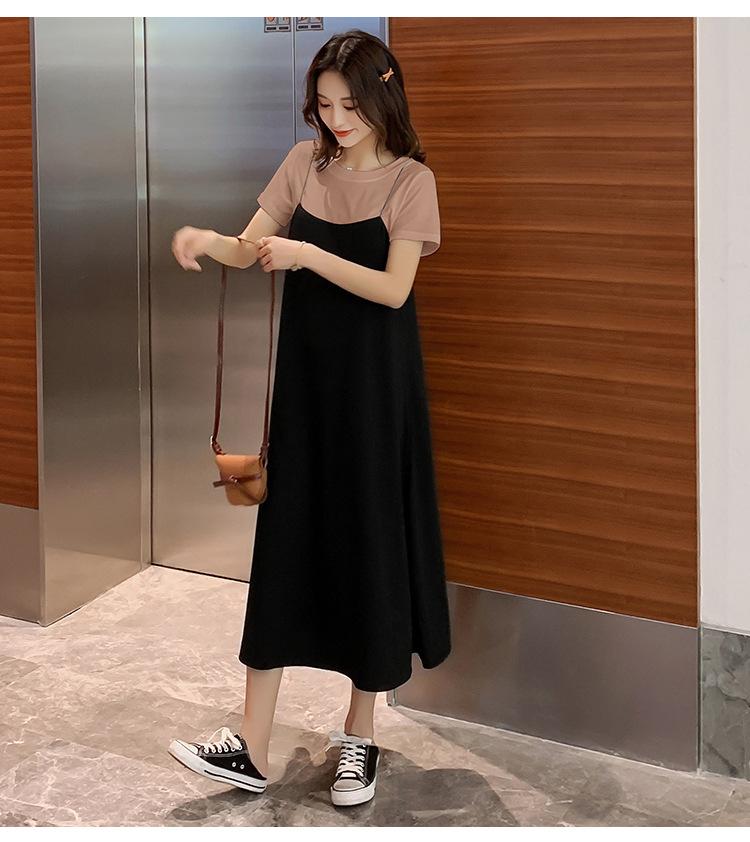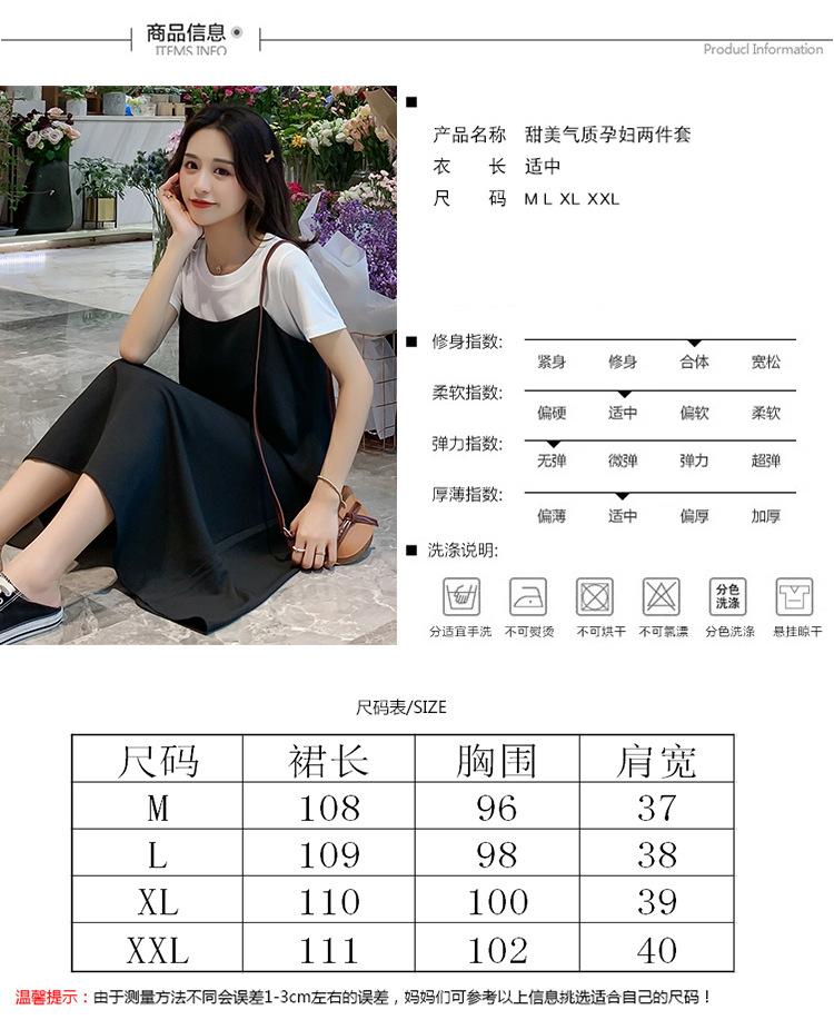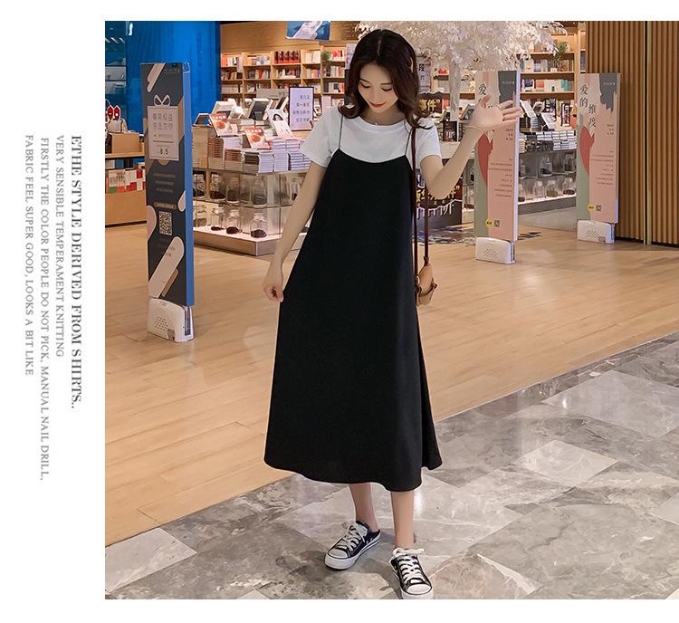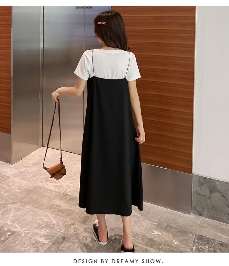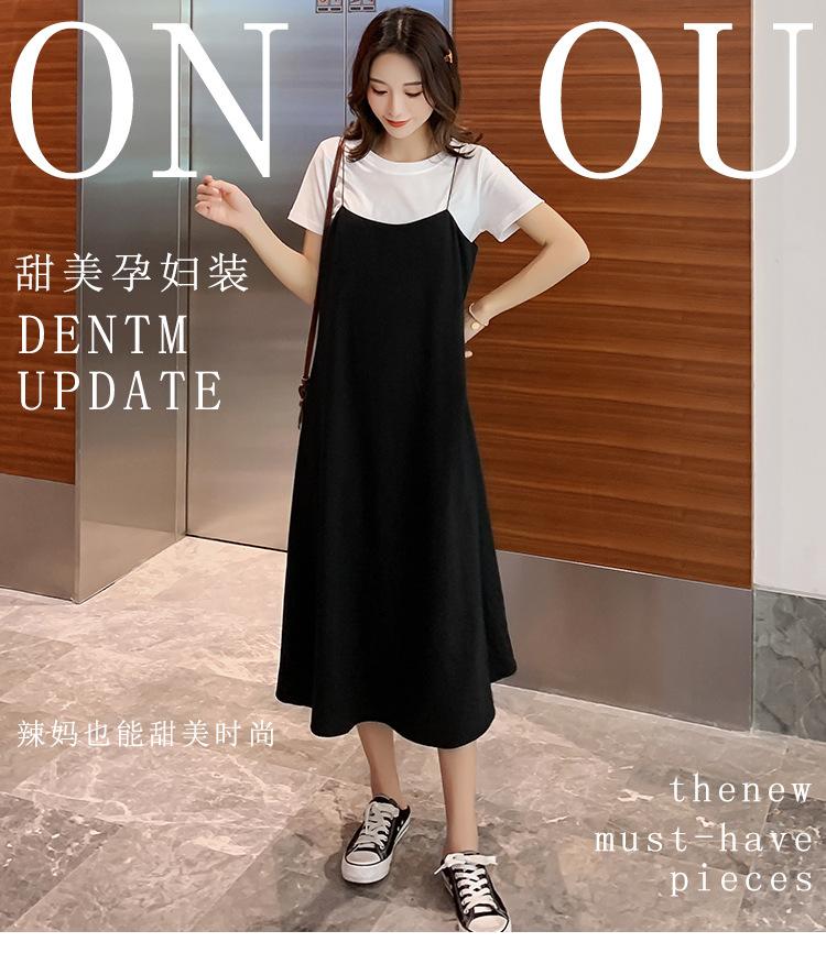 Mujeres Embarazadas Verano Talla Grande Camisola de Maternidad+Camiseta Conjunto de Dos Piezas Sobre la Rodilla Suelto Adelgazante Vestido de Maternidad