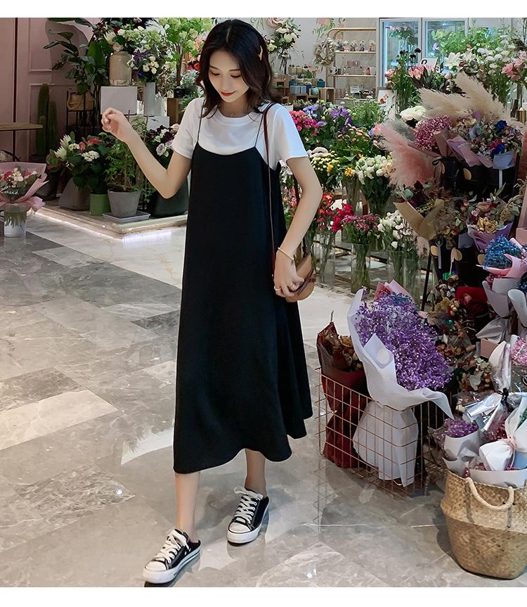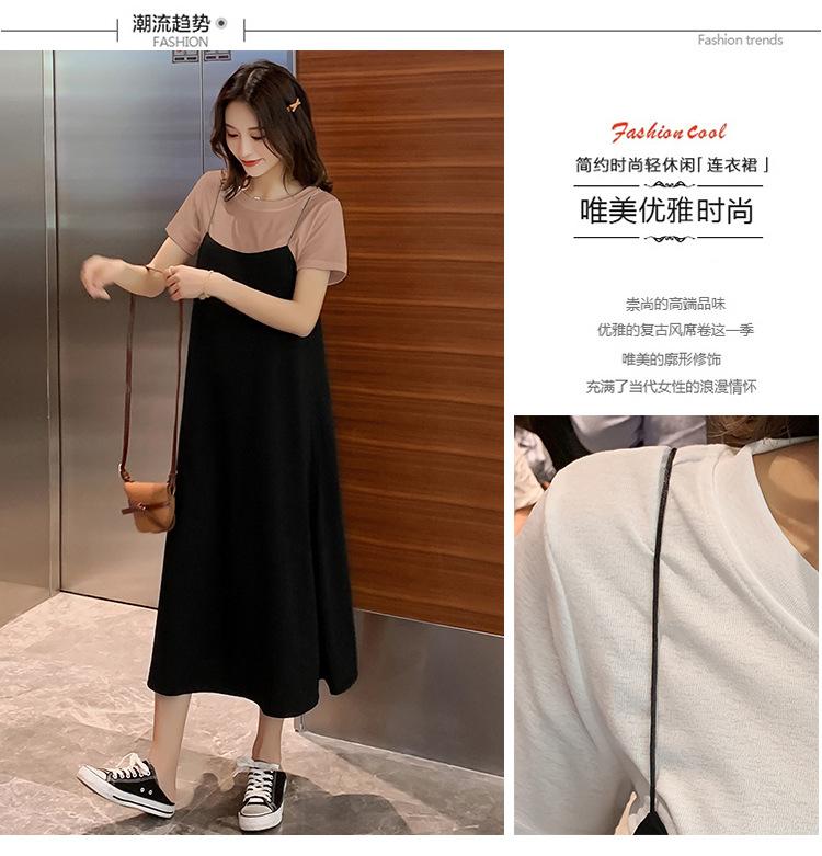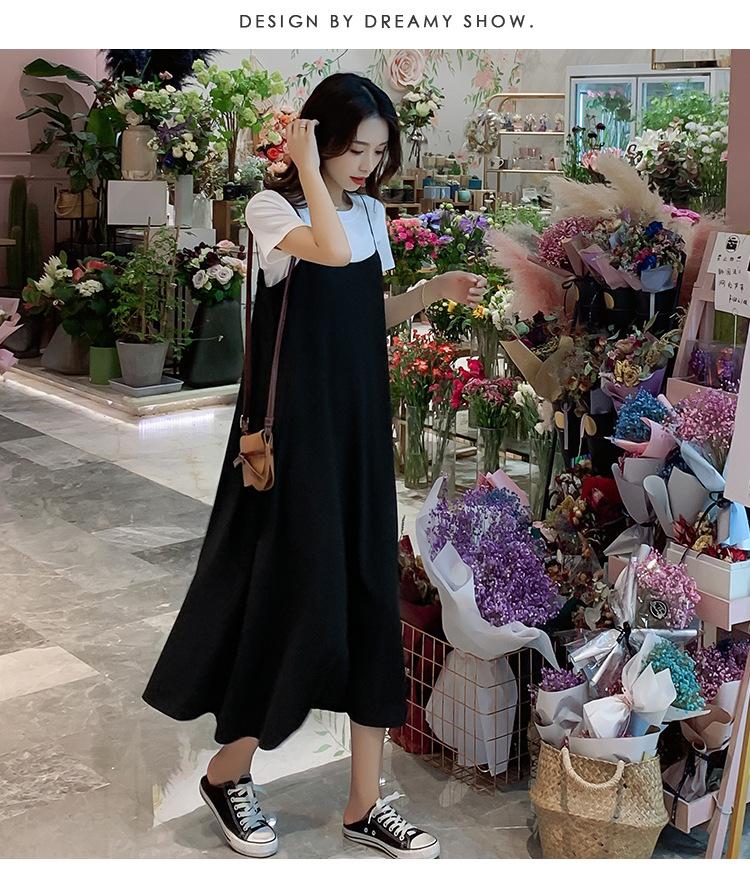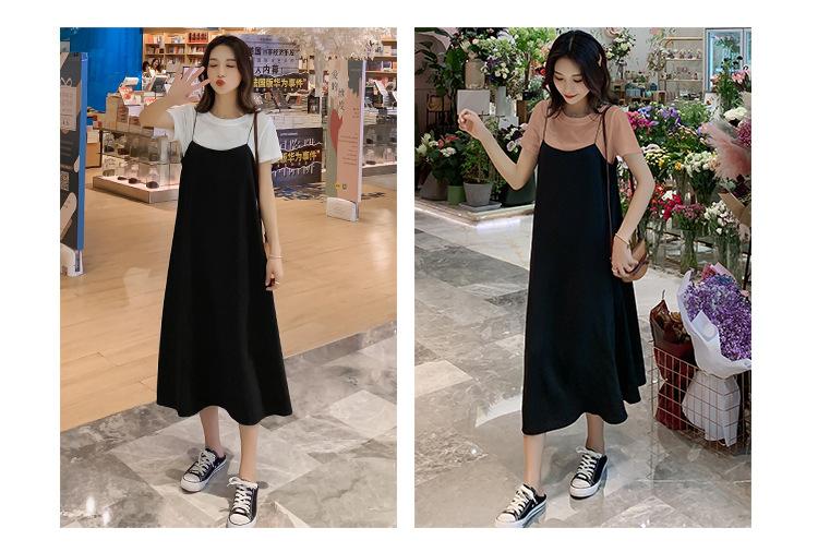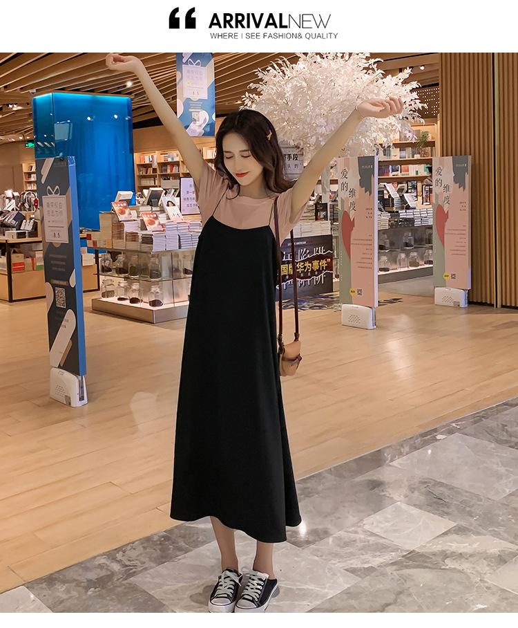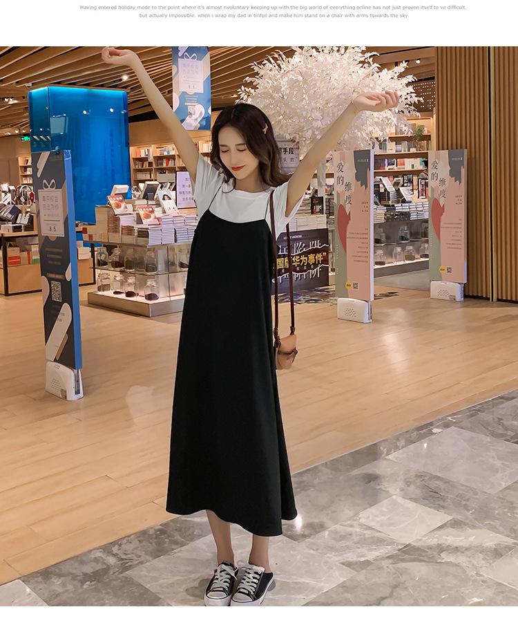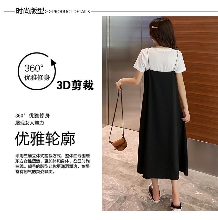 Mujeres Embarazadas Verano Talla Grande Camisola de Maternidad+Camiseta Conjunto de Dos Piezas Sobre la Rodilla Suelto Adelgazante Vestido de Maternidad