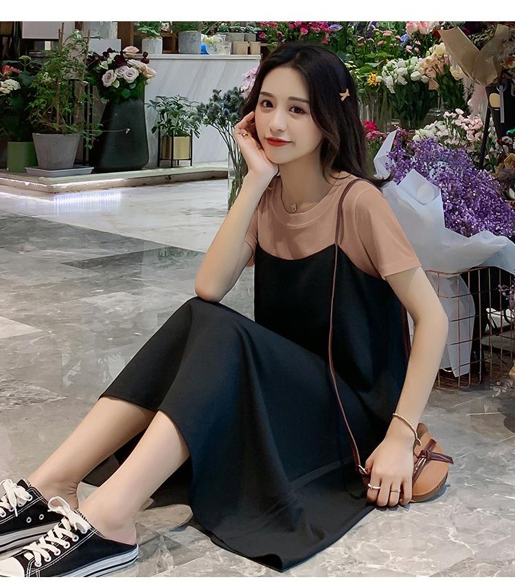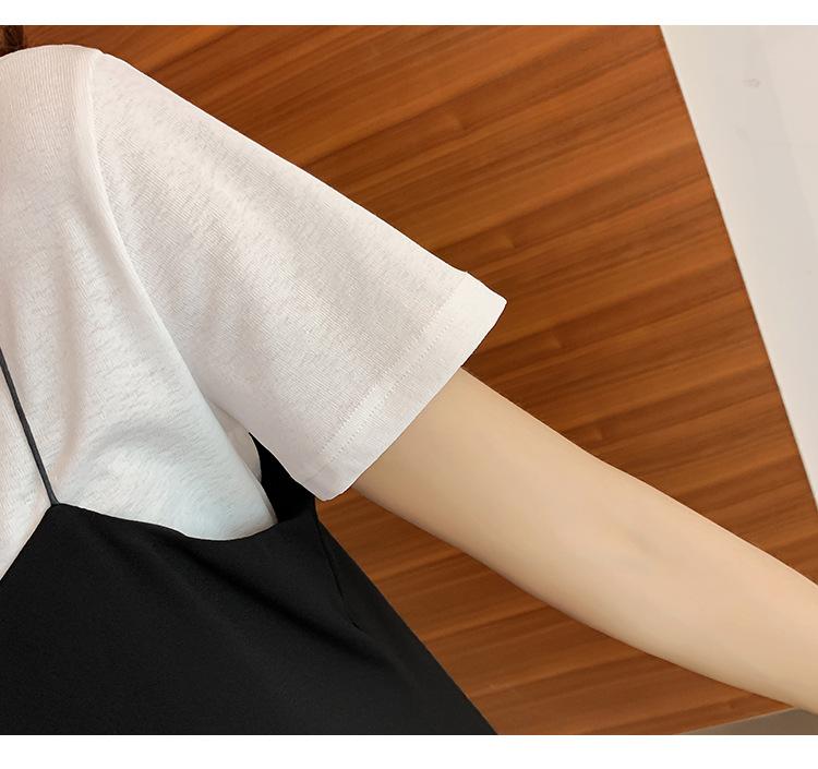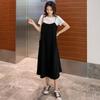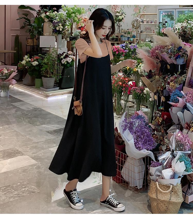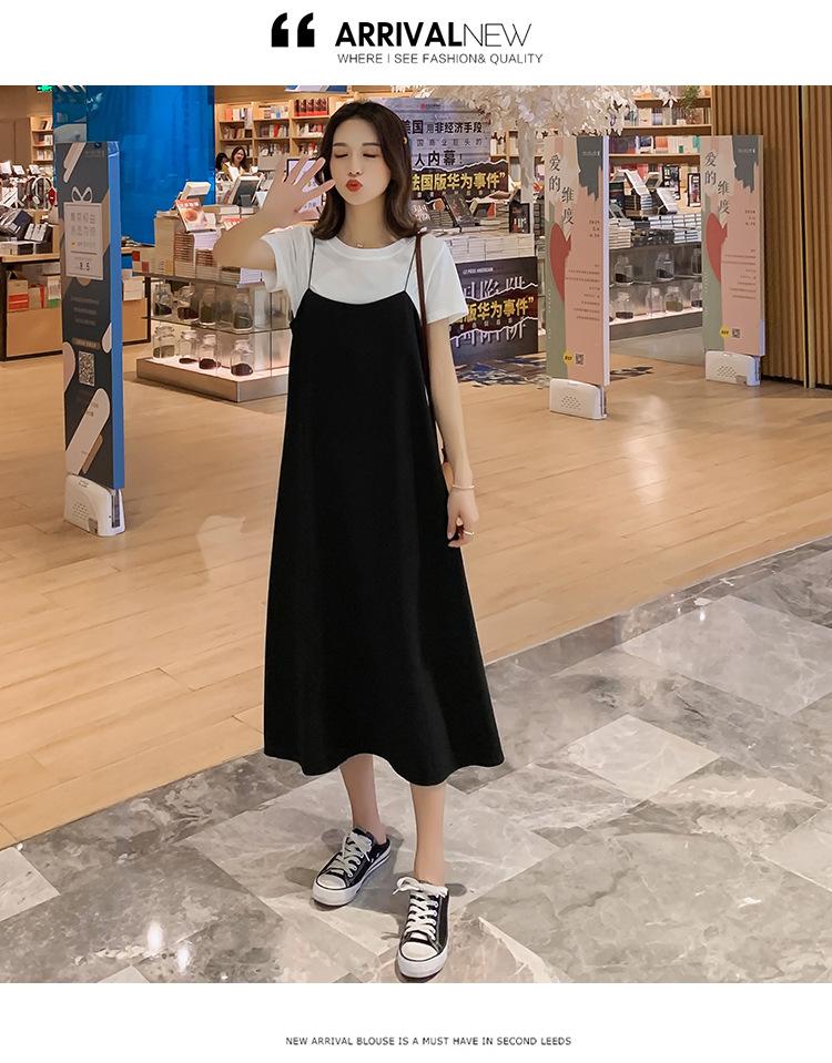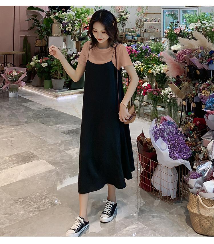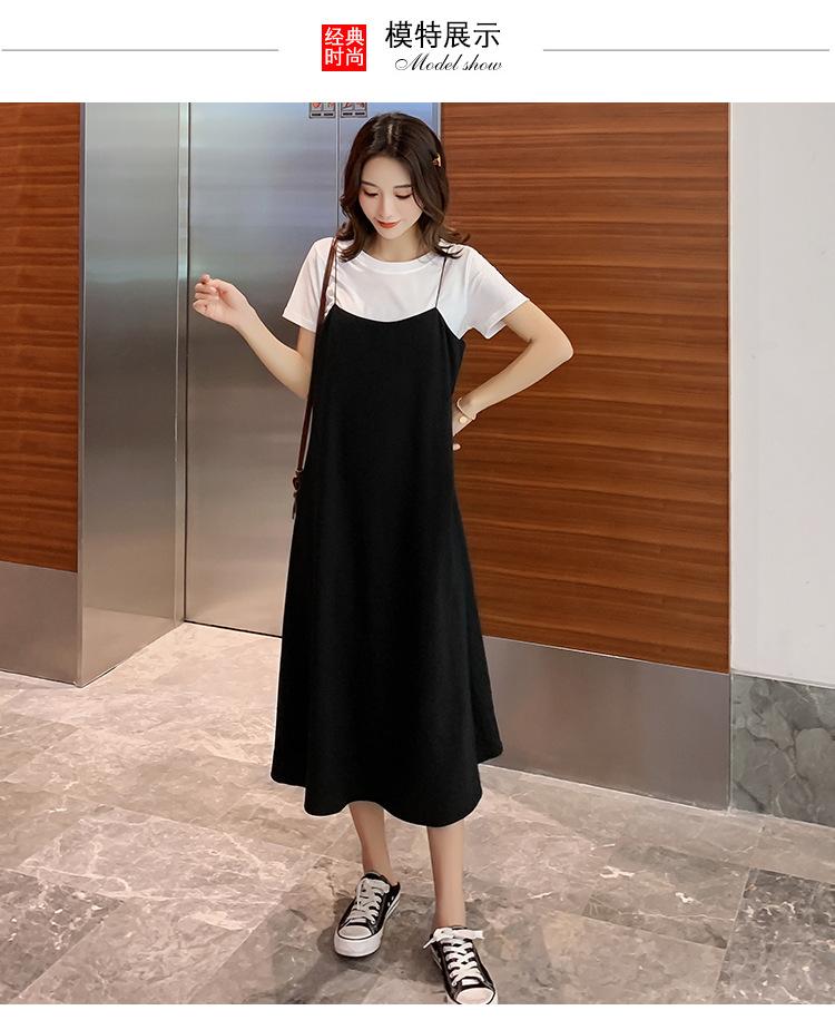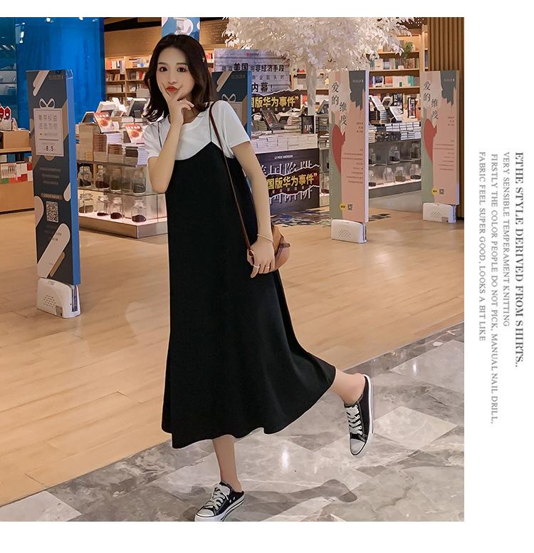 Mujeres Embarazadas Verano Talla Grande Camisola de Maternidad+Camiseta Conjunto de Dos Piezas Sobre la Rodilla Suelto Adelgazante Vestido de Maternidad