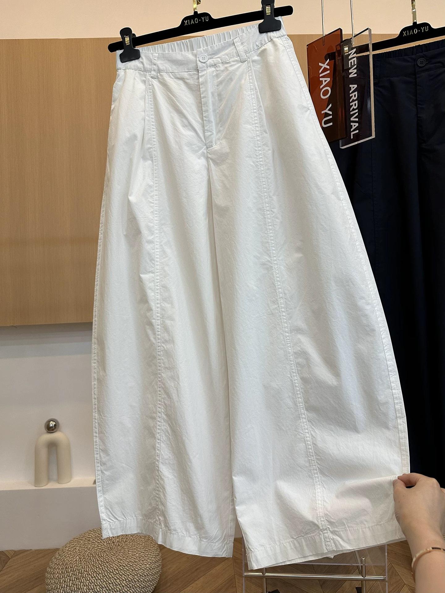 Pantalones de Pierna Ancha Cimitarra Holgados Adelgazantes de Cintura Alta Versátiles de Moda Europea de Verano de Alta Gama para Mujer