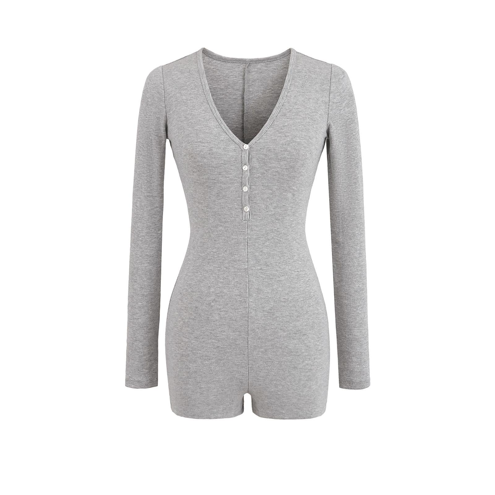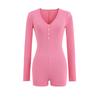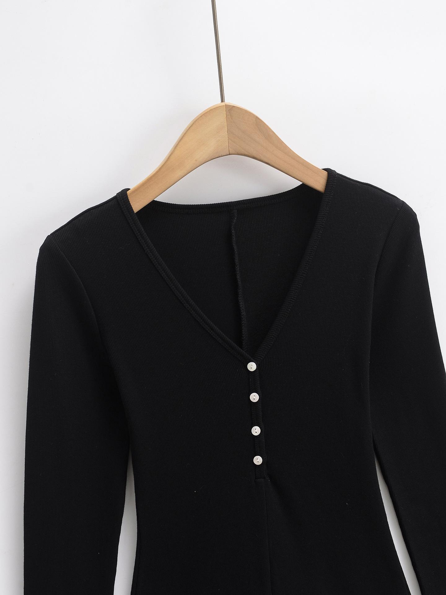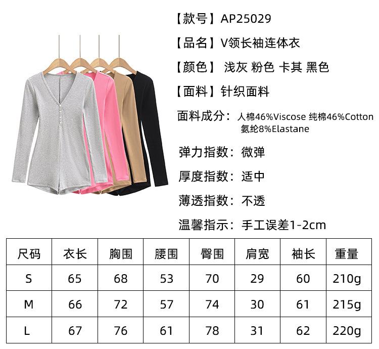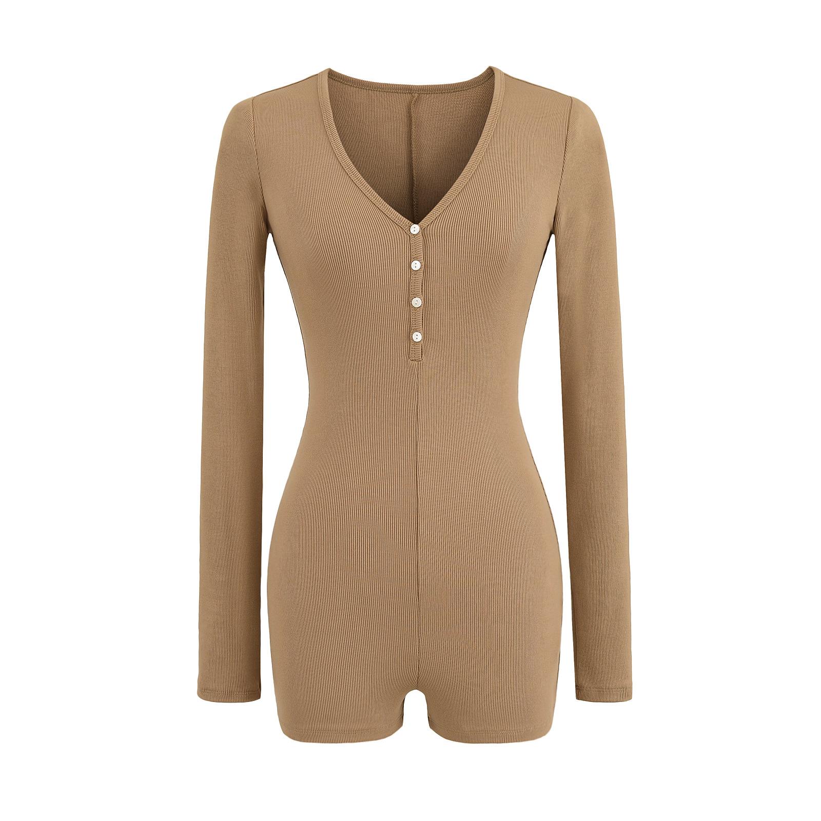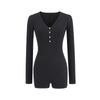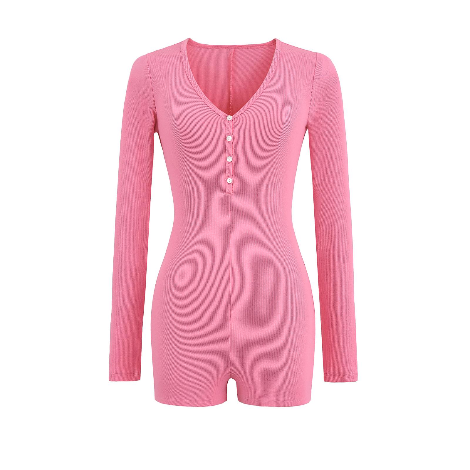 2025 Nuevo Estilo de Verano Estilo Americano Sexy Ajustado Delgado Cuello en V Decorado con Botones Mono de Manga Larga