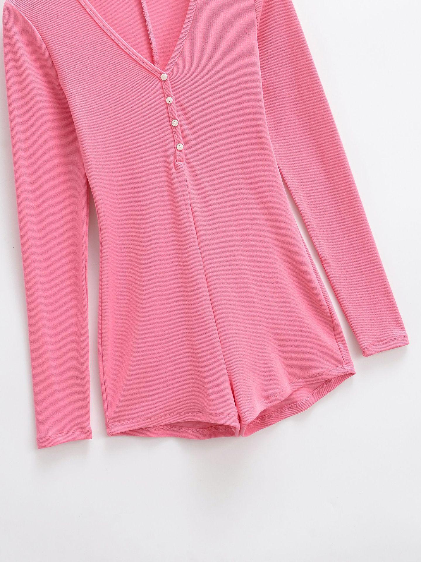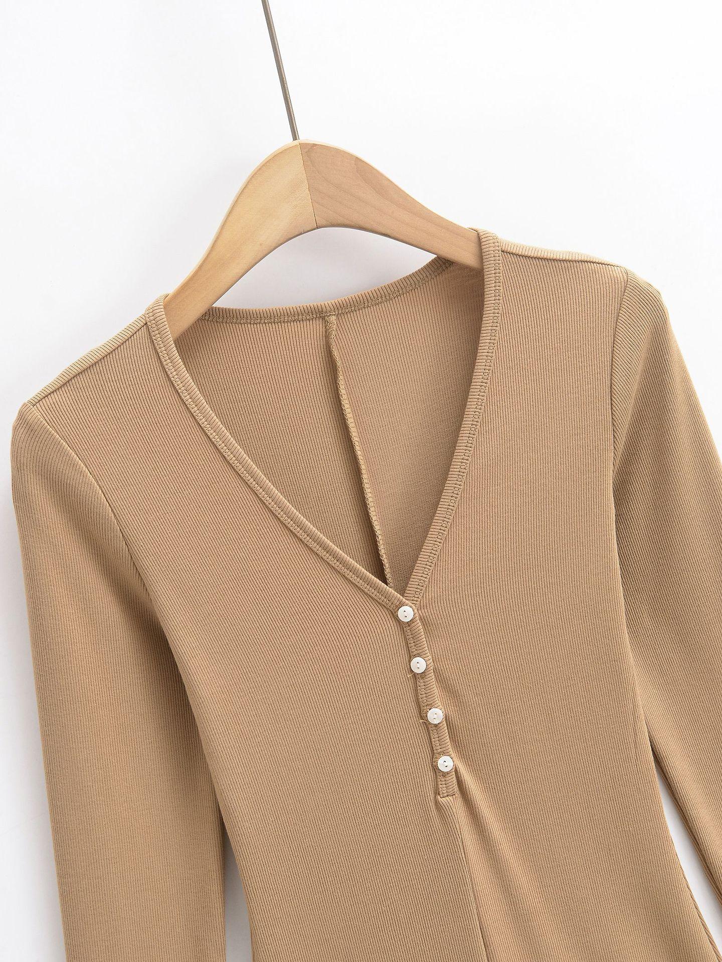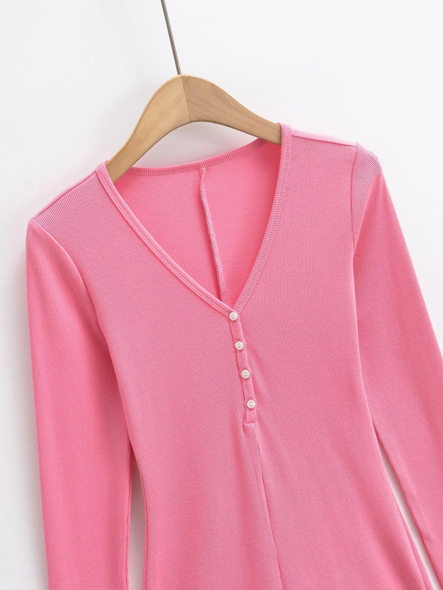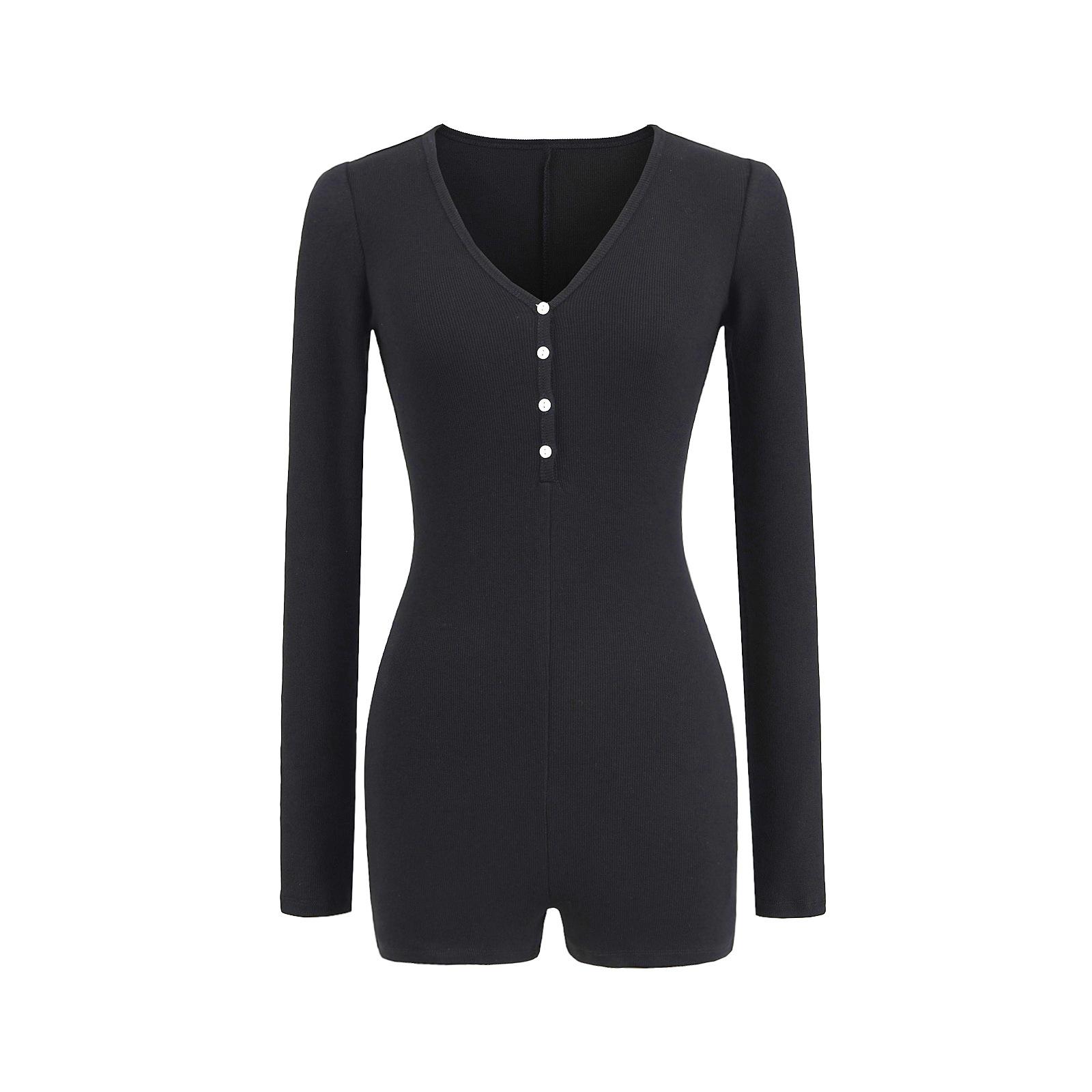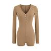 2025 Nuevo Estilo de Verano Estilo Americano Sexy Ajustado Delgado Cuello en V Decorado con Botones Mono de Manga Larga