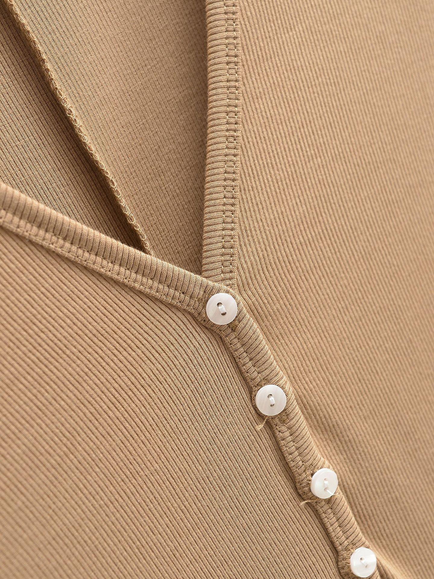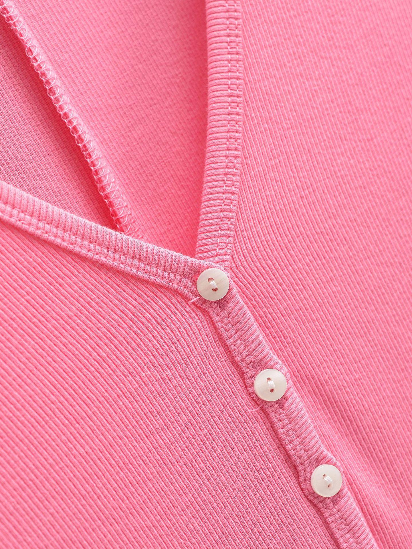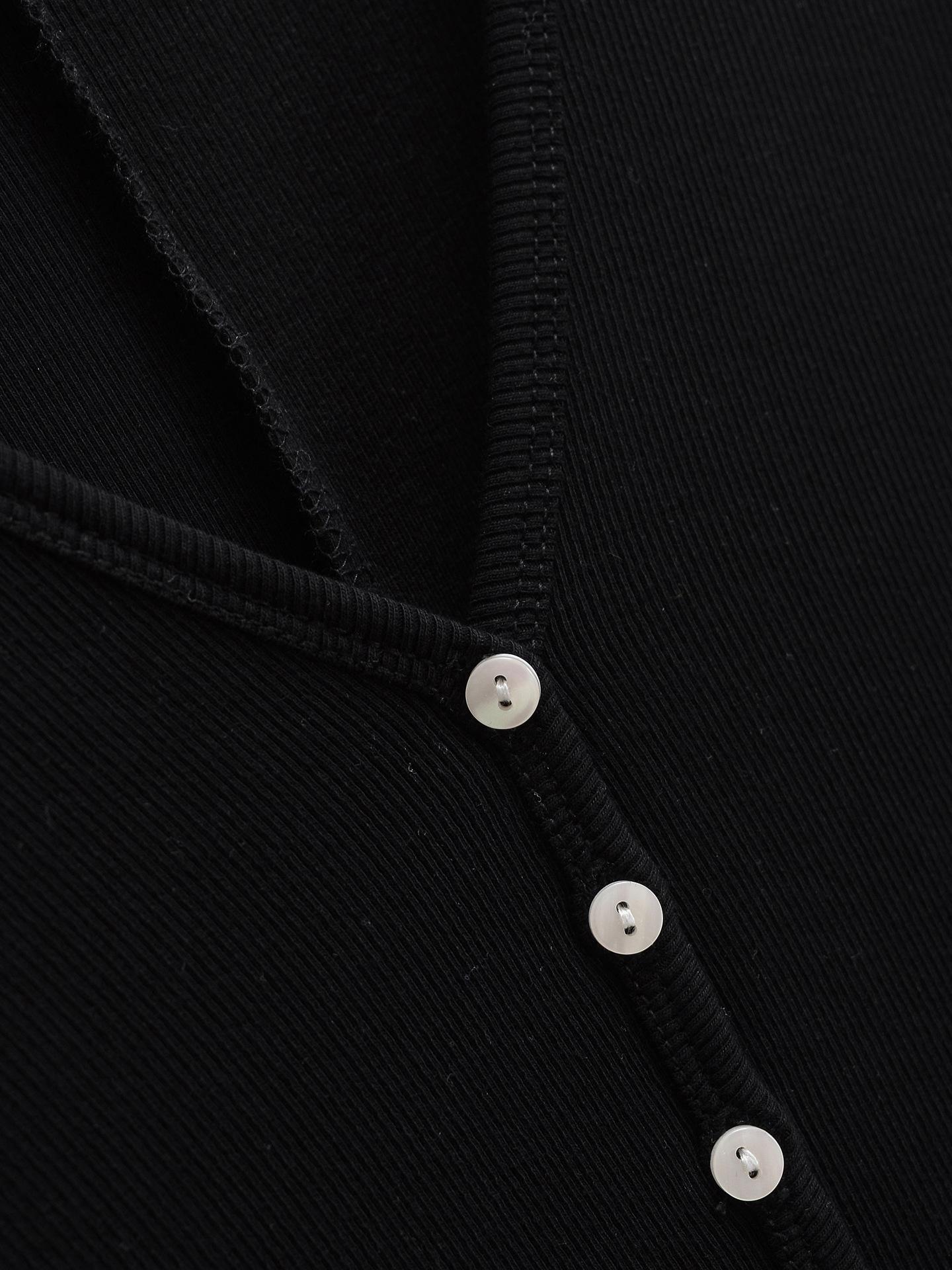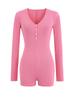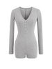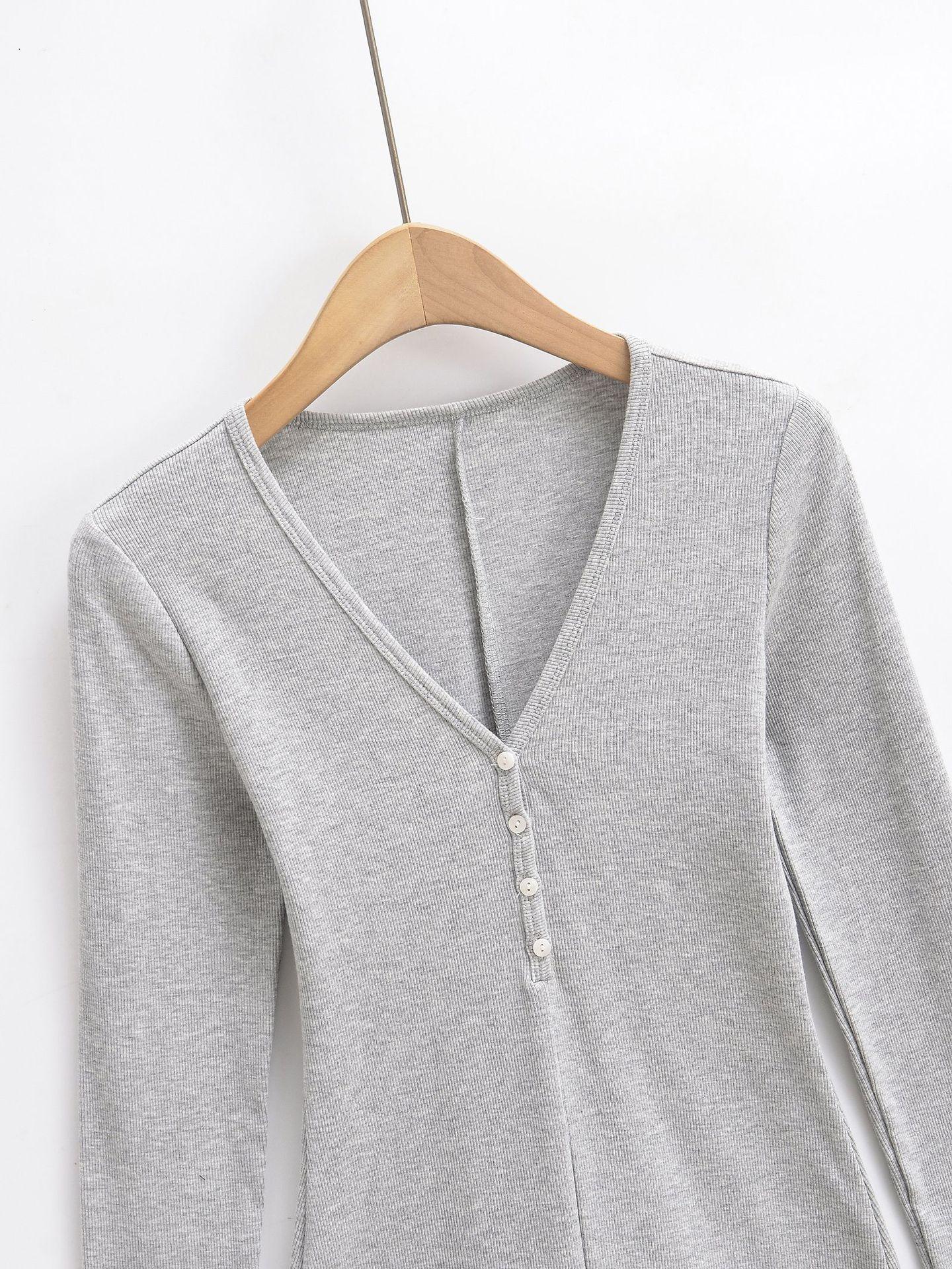 2025 Nuevo Estilo de Verano Estilo Americano Sexy Ajustado Delgado Cuello en V Decorado con Botones Mono de Manga Larga