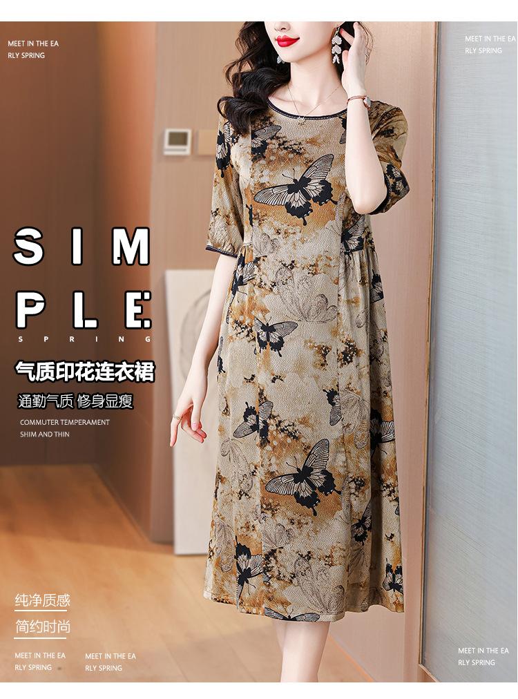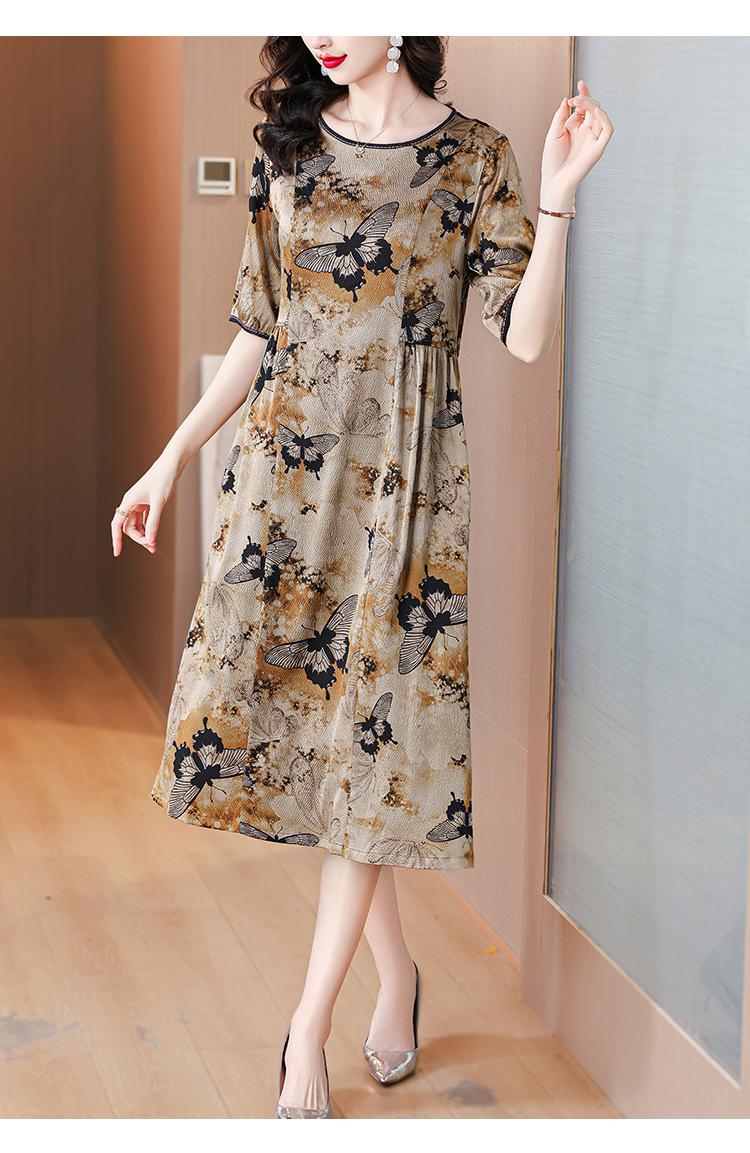 Vestido de seda de alta calidad de talla grande para cubrir el vientre Verano suave Cintura adelgazante para madre Seda de morera Nuevo vestido midi