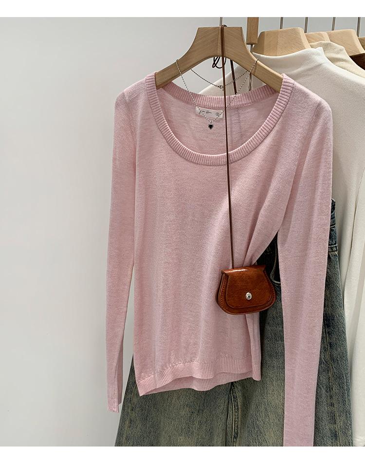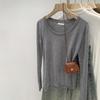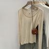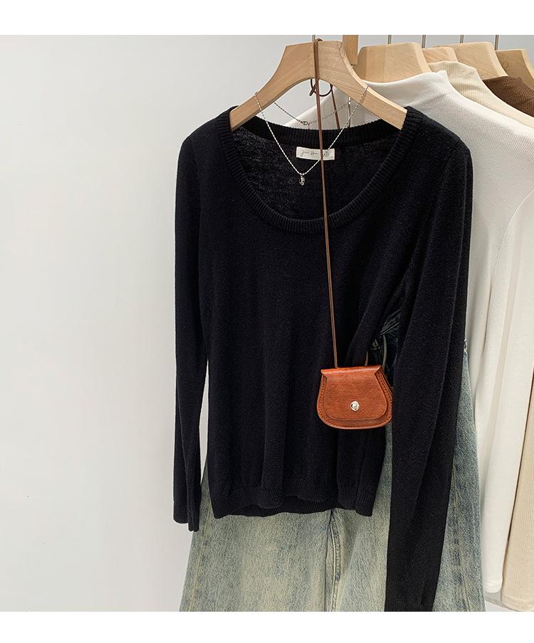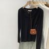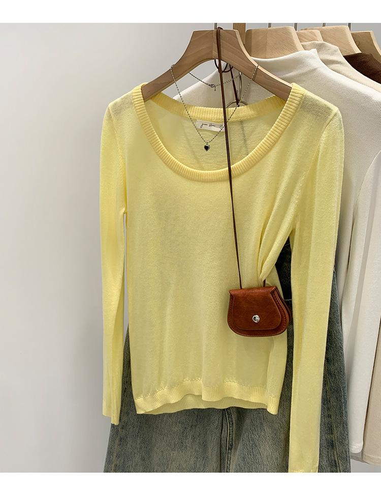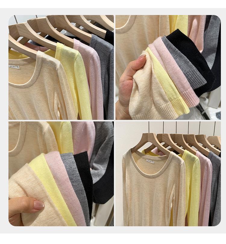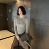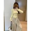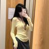 Cosas buenas estilo coreano 2025 nuevo otoño temprano amarillo cuello bajo manga larga base interior suéter de punto ropa de mujer top bonito