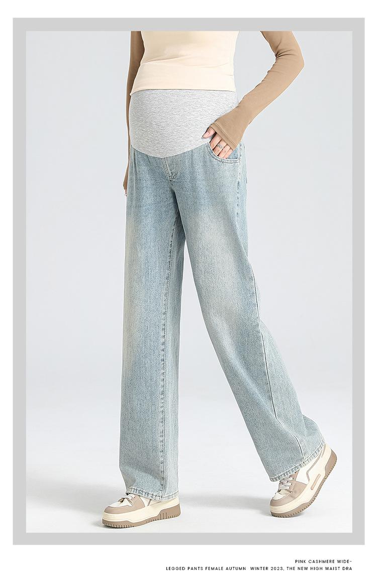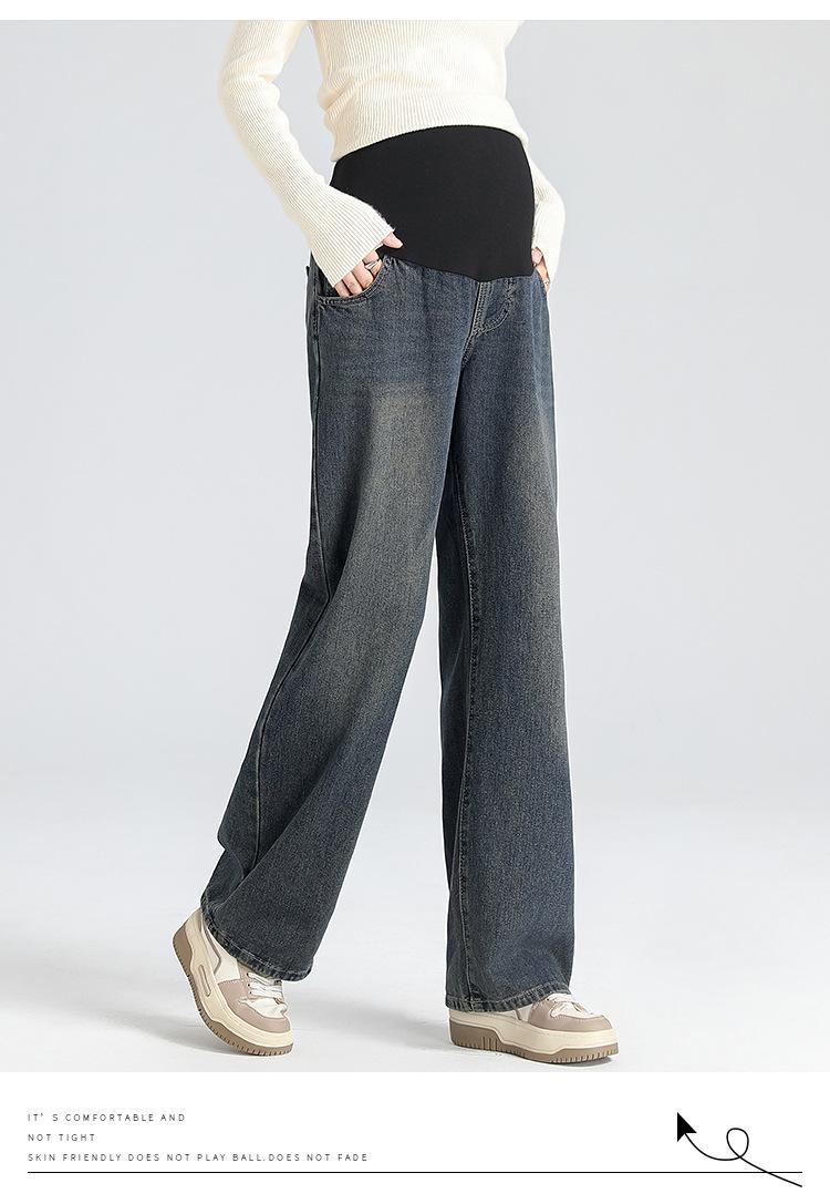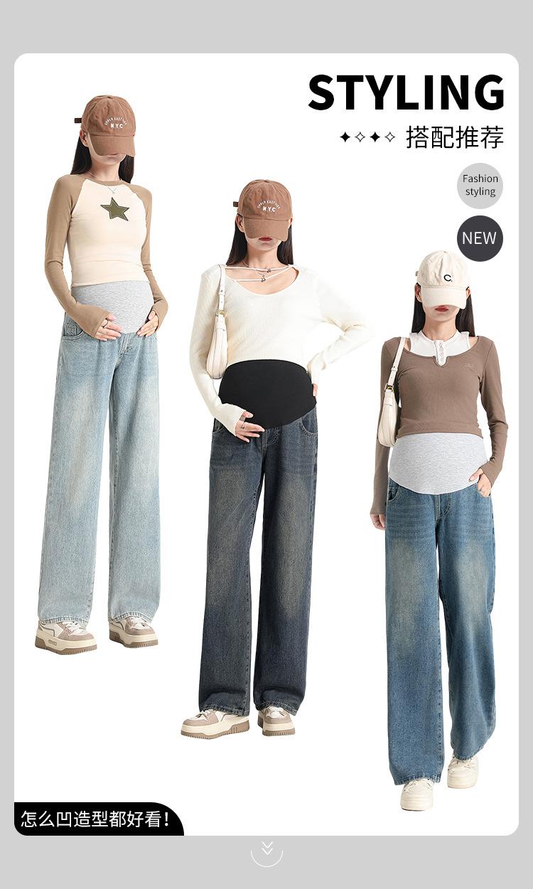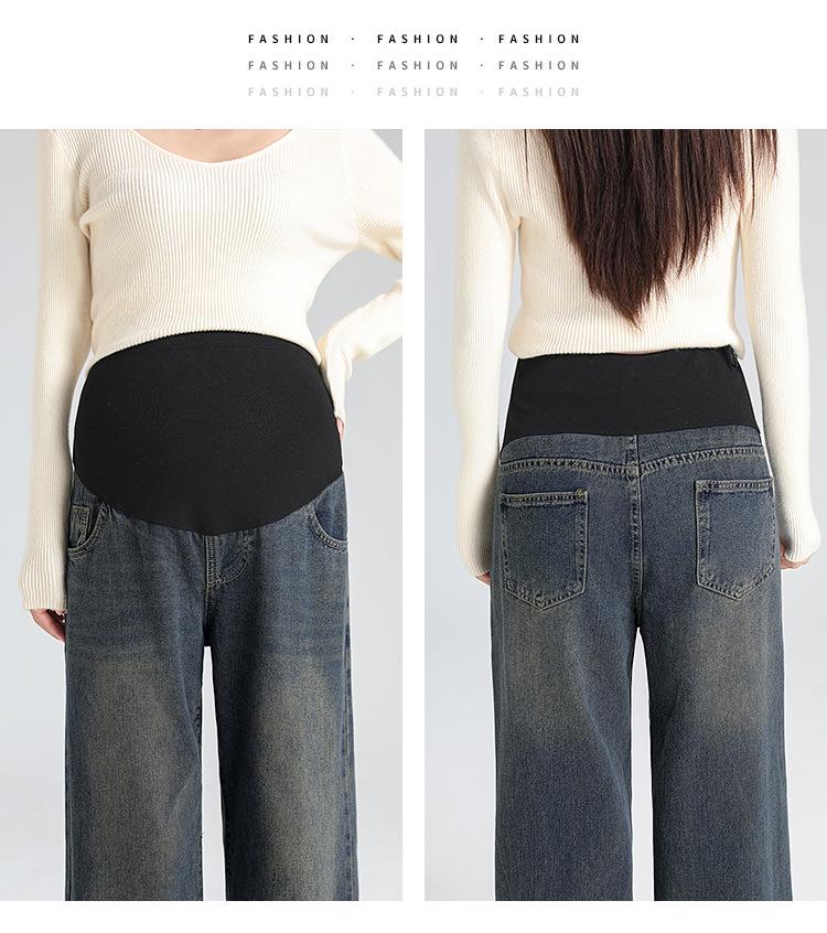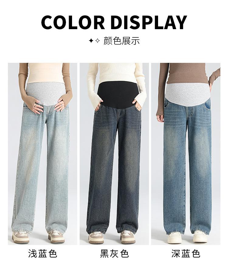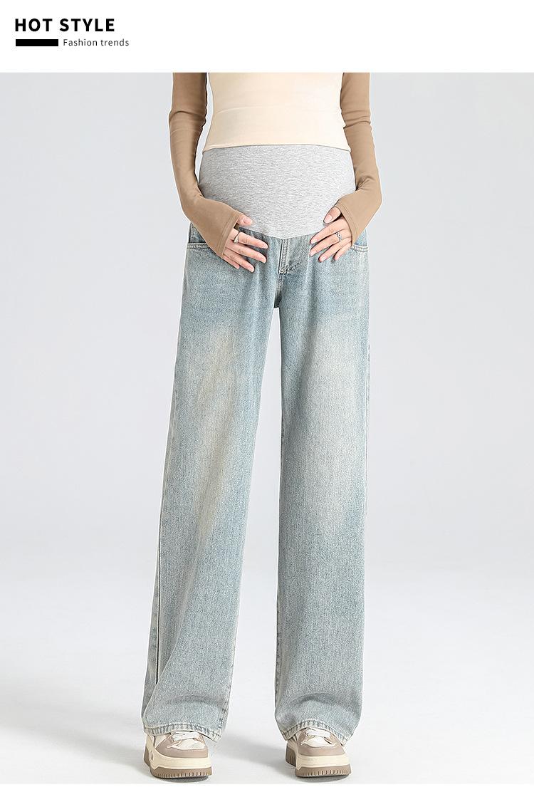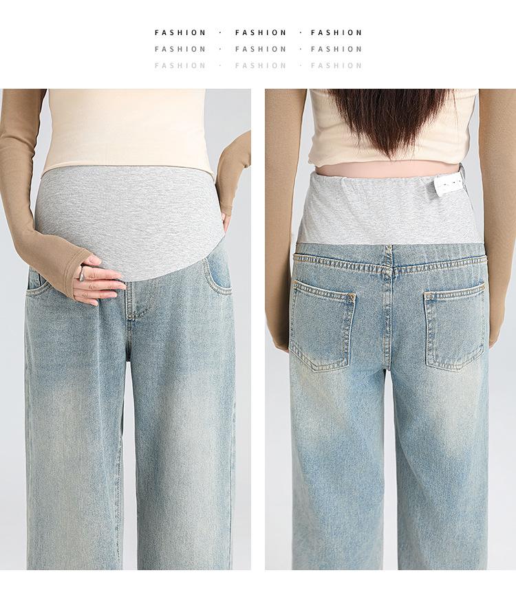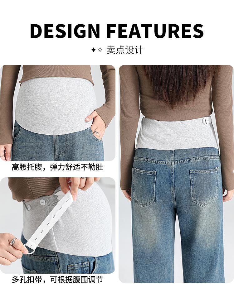 Pantalones de Maternidad 2025 Primavera Nuevo Estilo Completamente Hilos Jeans de Soporte para el Vientre de Maternidad Protector de Cintura Ropa Exterior Pantalones Holgados de Pierna Ancha