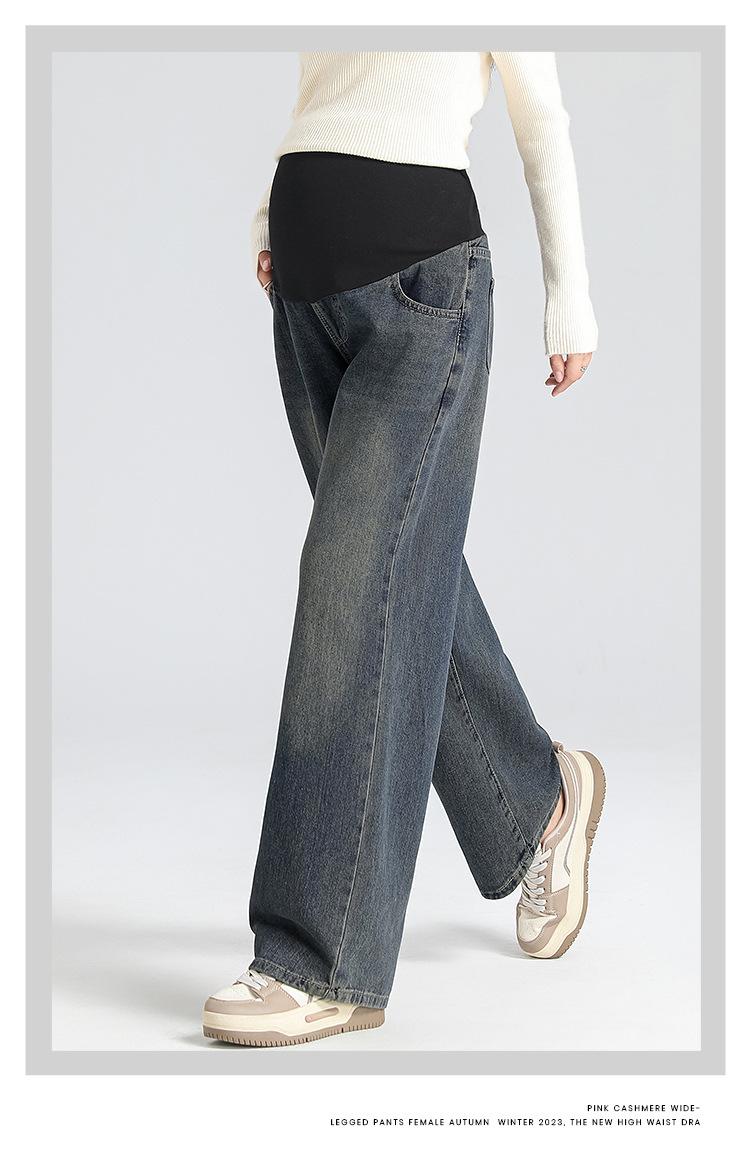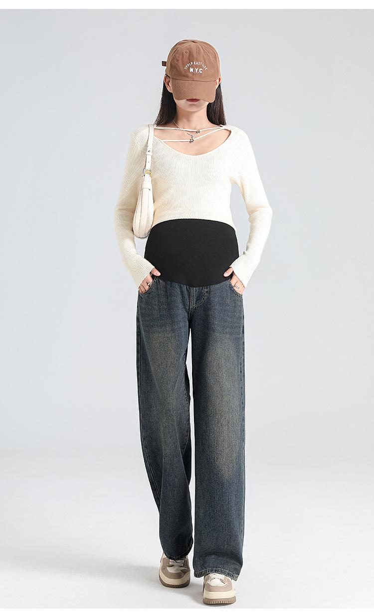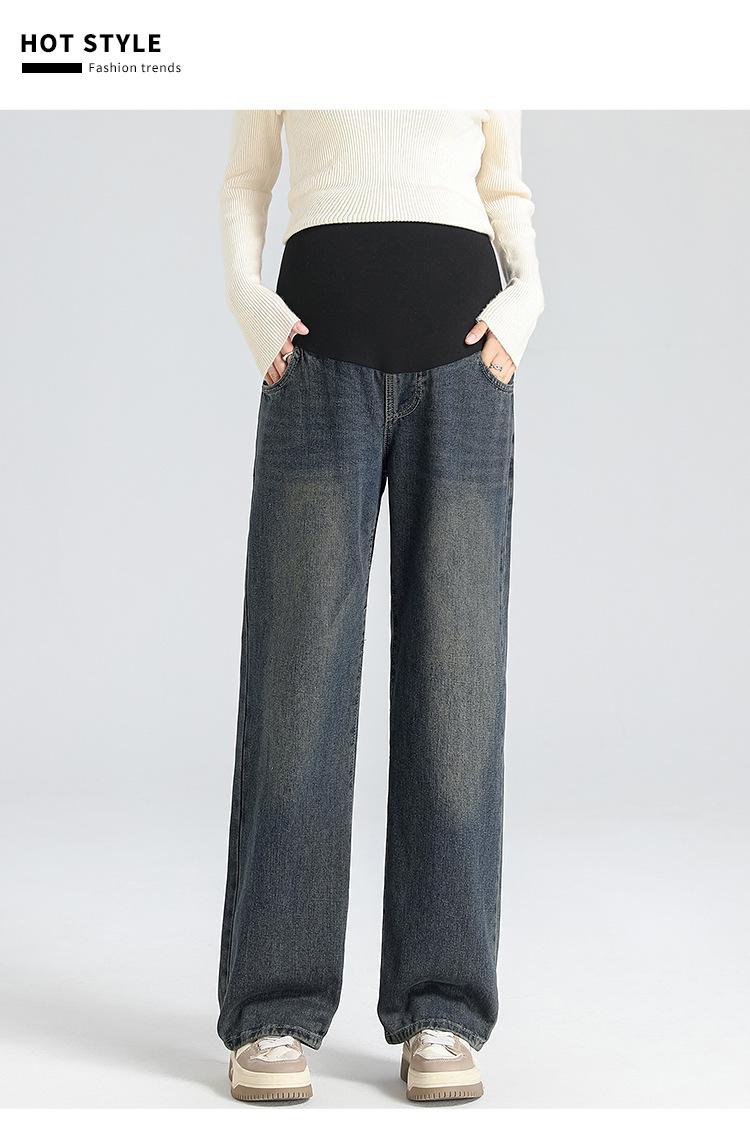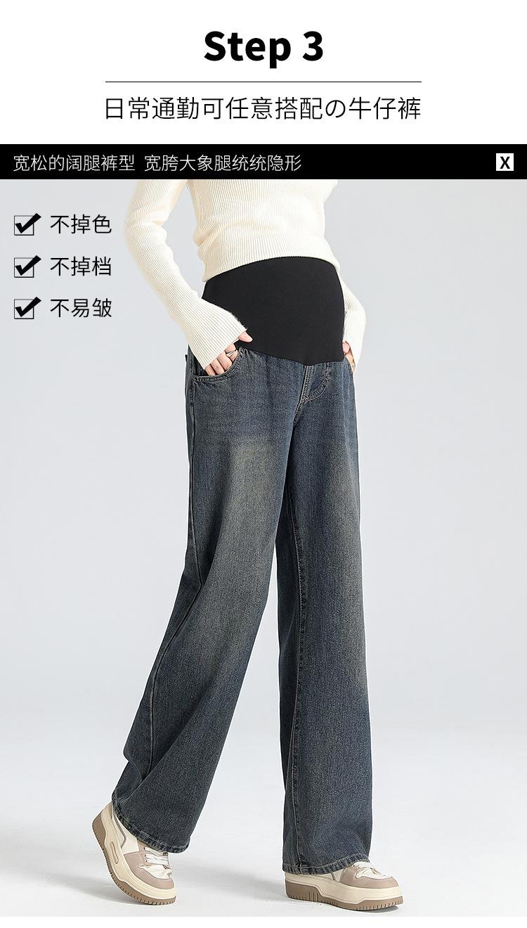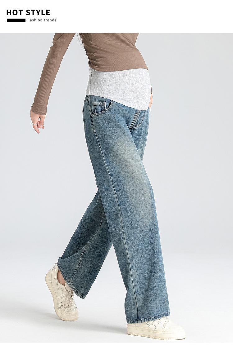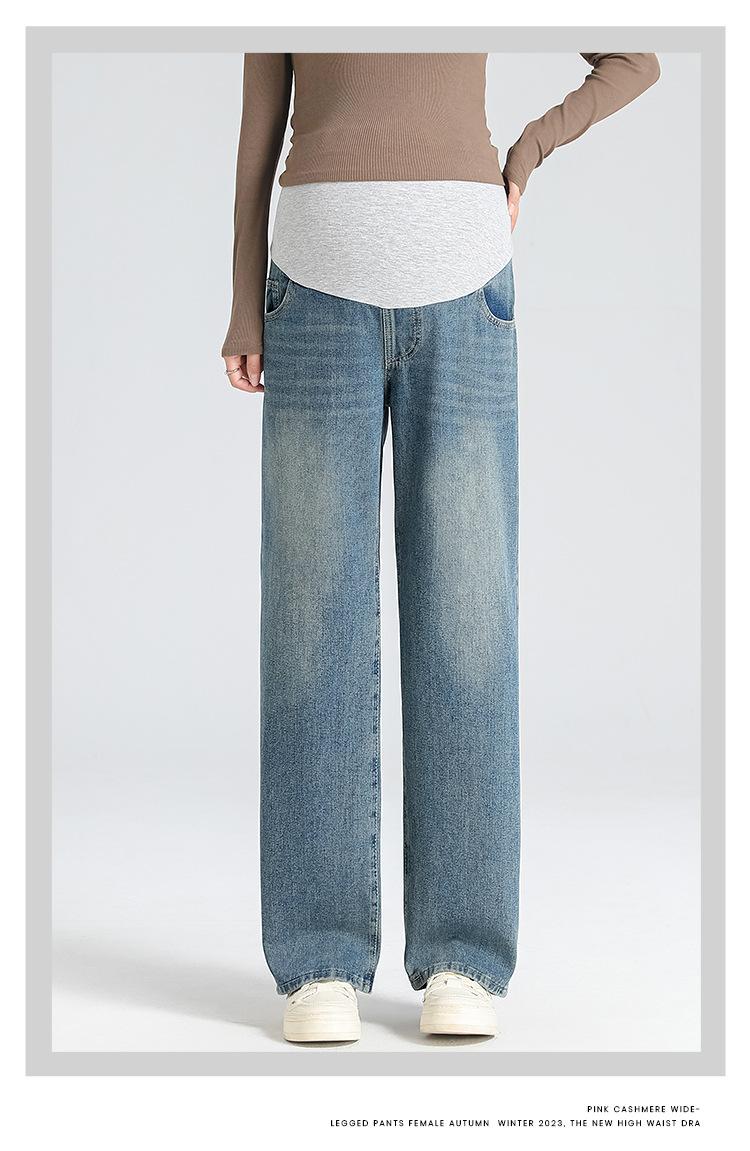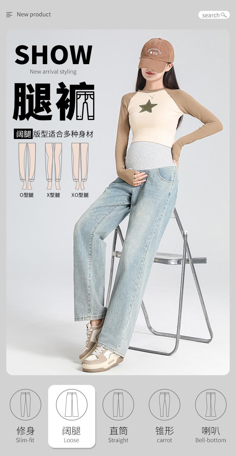 Pantalones de Maternidad 2025 Primavera Nuevo Estilo Completamente Hilos Jeans de Soporte para el Vientre de Maternidad Protector de Cintura Ropa Exterior Pantalones Holgados de Pierna Ancha