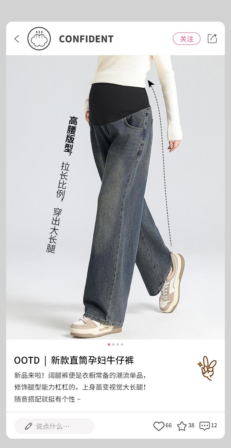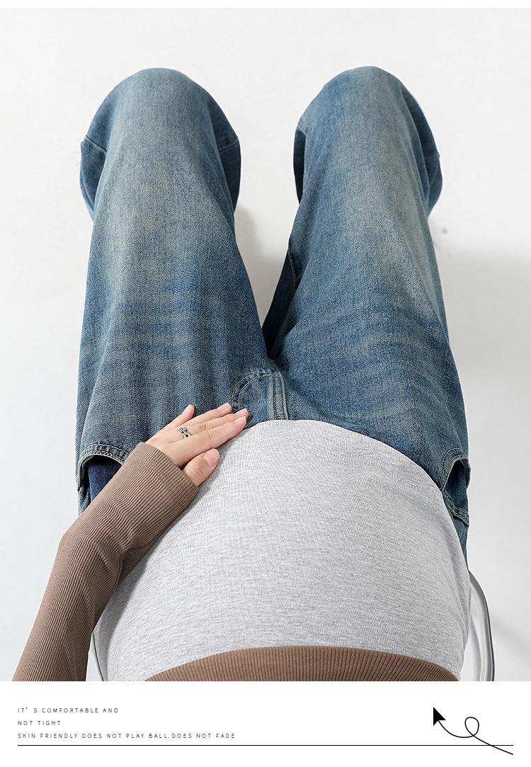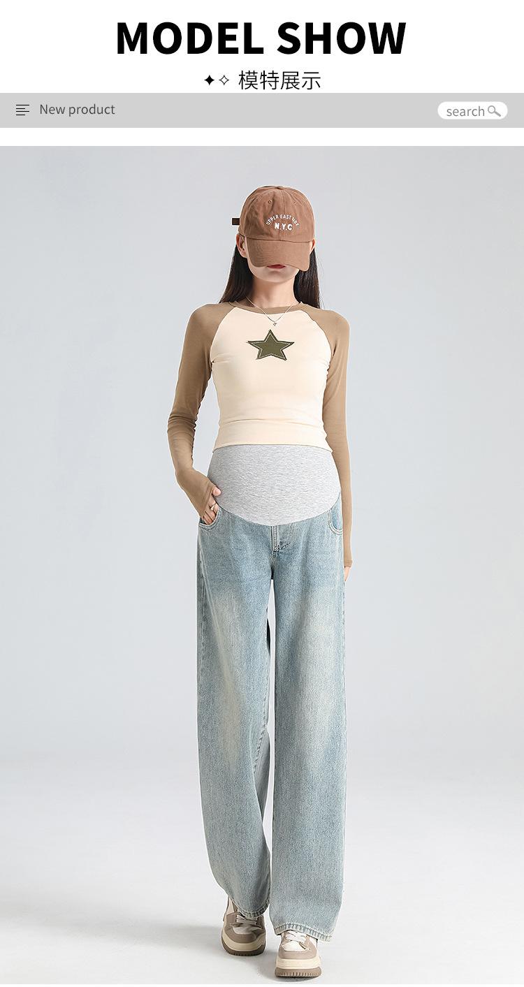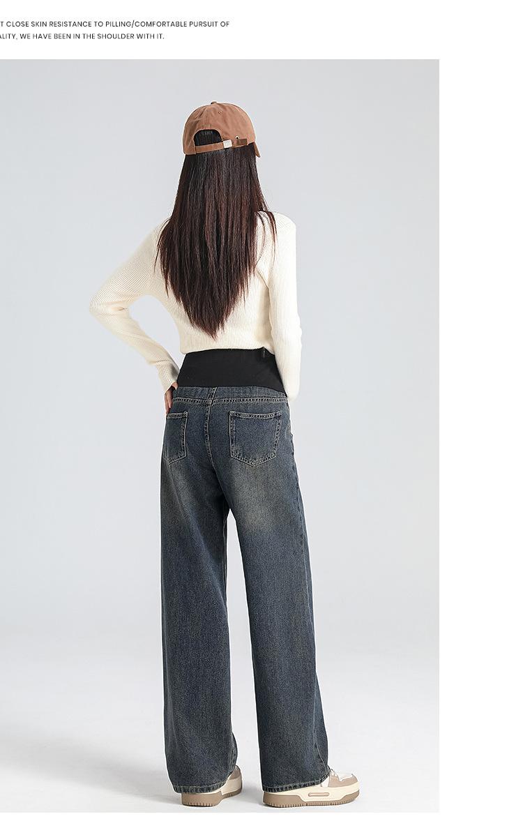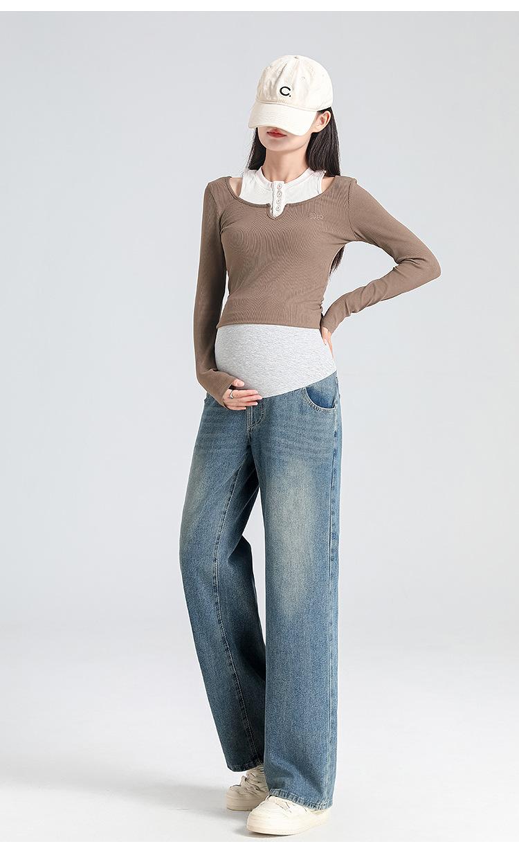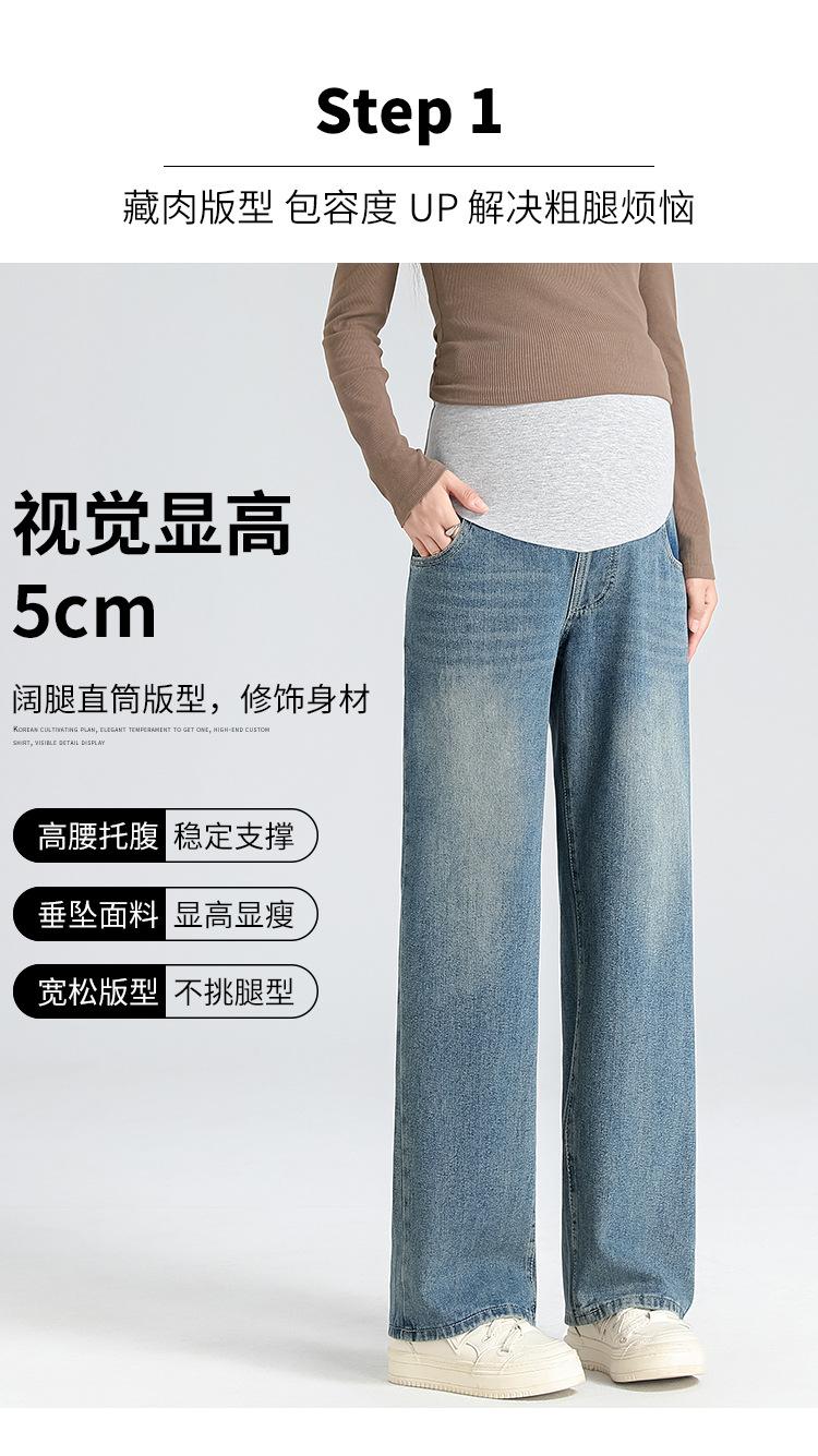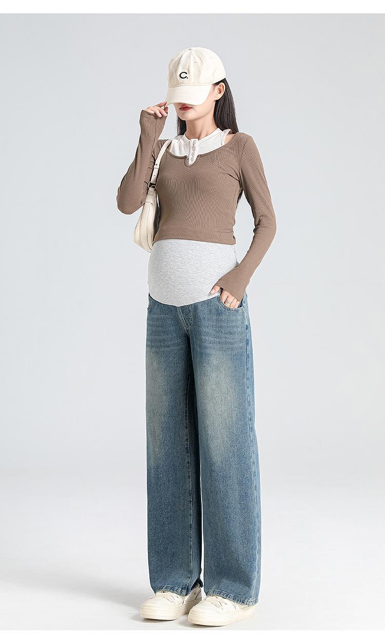Pantalones de Maternidad 2025 Primavera Nuevo Estilo Completamente Hilos Jeans de Soporte para el Vientre de Maternidad Protector de Cintura Ropa Exterior Pantalones Holgados de Pierna Ancha