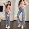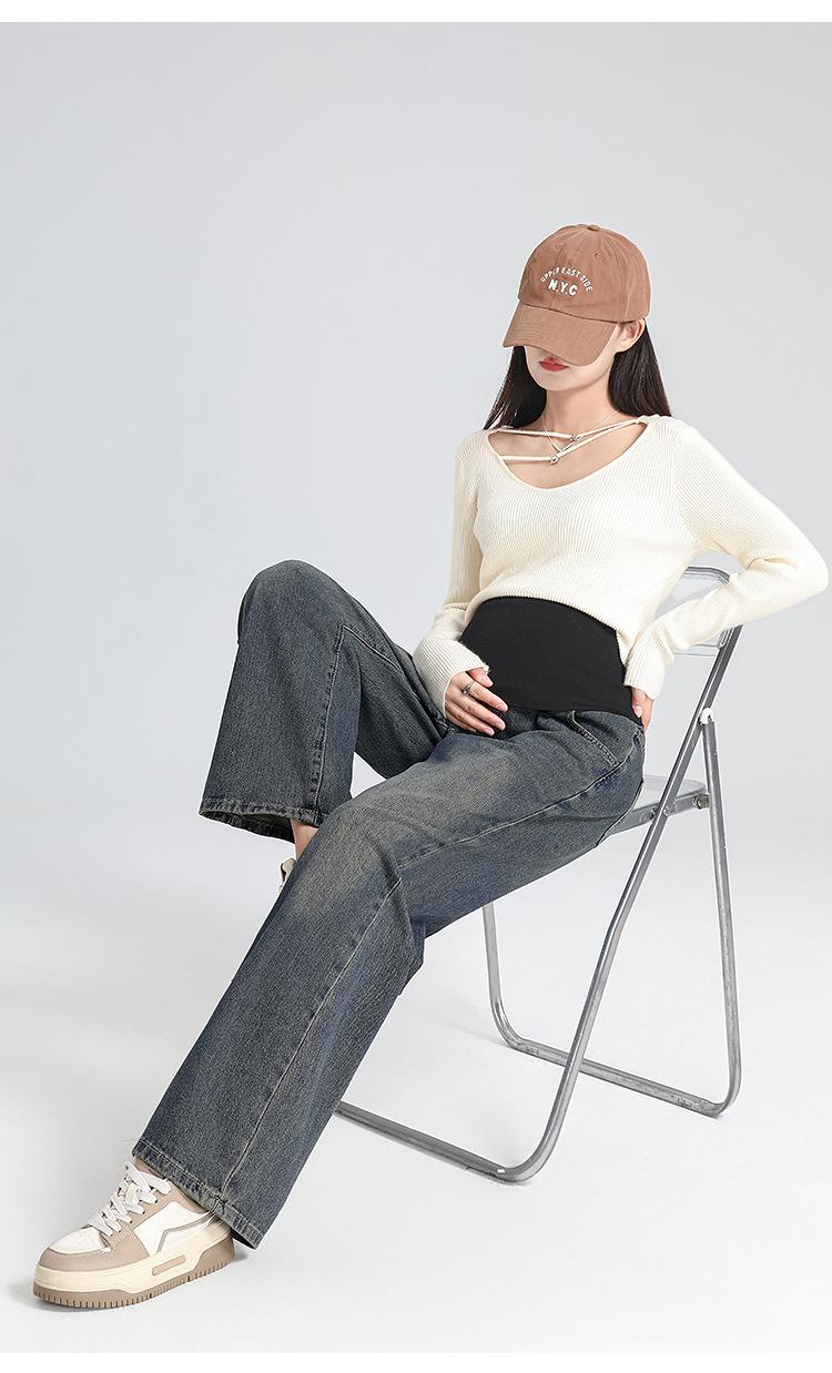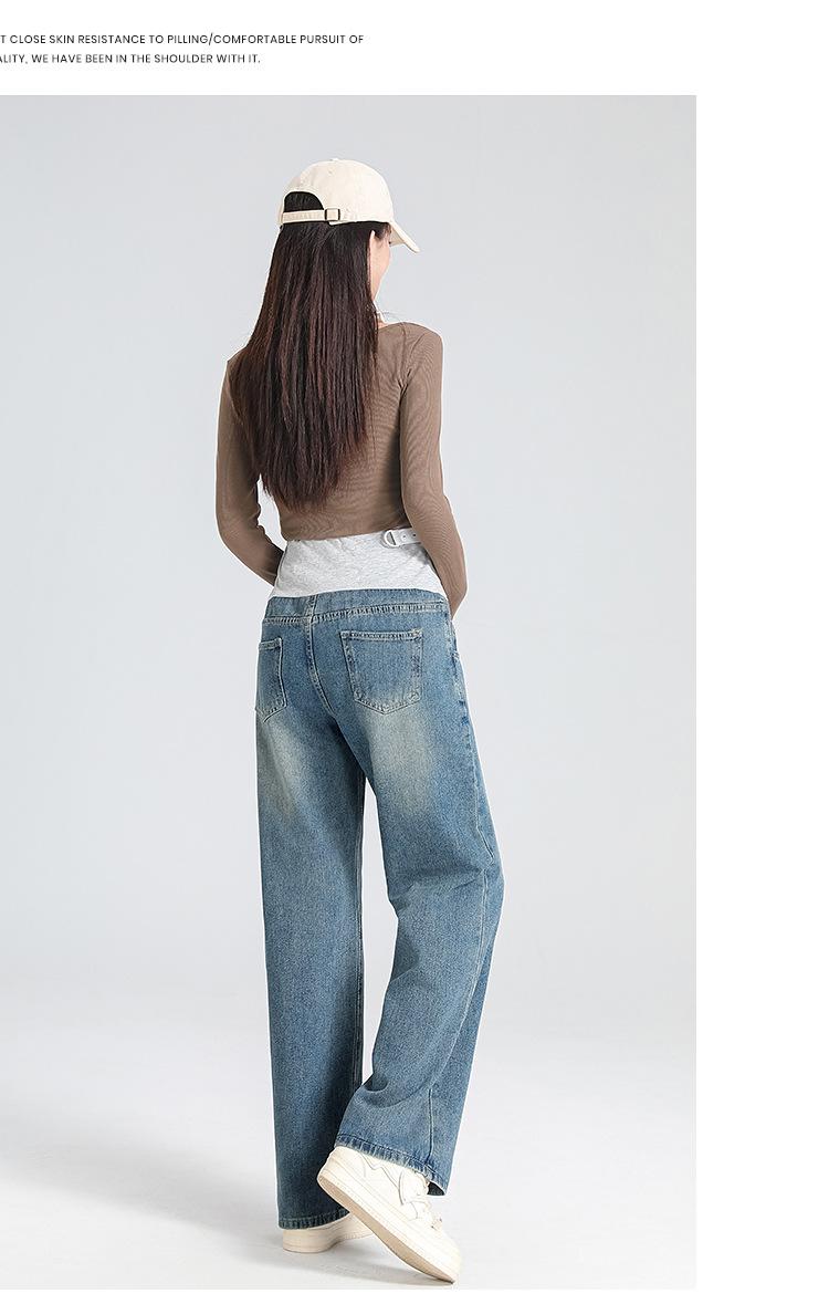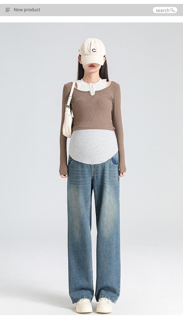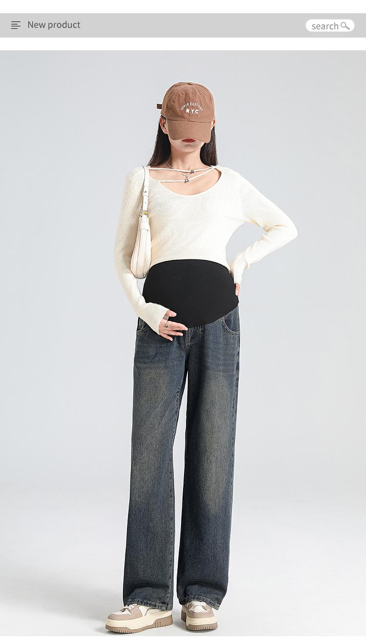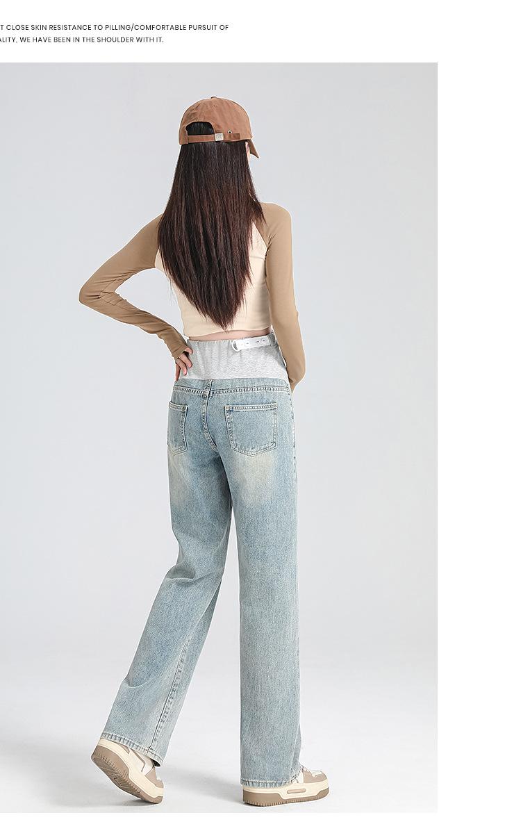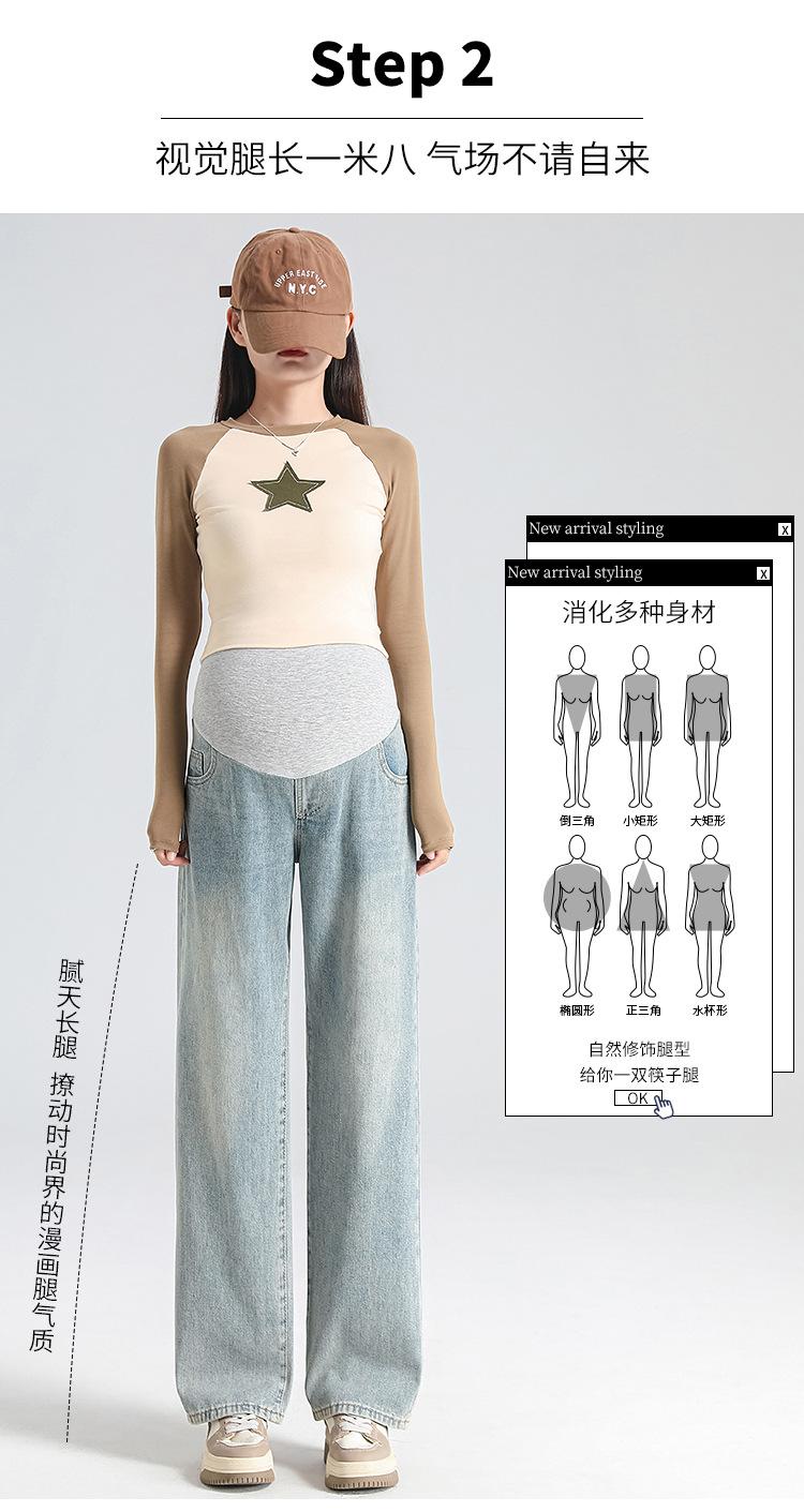 Pantalones de Maternidad 2025 Primavera Nuevo Estilo Completamente Hilos Jeans de Soporte para el Vientre de Maternidad Protector de Cintura Ropa Exterior Pantalones Holgados de Pierna Ancha