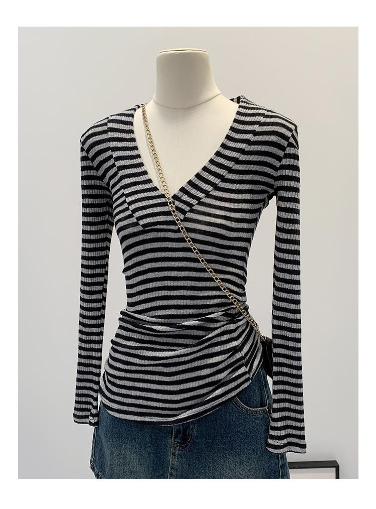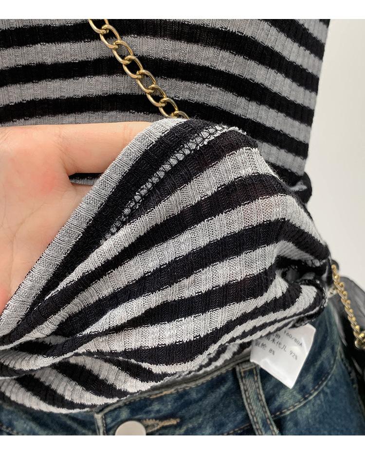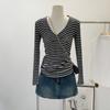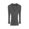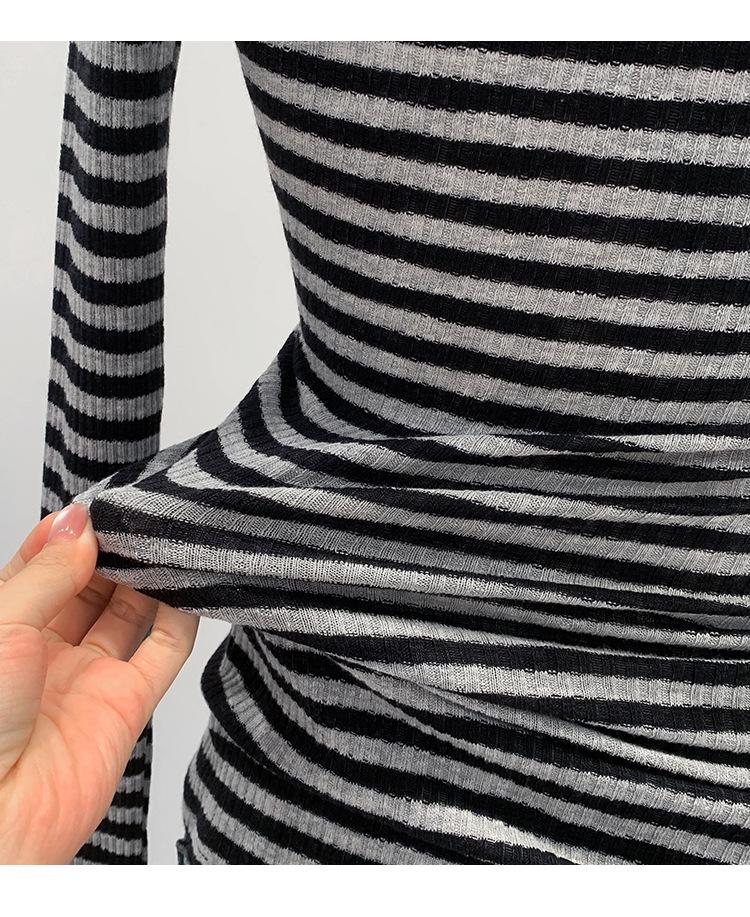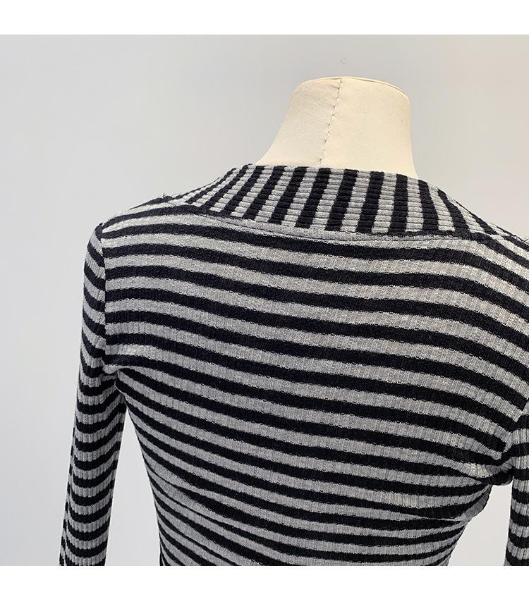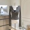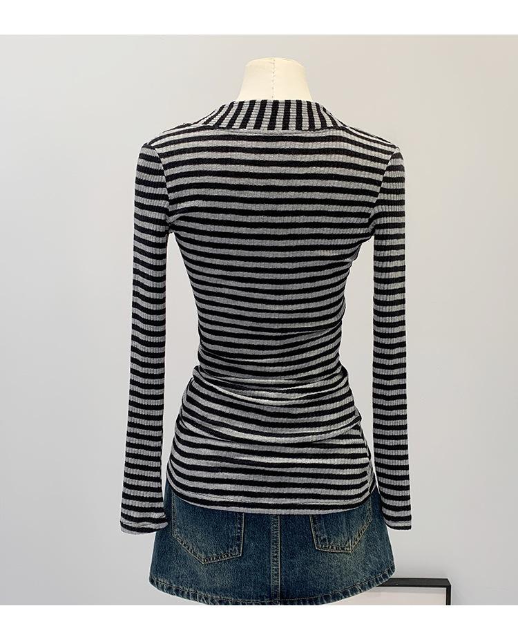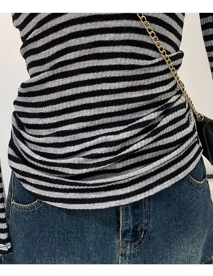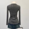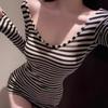Playera Sexy Rayada de Corte Bajo para Chica Top de Mujer Otoño 2025 Nuevo Temperamento Adelgazante Manga Corta Larga Base
