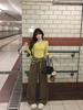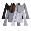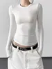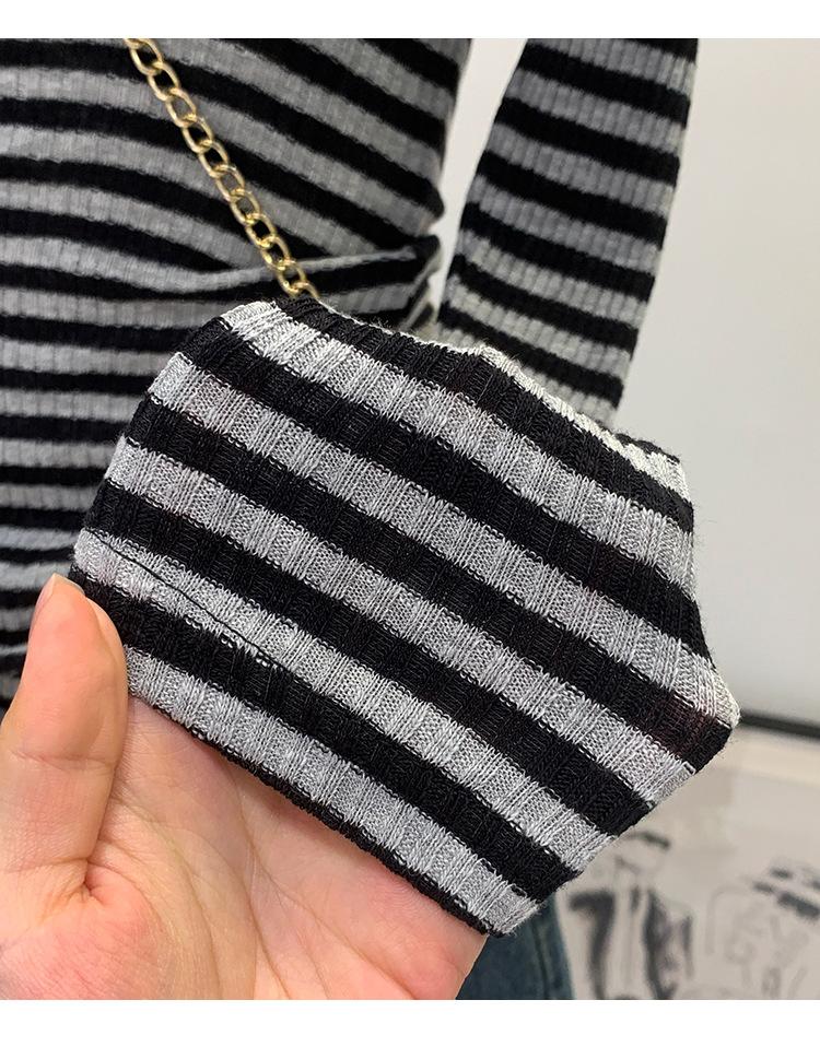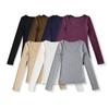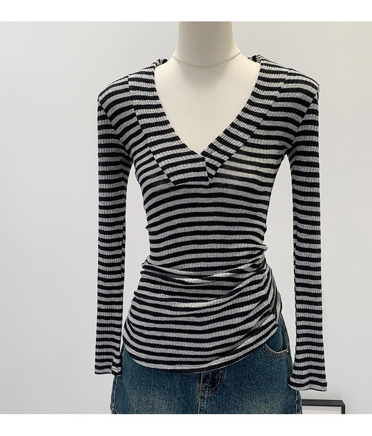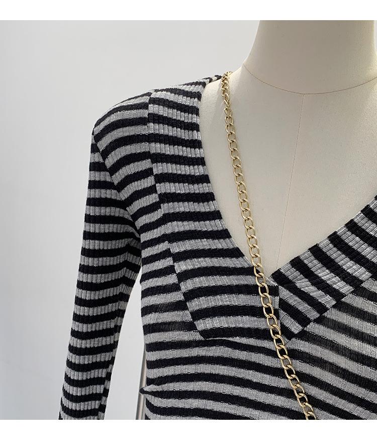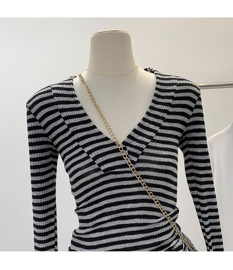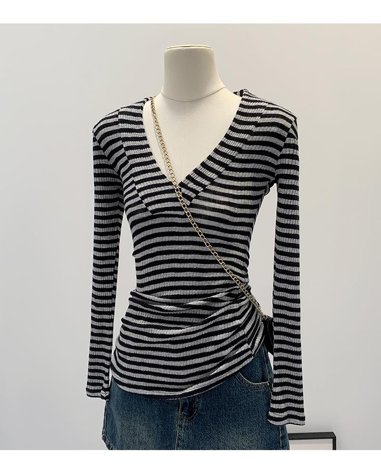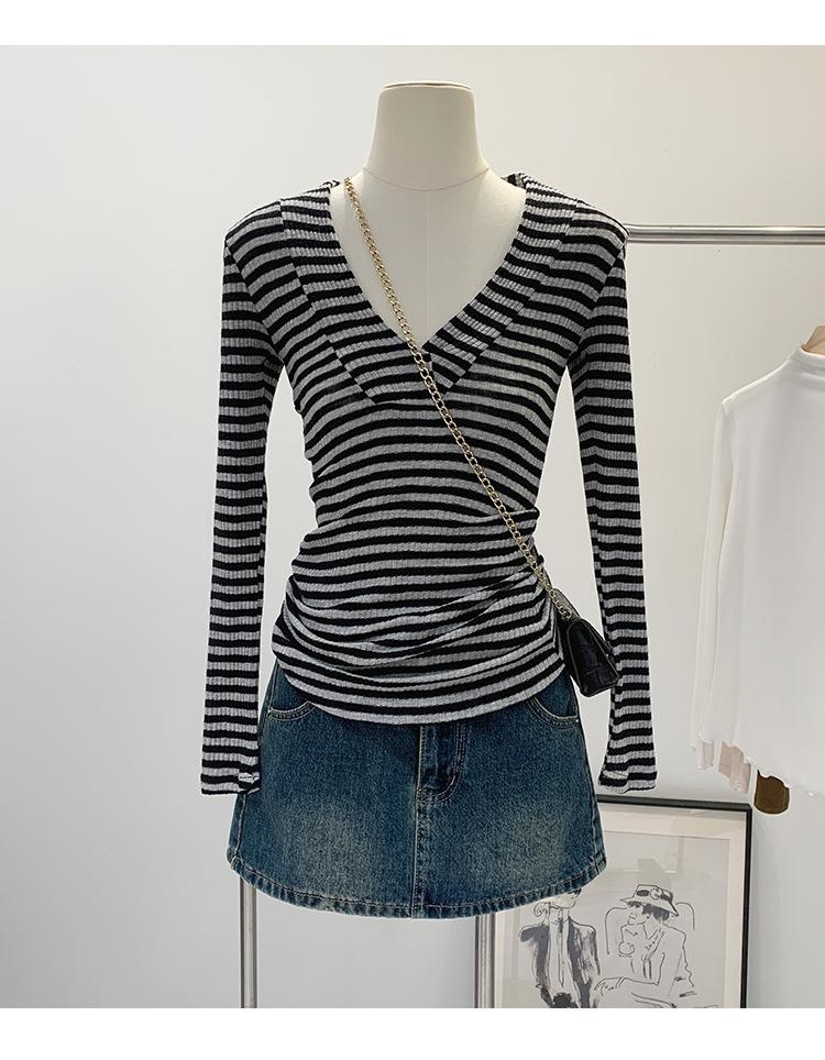 Playera Sexy Rayada de Corte Bajo para Chica Top de Mujer Otoño 2025 Nuevo Temperamento Adelgazante Manga Corta Larga Base