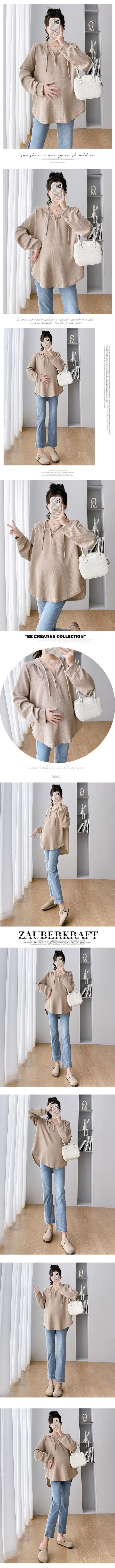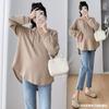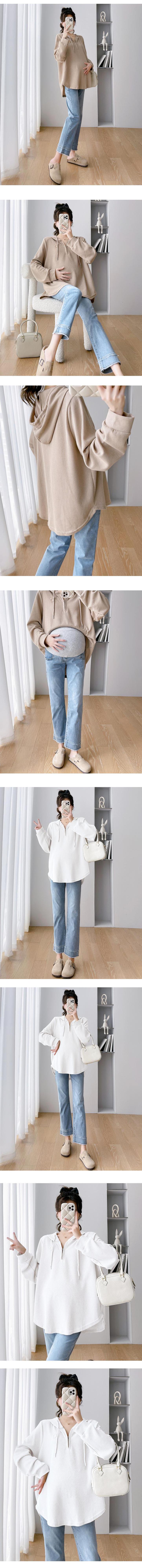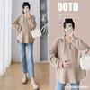 2024 nuevo suéter casual de punto gofrado bordado con capucha y media cremallera para maternidad, estilo coreano, de manga larga