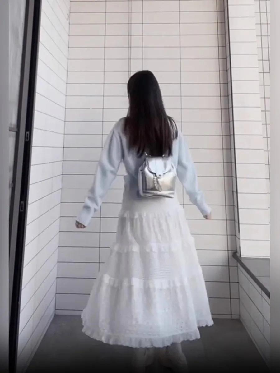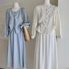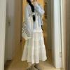 Sky blue cardigan lace suspender skirt [three pieces]]
