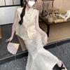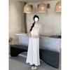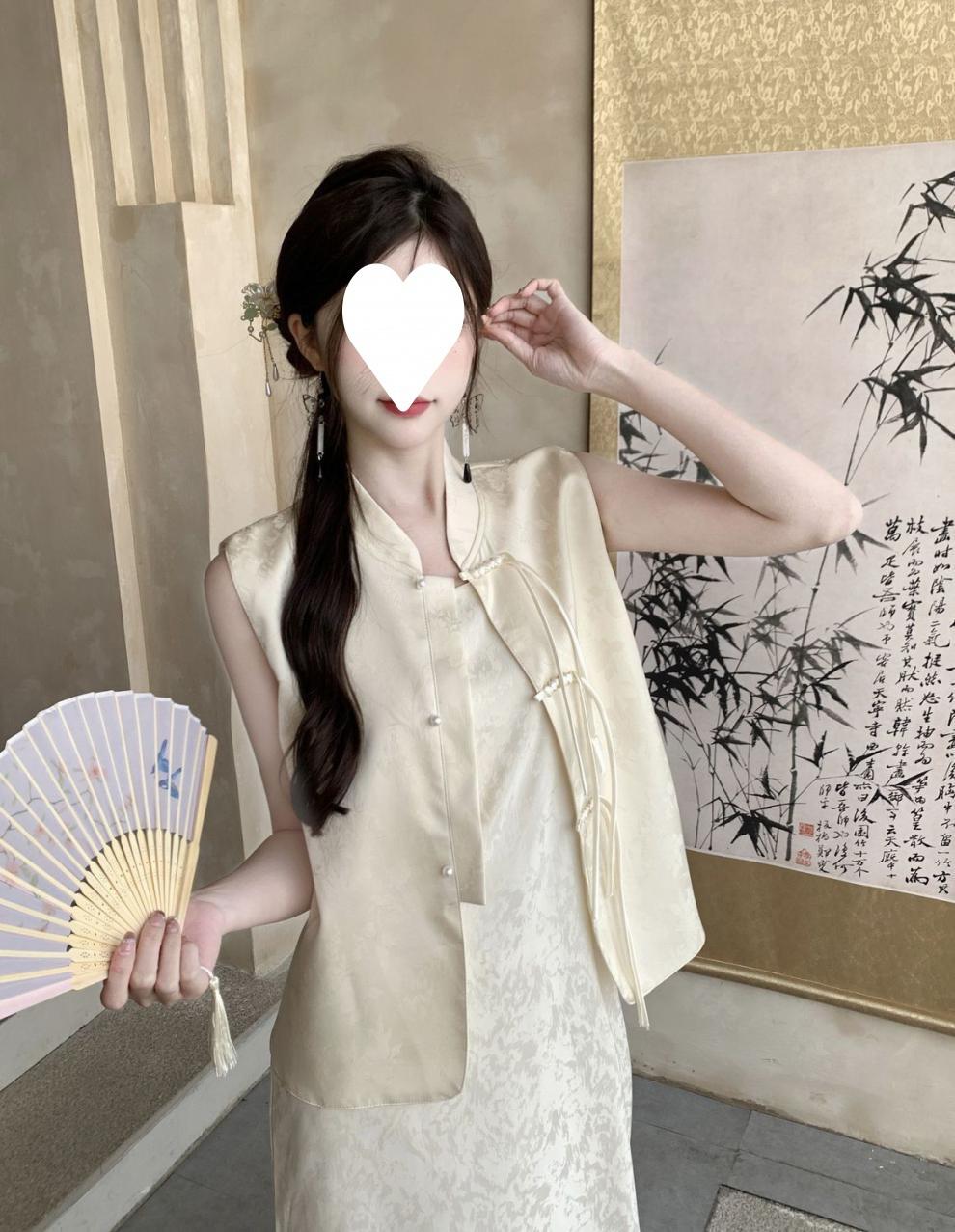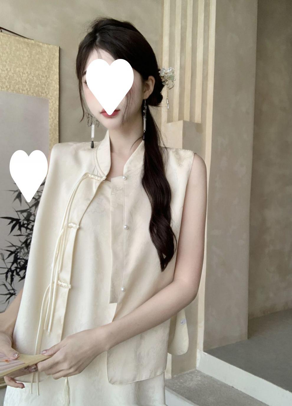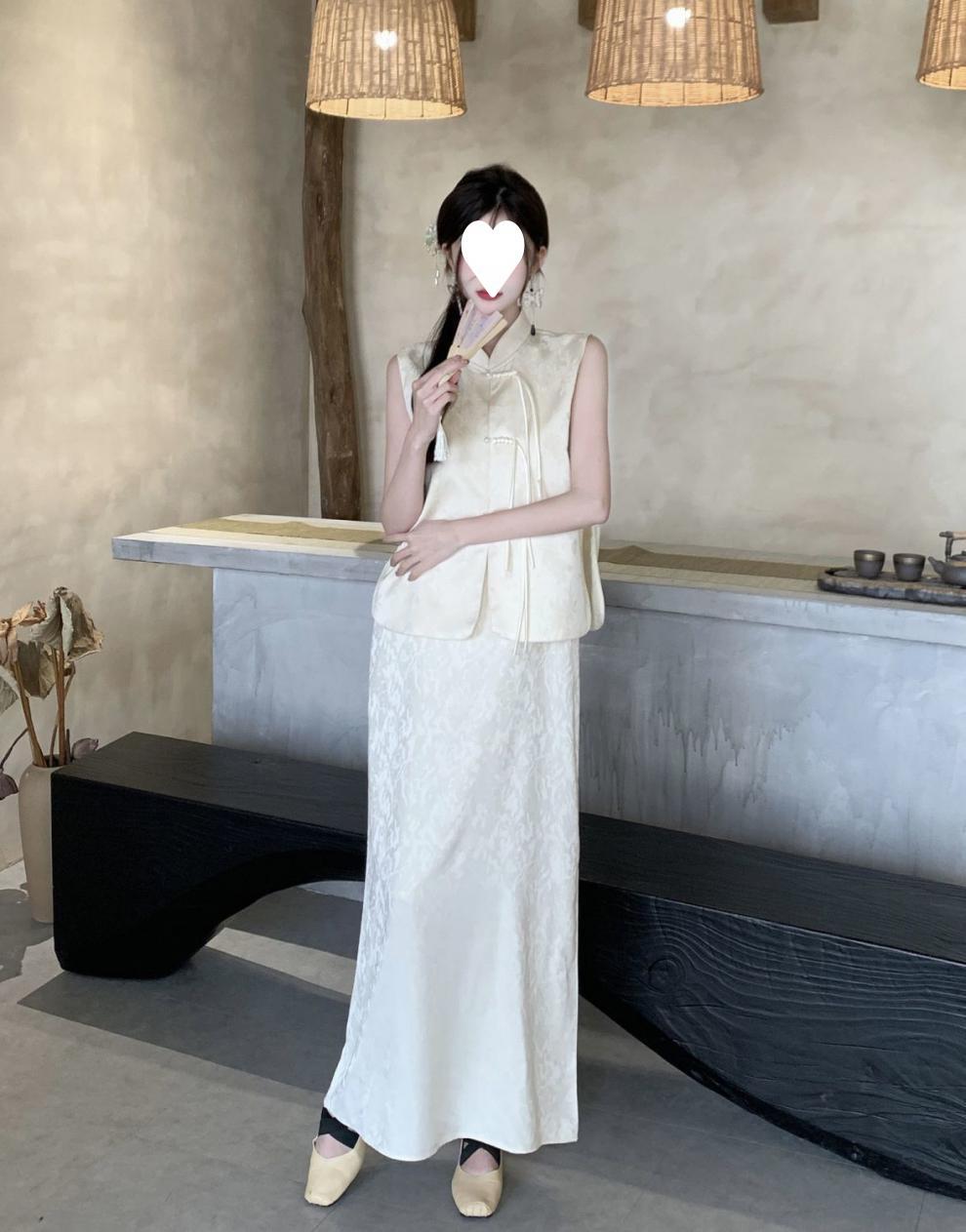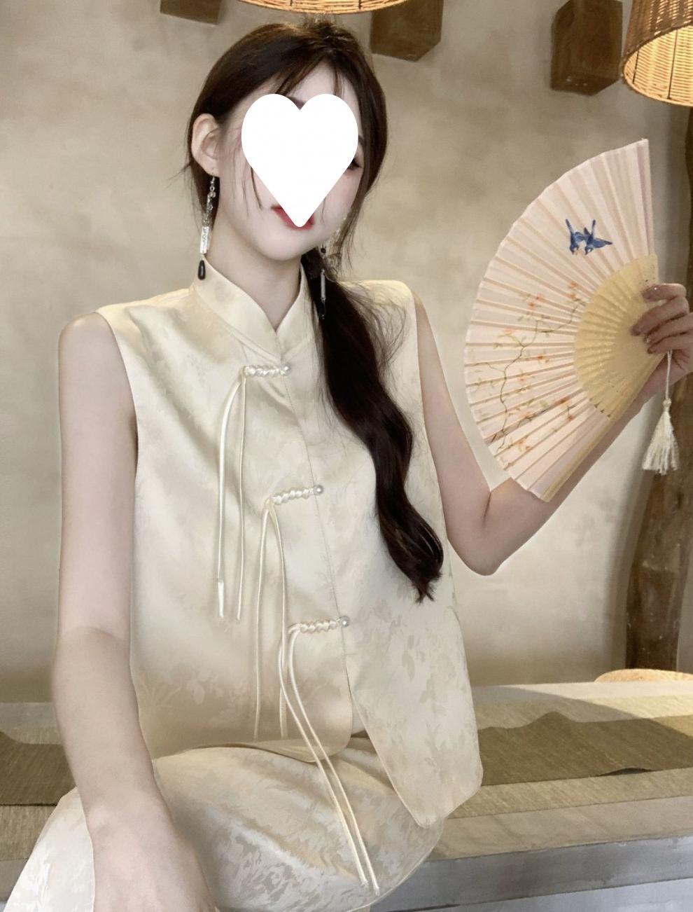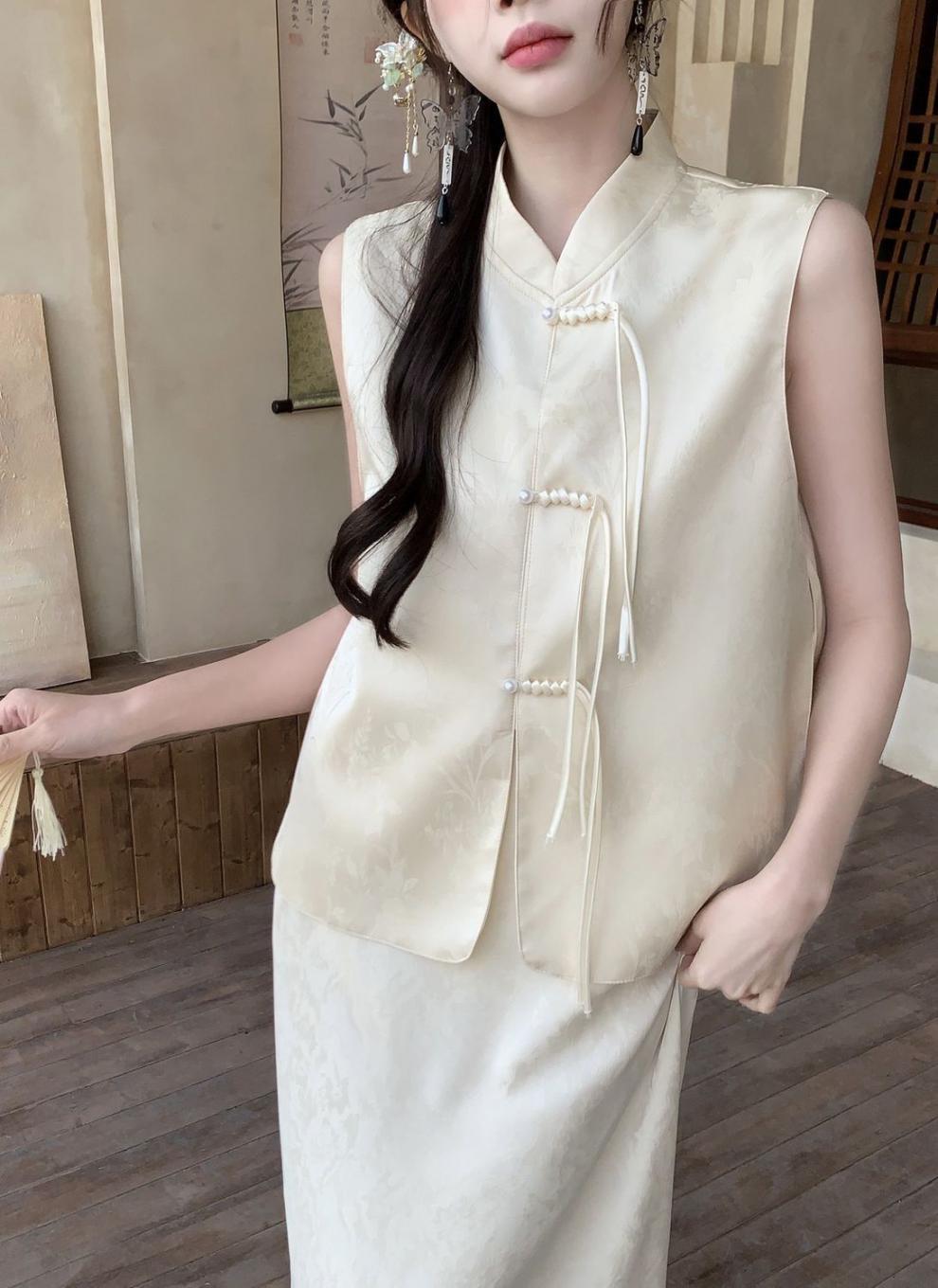 Nuevo Set de Estilo Nacional de Estilo Chino para Mujer Chaleco Chaleco con Cuello de Hebilla Vestido Elegante con Tirantes Conjunto de Dos Piezas a la Moda Verano