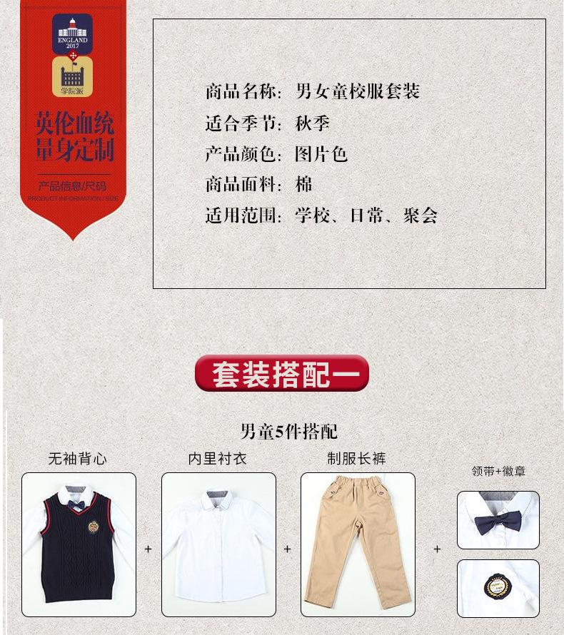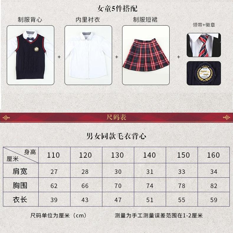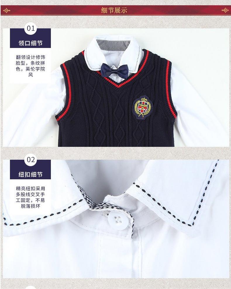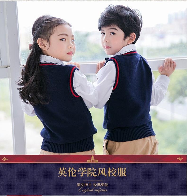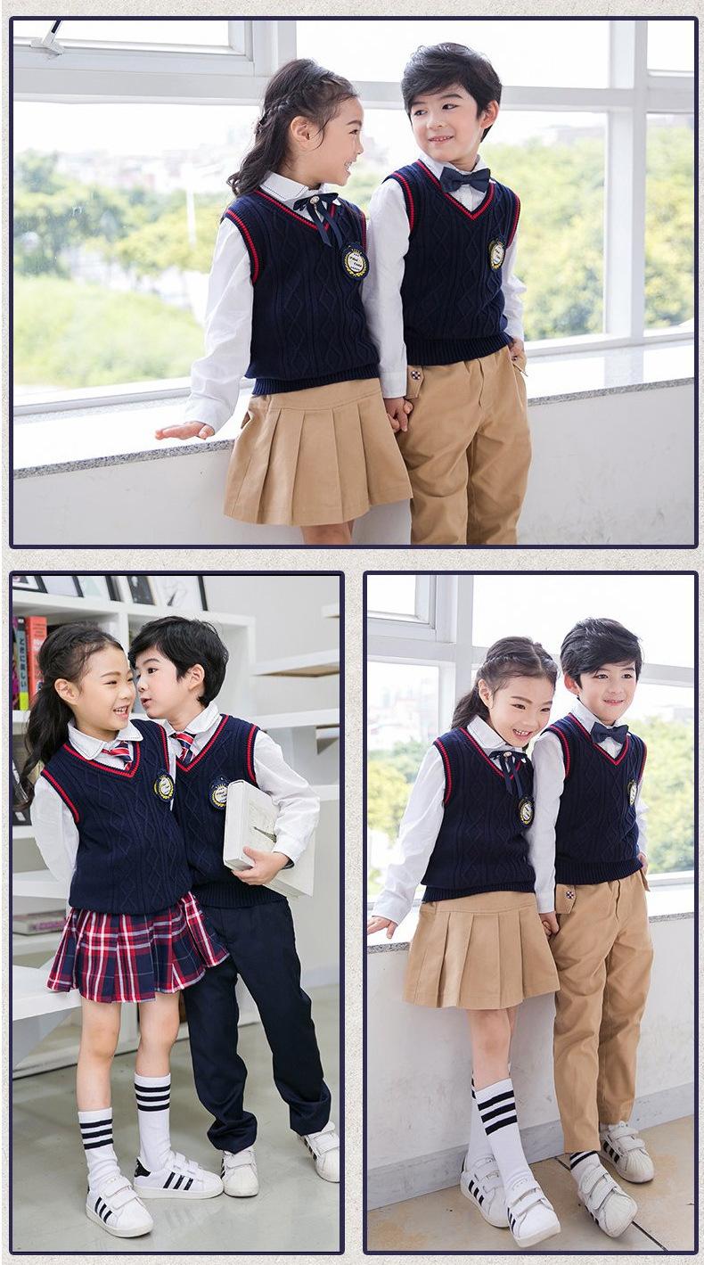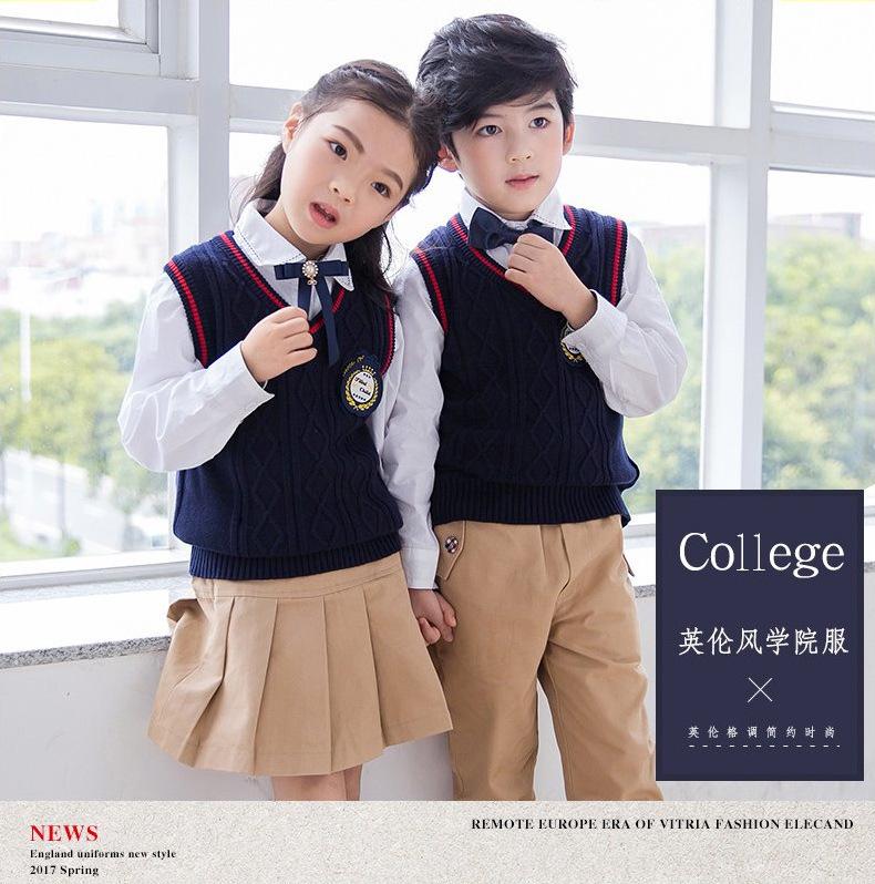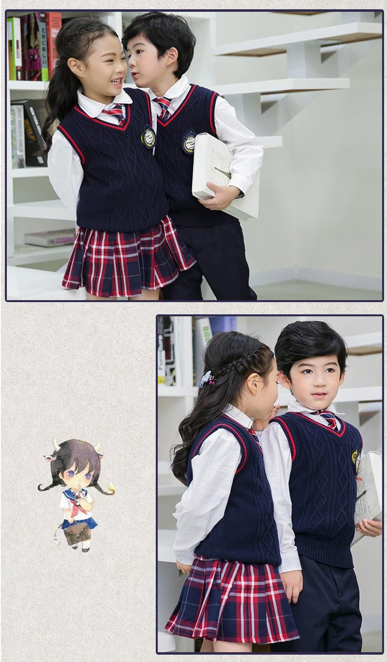 Nuevo uniforme escolar estilo británico otoño e invierno primaria y secundaria jardín de infancia ropa de jardín chaleco suéter conjunto de tres piezas para niños y niñas