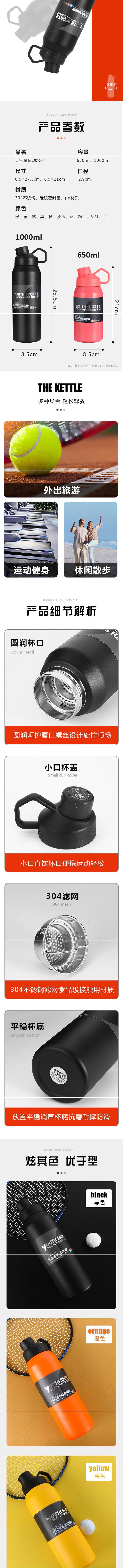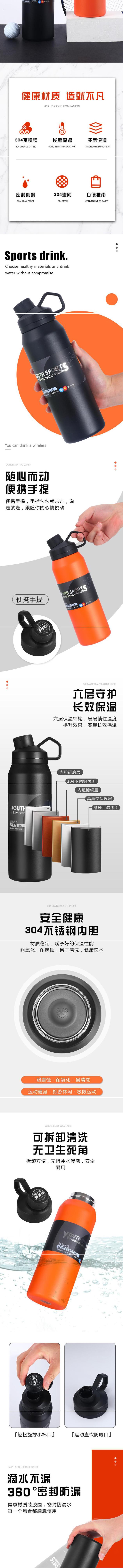 Botella de Agua Deportiva de Gran Capacidad Acero Inoxidable 304 Asa Portátil Vaso Termo para Viaje Botella Espacial Simple Transfronteriza