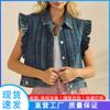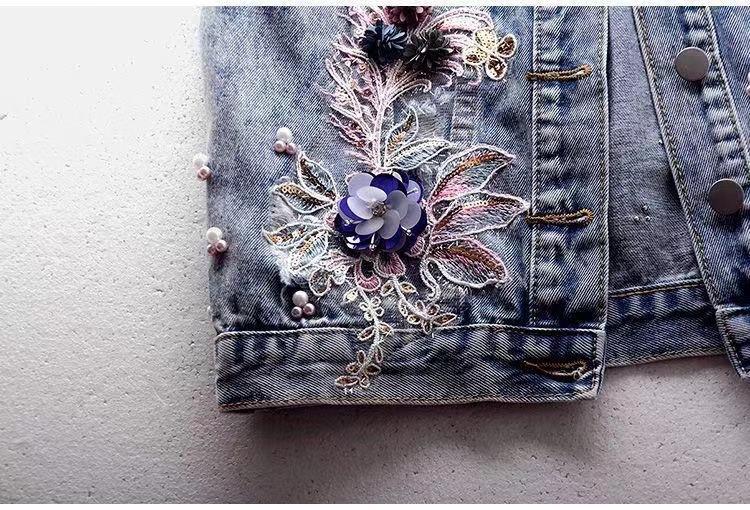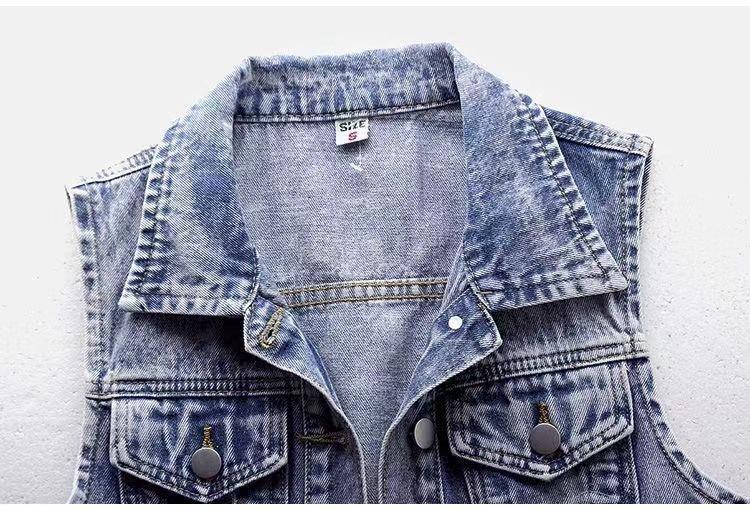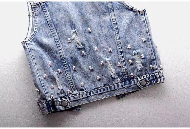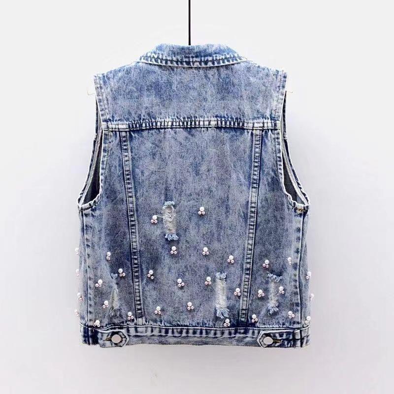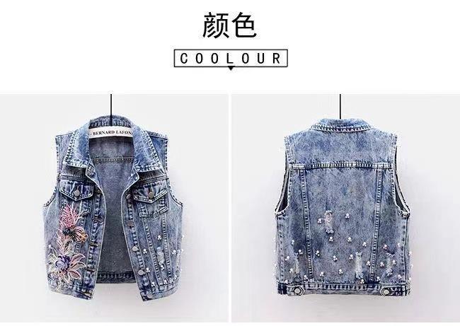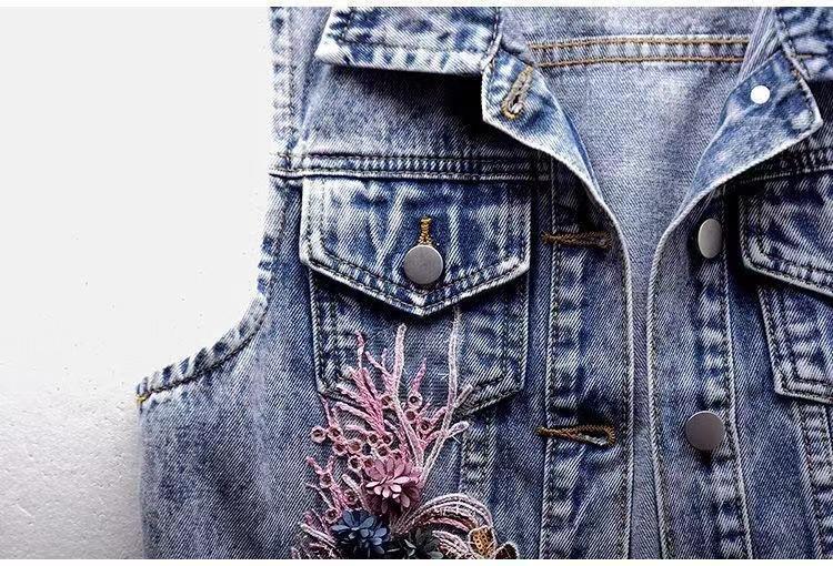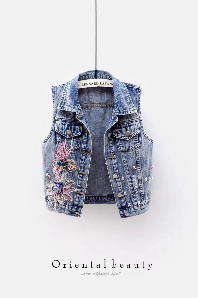 Chaleco de mezclilla corto para mujer 2025 Nuevo estilo Parche de flor de coche Abalorios pesados Chaleco sin mangas Top de estudiante Chaleco para mujer