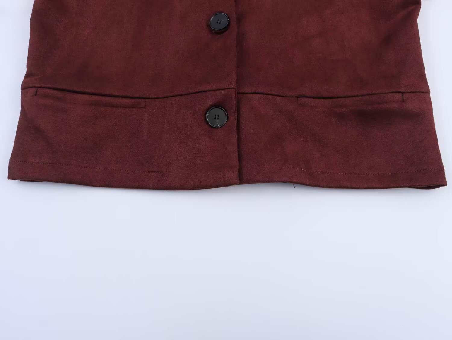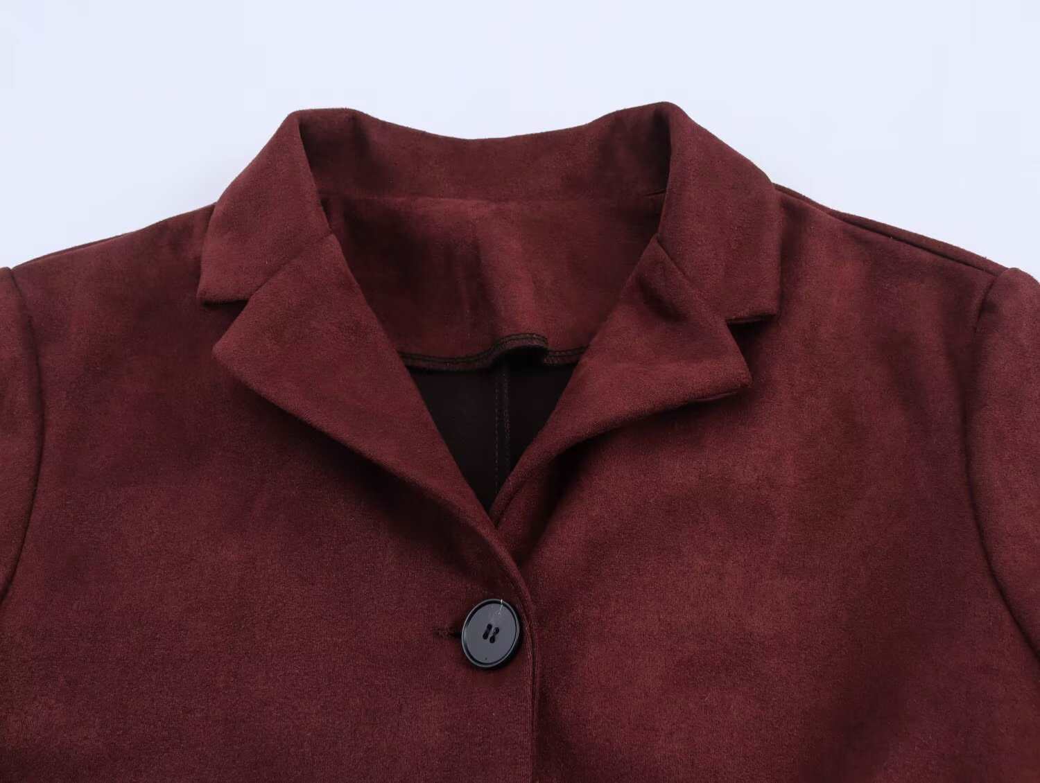 Chaqueta de Gamuza de Otoño para Mujer con Solapa Corta Transfronteriza, Color Sólido Europeo y Americano, Moda Urbana Otro