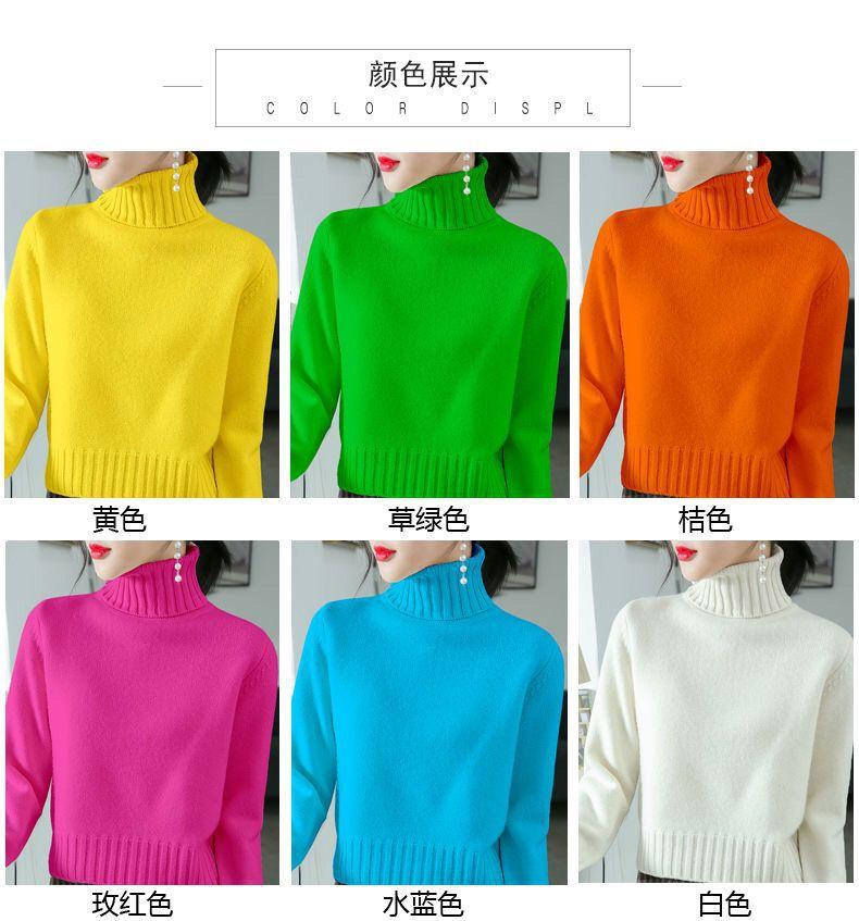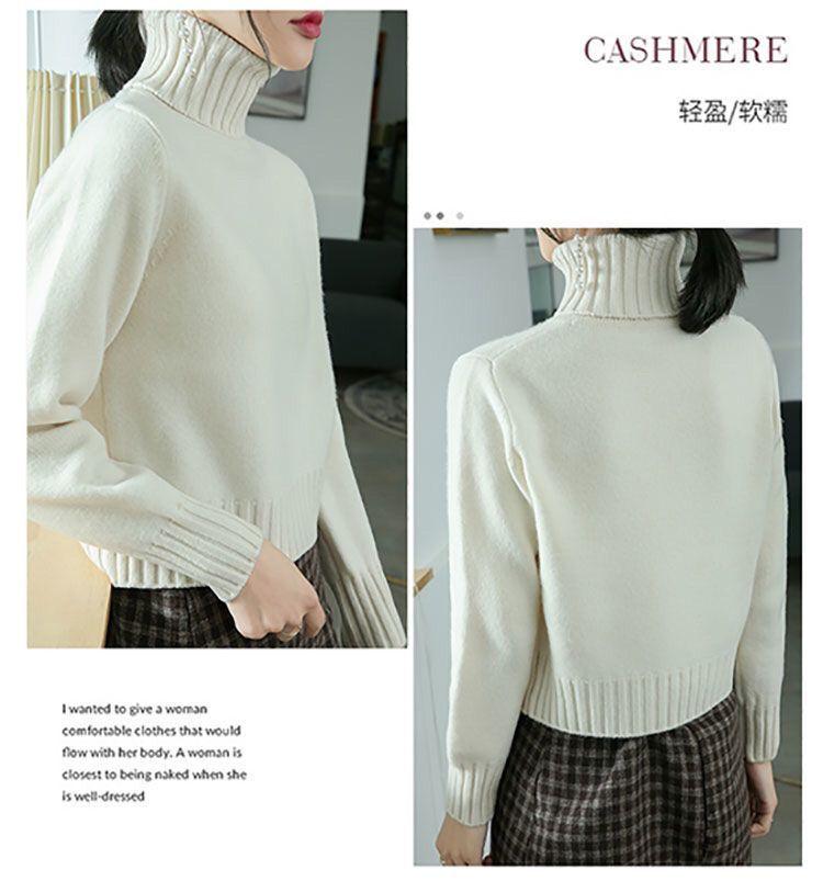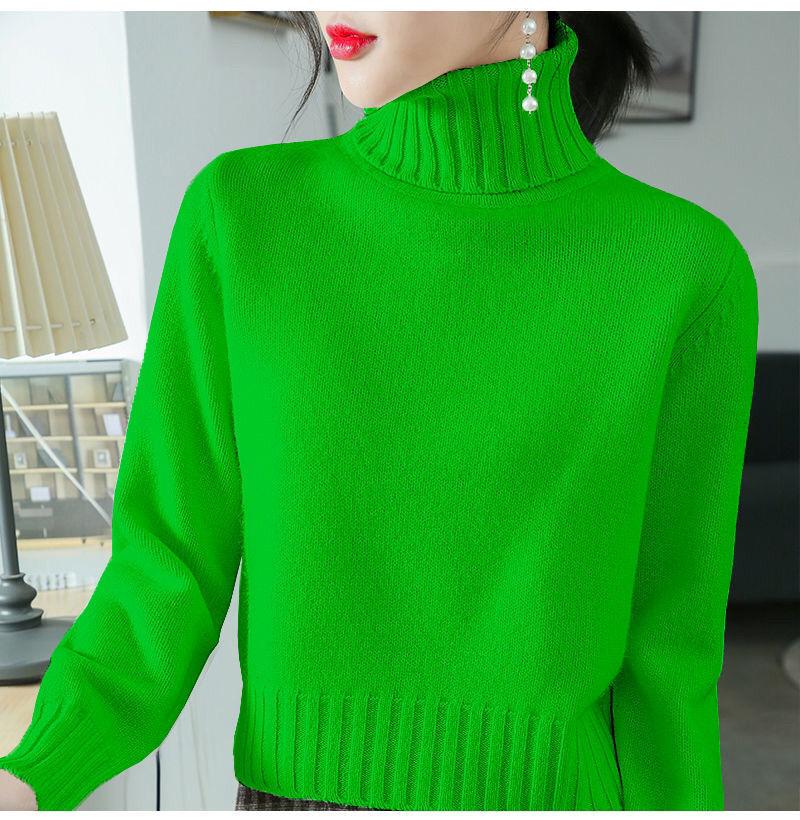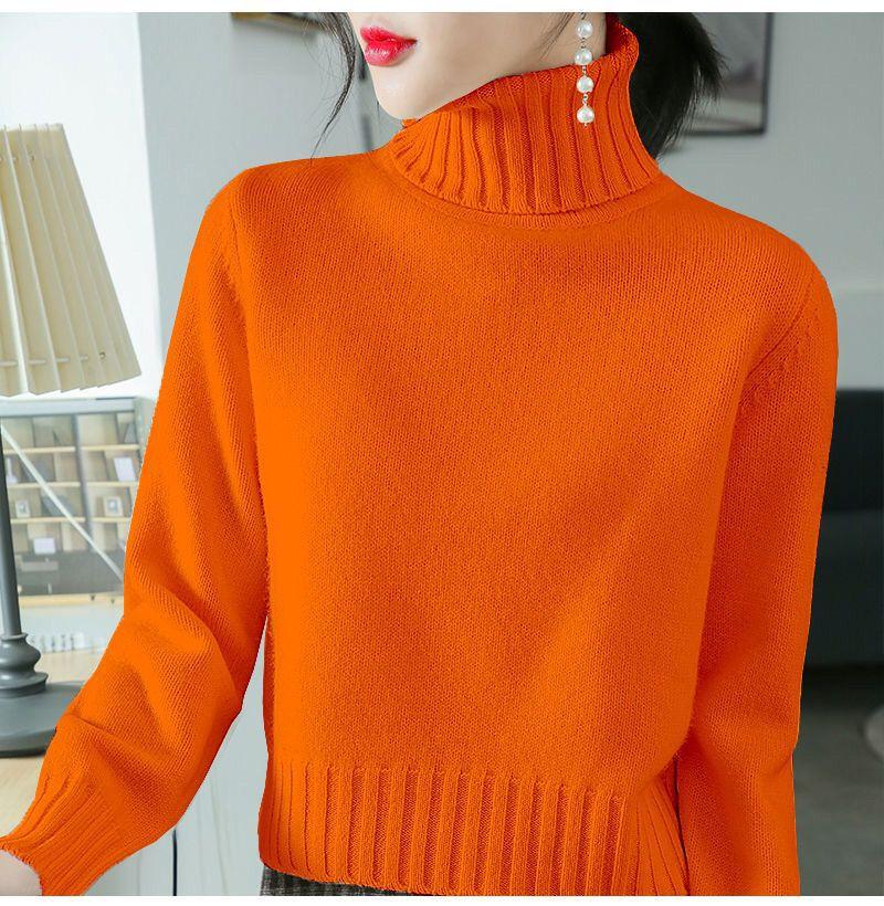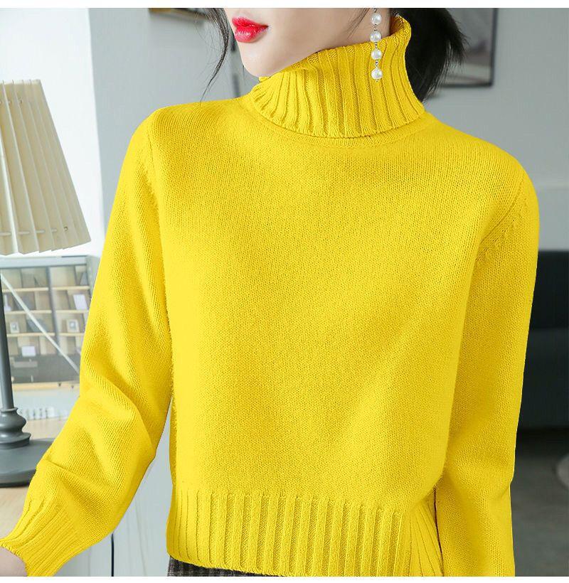 Otoño e Invierno Camiseta Base Corta de Punto de Cintura Alta Suéter de Cuello Alto para Mujer Combinable Estilo Coreano Holgado Jersey de Color Sólido Top para Uso Exterior