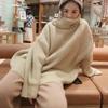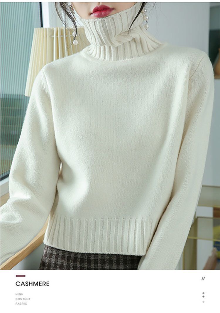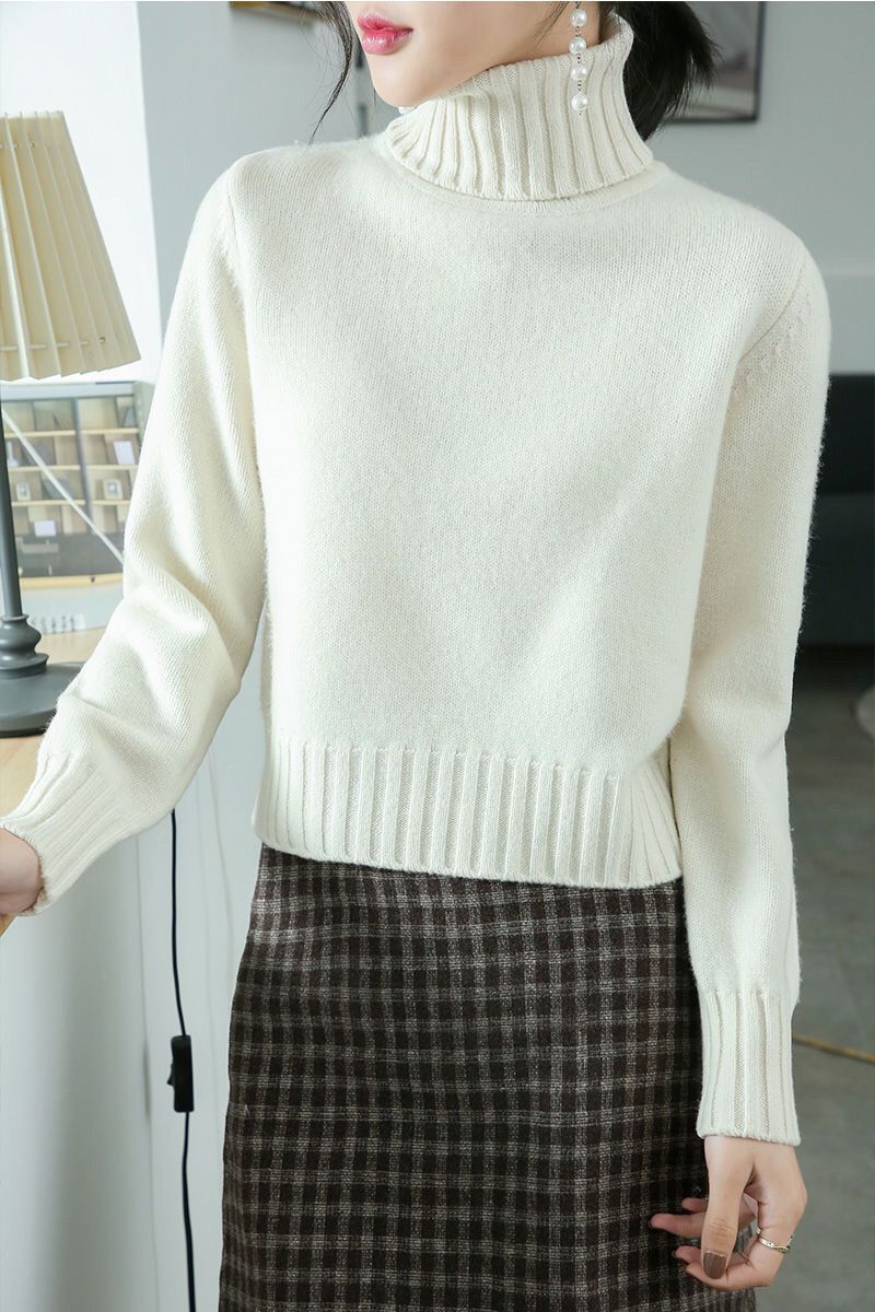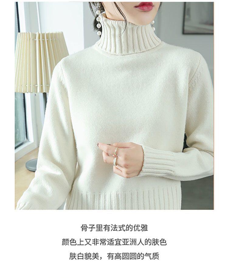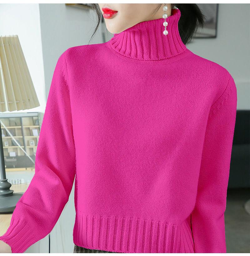 Otoño e Invierno Camiseta Base Corta de Punto de Cintura Alta Suéter de Cuello Alto para Mujer Combinable Estilo Coreano Holgado Jersey de Color Sólido Top para Uso Exterior