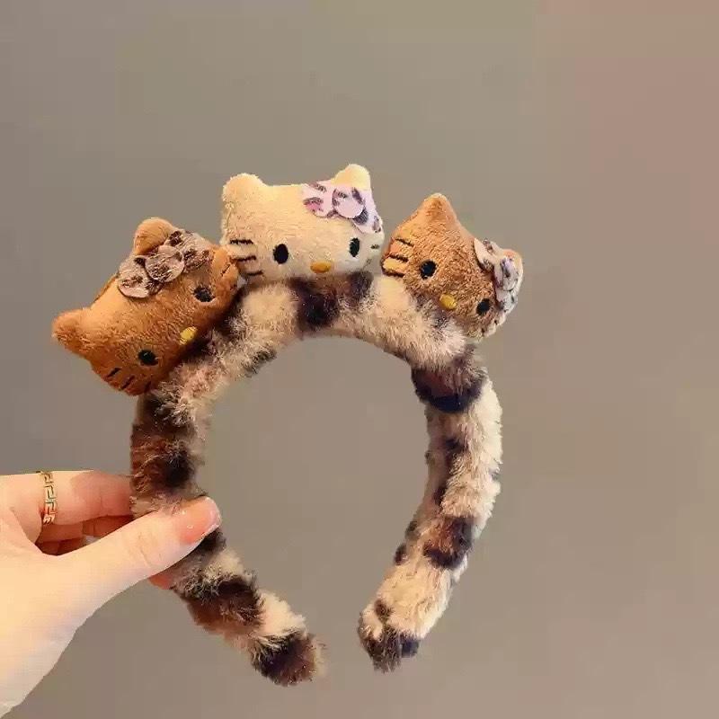 White cat headband, Black cat headband, Off-white cat headband, Three brown cats, Leopard print three cats, Th...