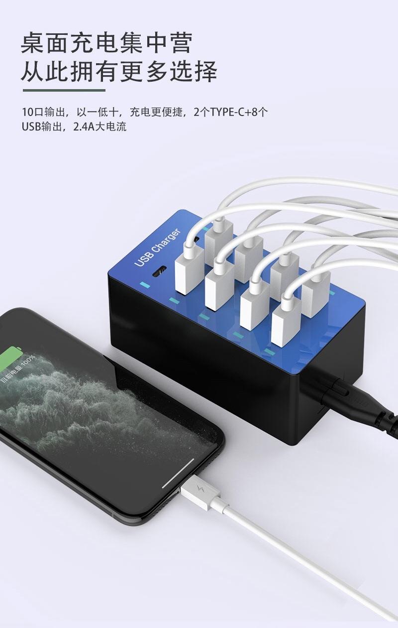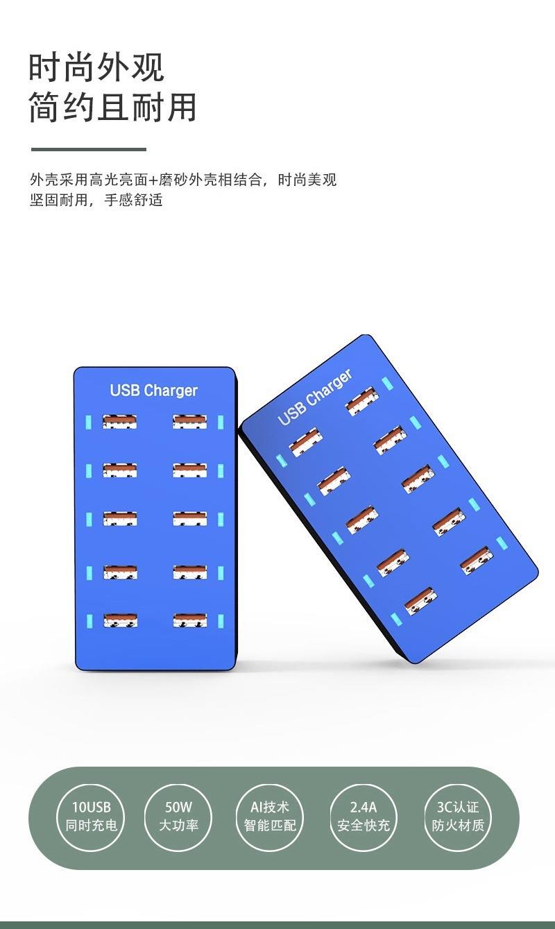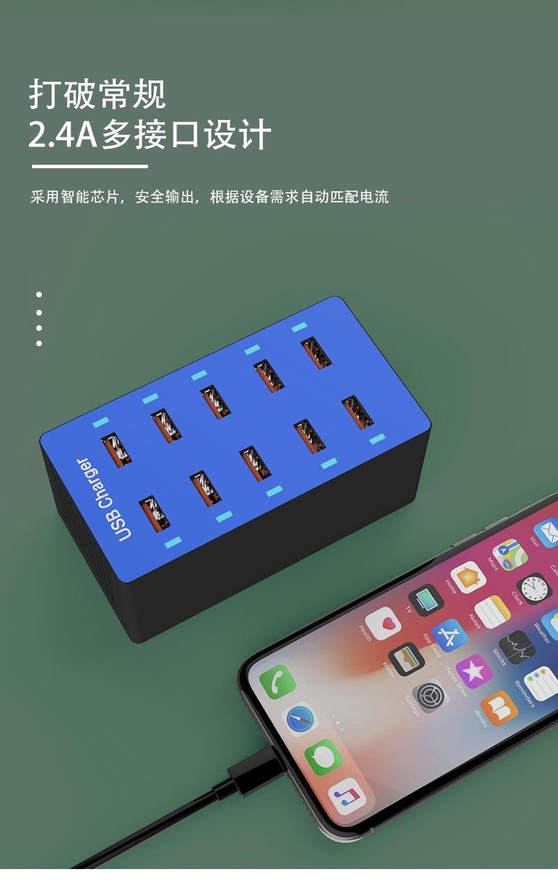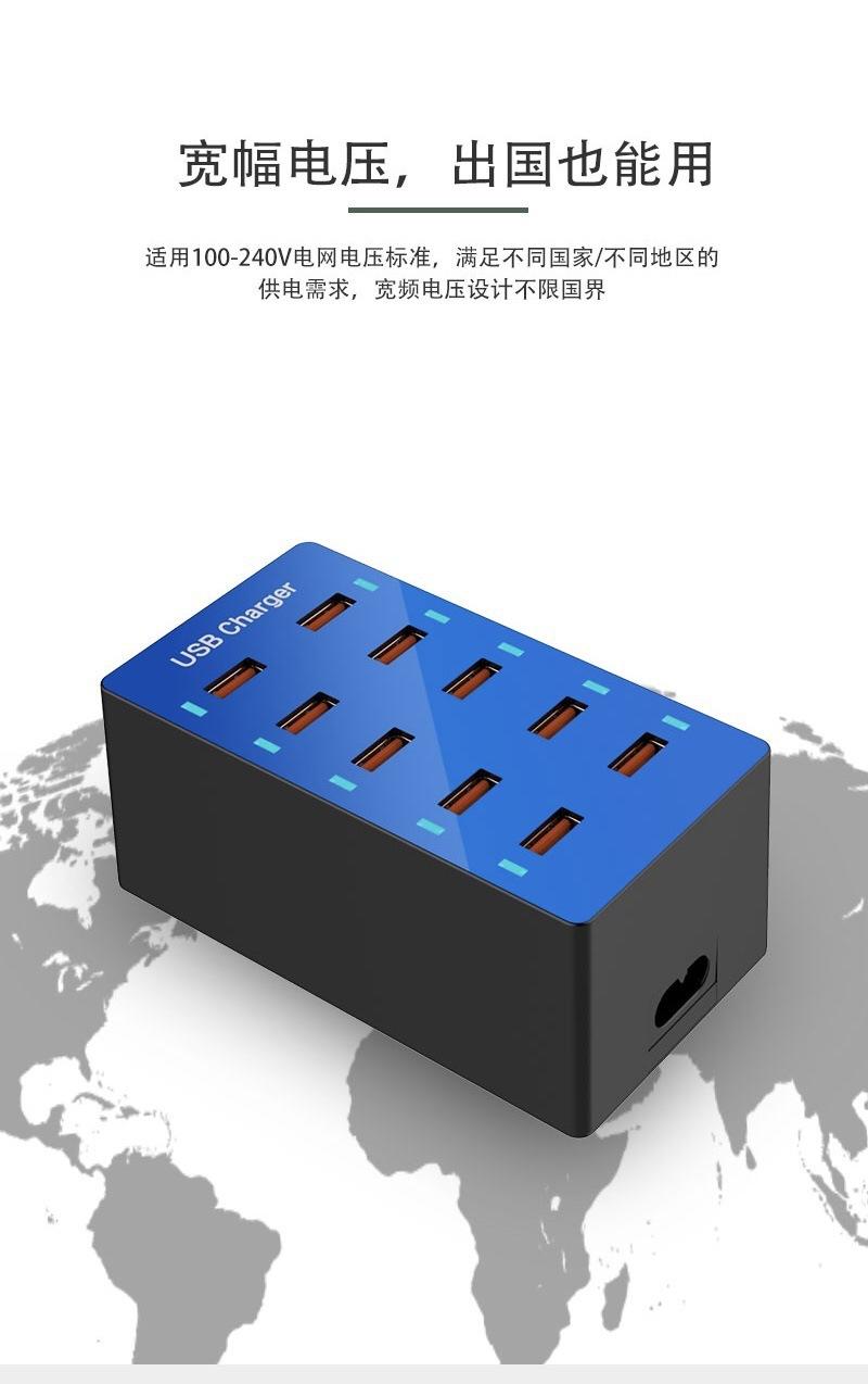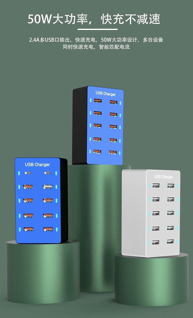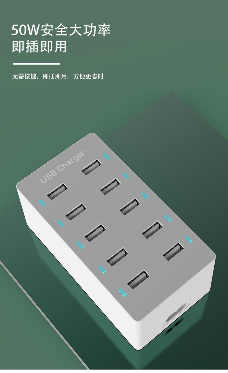 Regleta de alimentación con carga USB multifuncional Teléfono móvil Tableta 5V2.4A Zócalo de carga rápida multipuerto 10usb Cargador de viaje