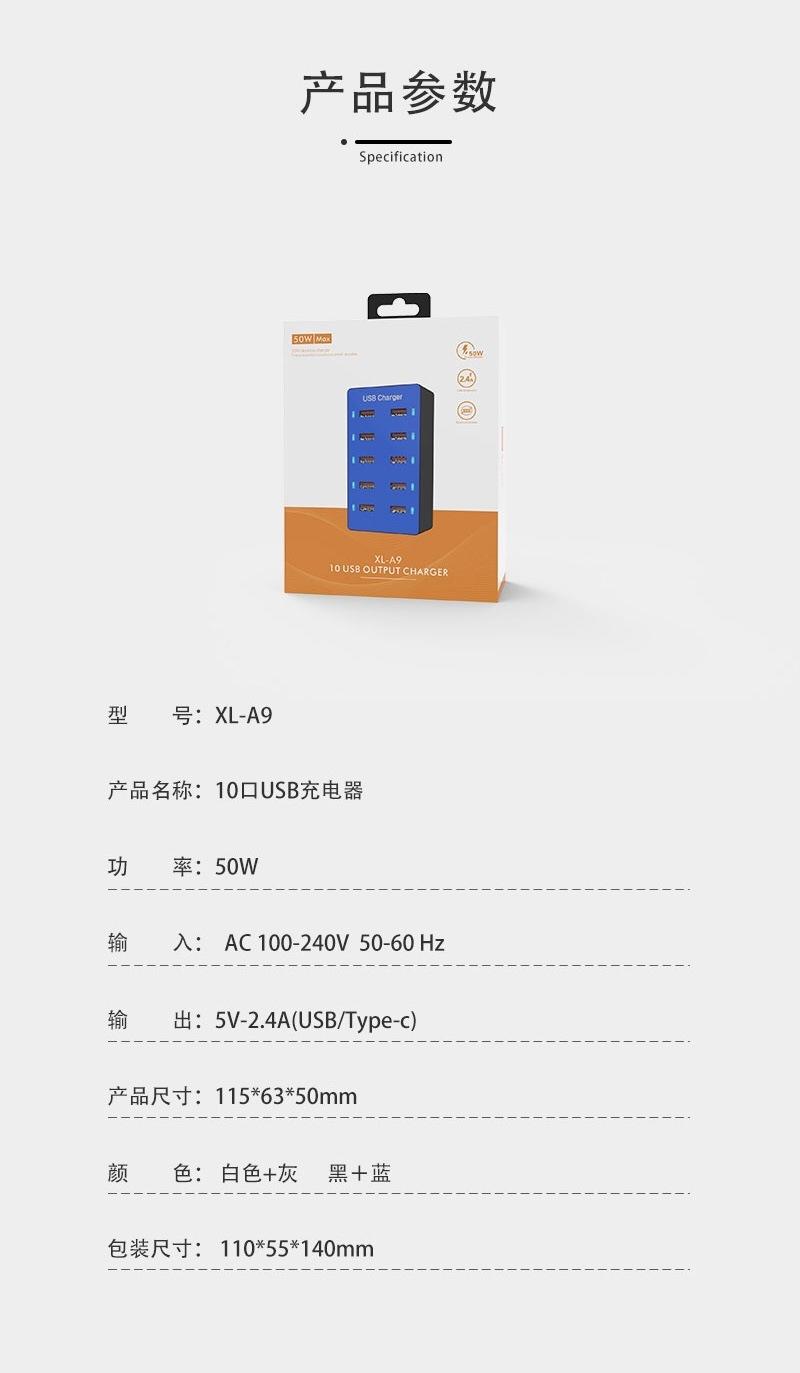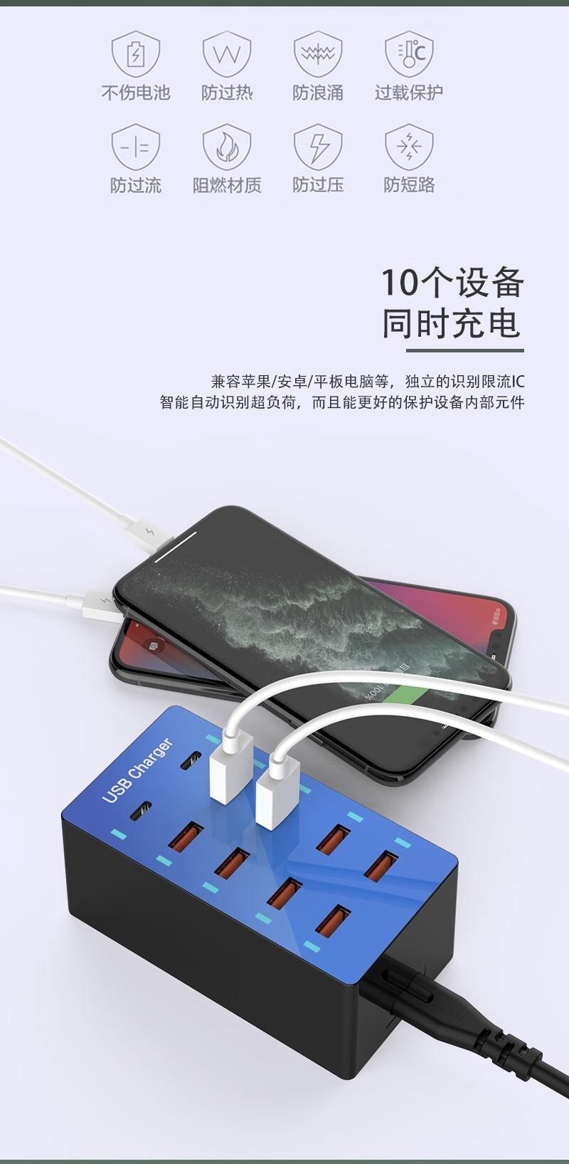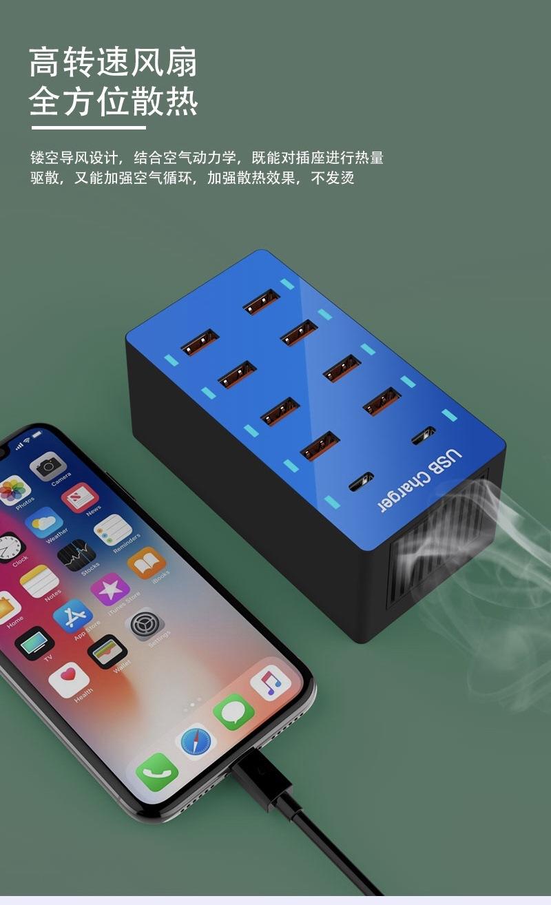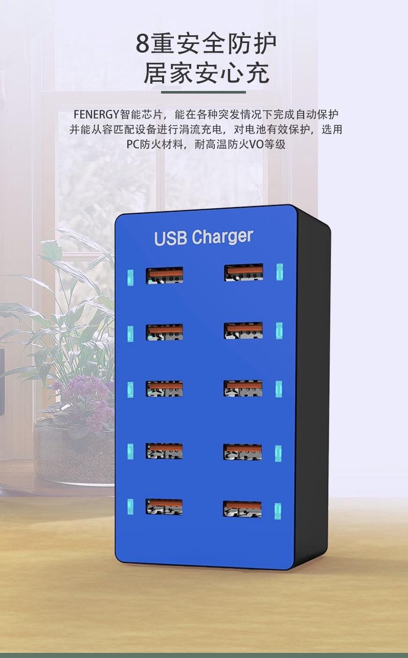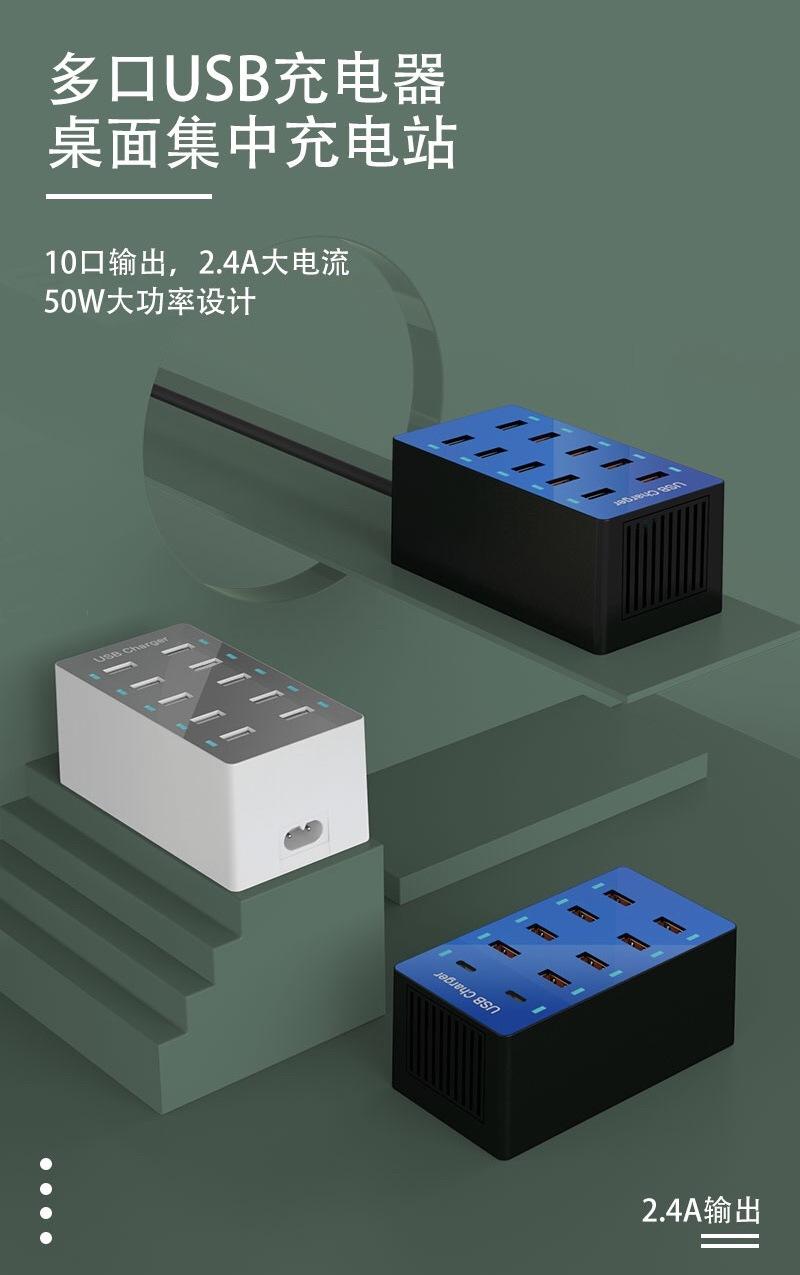 Regleta de alimentación con carga USB multifuncional Teléfono móvil Tableta 5V2.4A Zócalo de carga rápida multipuerto 10usb Cargador de viaje