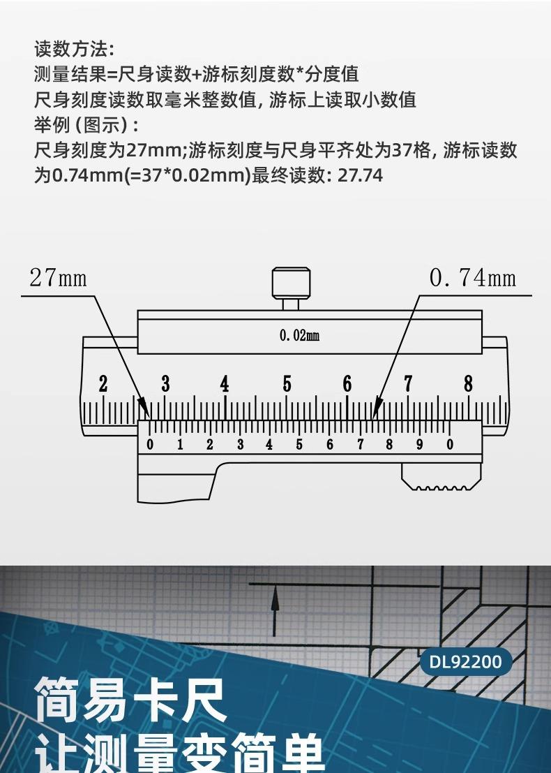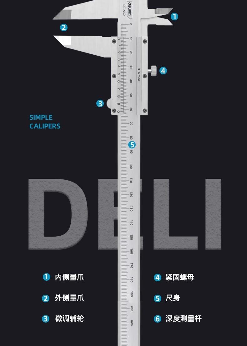 Calibrador Vernier Mecánico Deli Dl92300 Calibrador de Diámetro Interior Diámetro Exterior 300mm