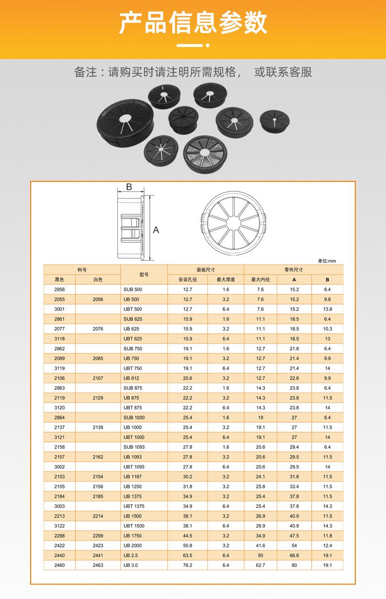 Nombre:Pasacables de inserción a presión, protector de cable en forma de pétalo, pasacables, pasacables de paso