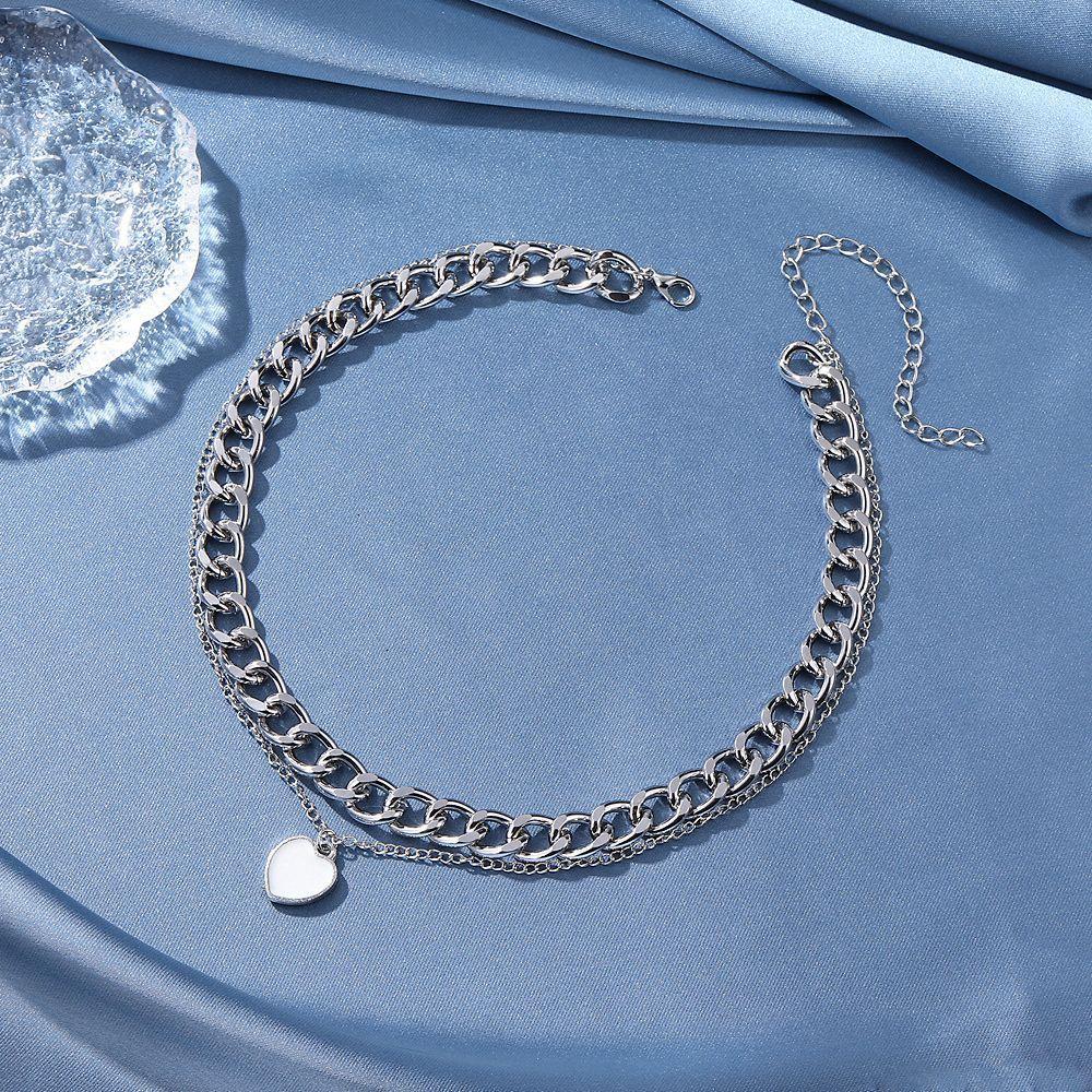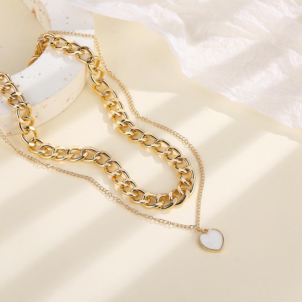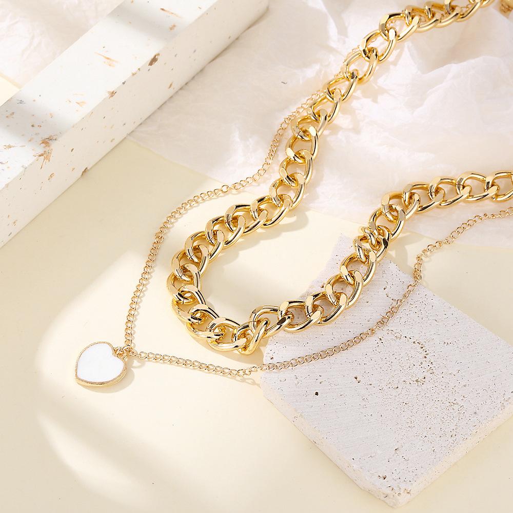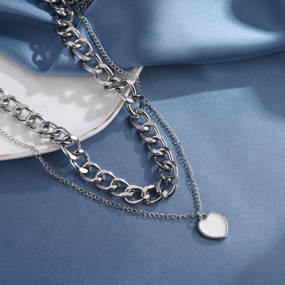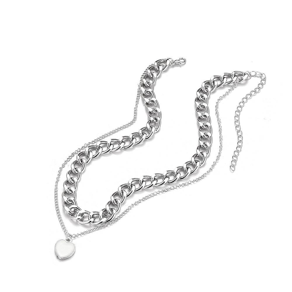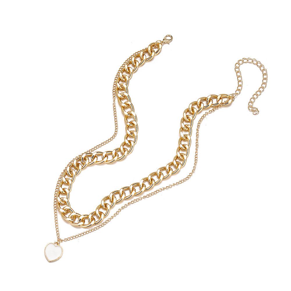 Amazon Transfronterizo Nueva Personalidad Europea y Americana Exagerada Cadena Gruesa Grande Colgante de Amor Collar de Doble Capa C015