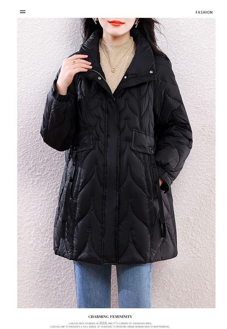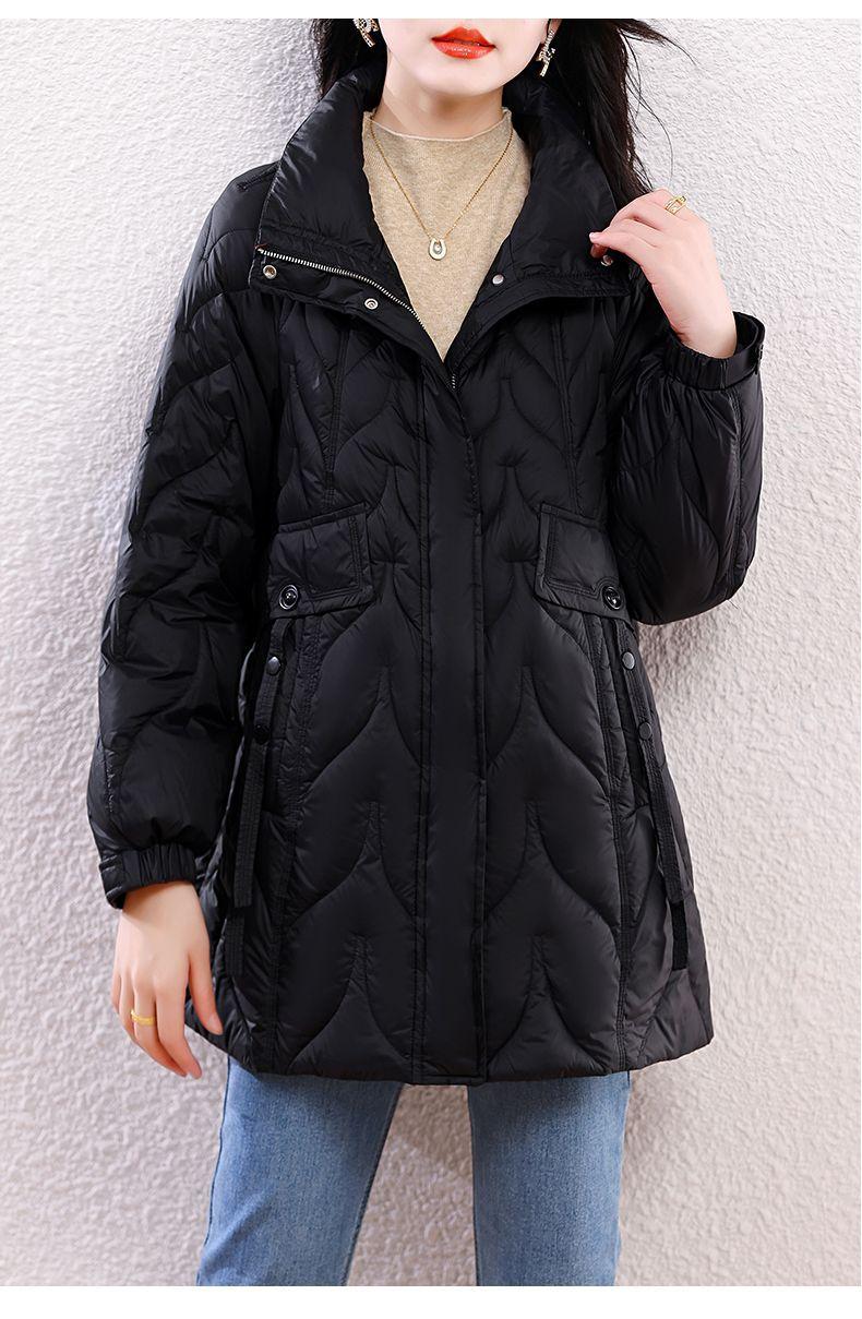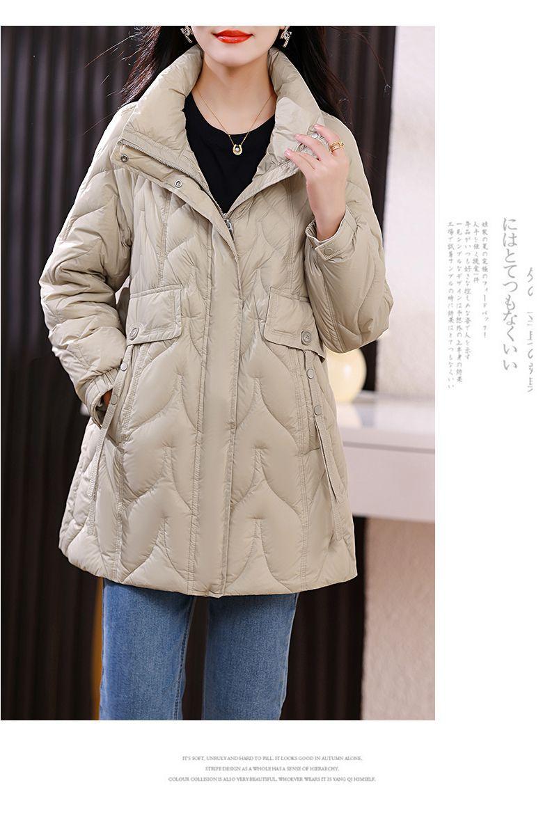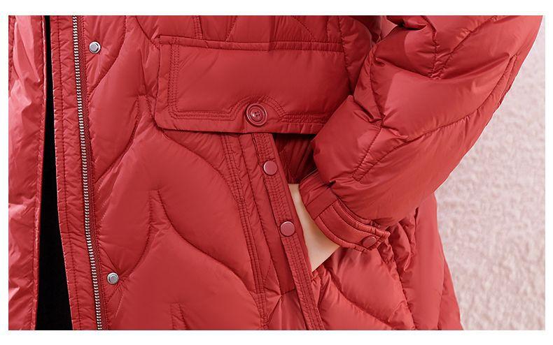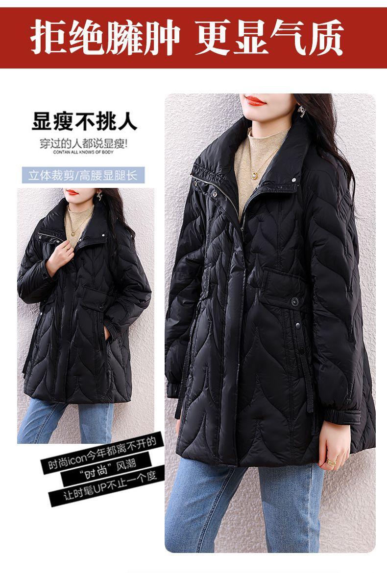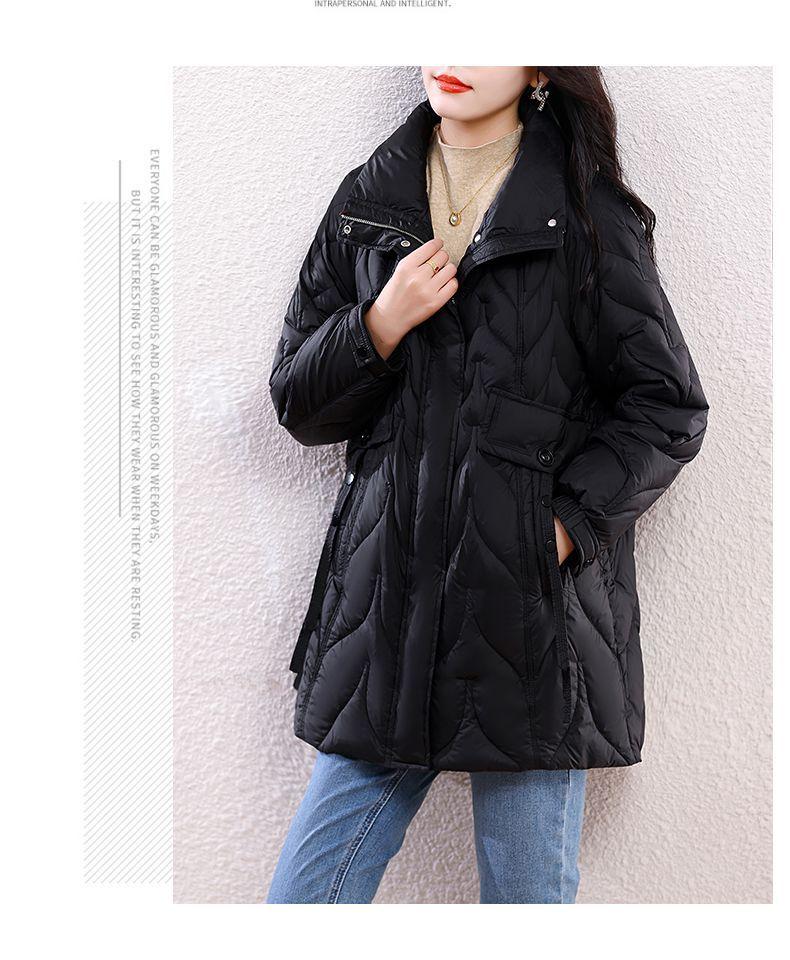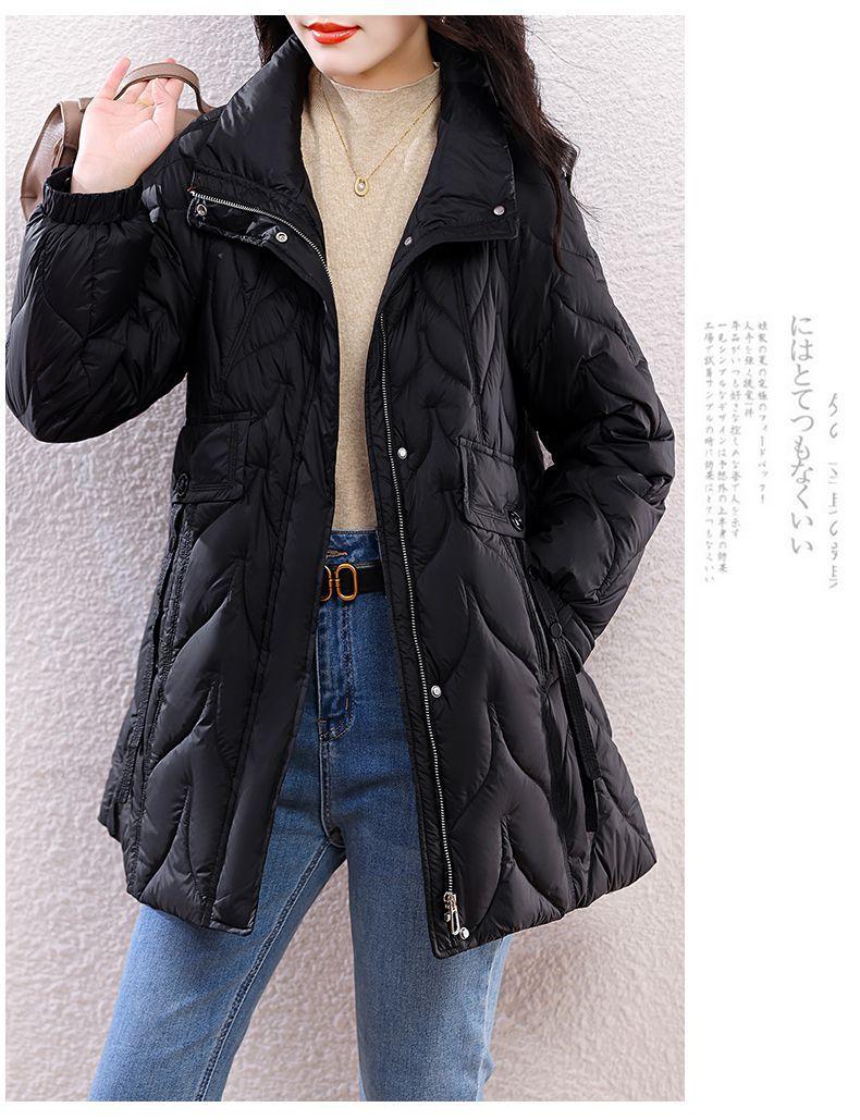 Chamarra de Plumas para Mujer Invierno Largo Medio 2025 Nuevo Estilo Pequeña Elegante Moda Slim con Capucha Chaqueta de Plumón de Pato Blanco Ligera y Delgada