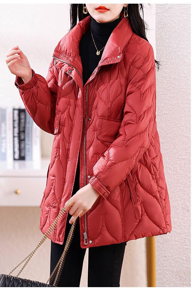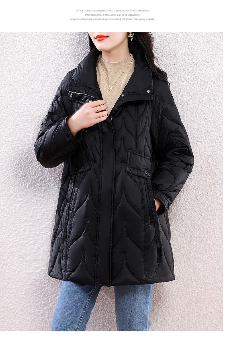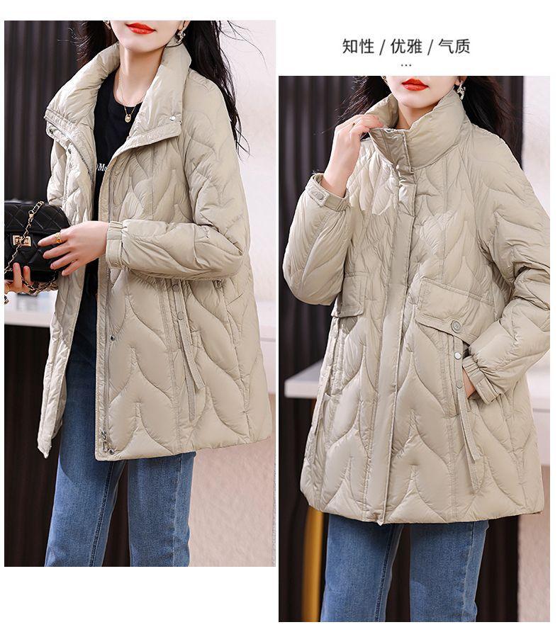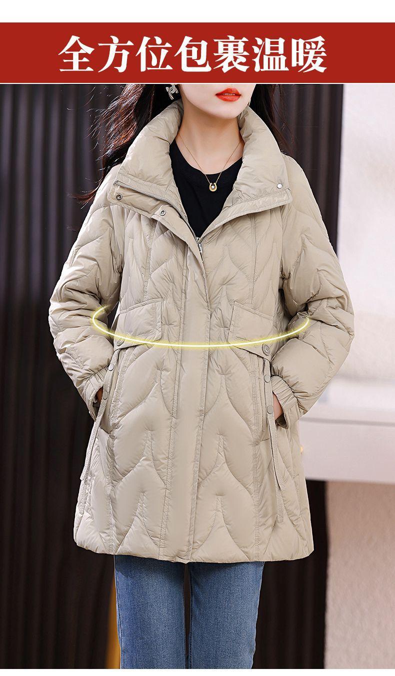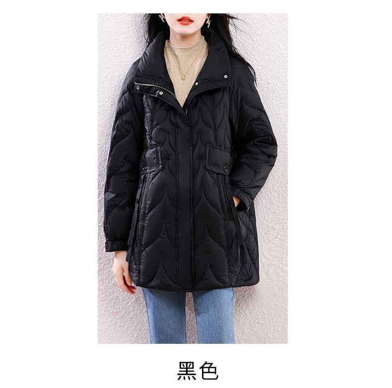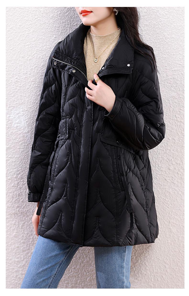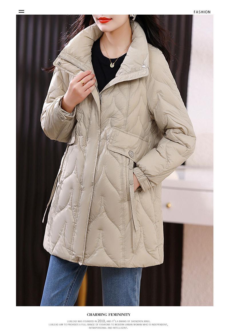 Chamarra de Plumas para Mujer Invierno Largo Medio 2025 Nuevo Estilo Pequeña Elegante Moda Slim con Capucha Chaqueta de Plumón de Pato Blanco Ligera y Delgada